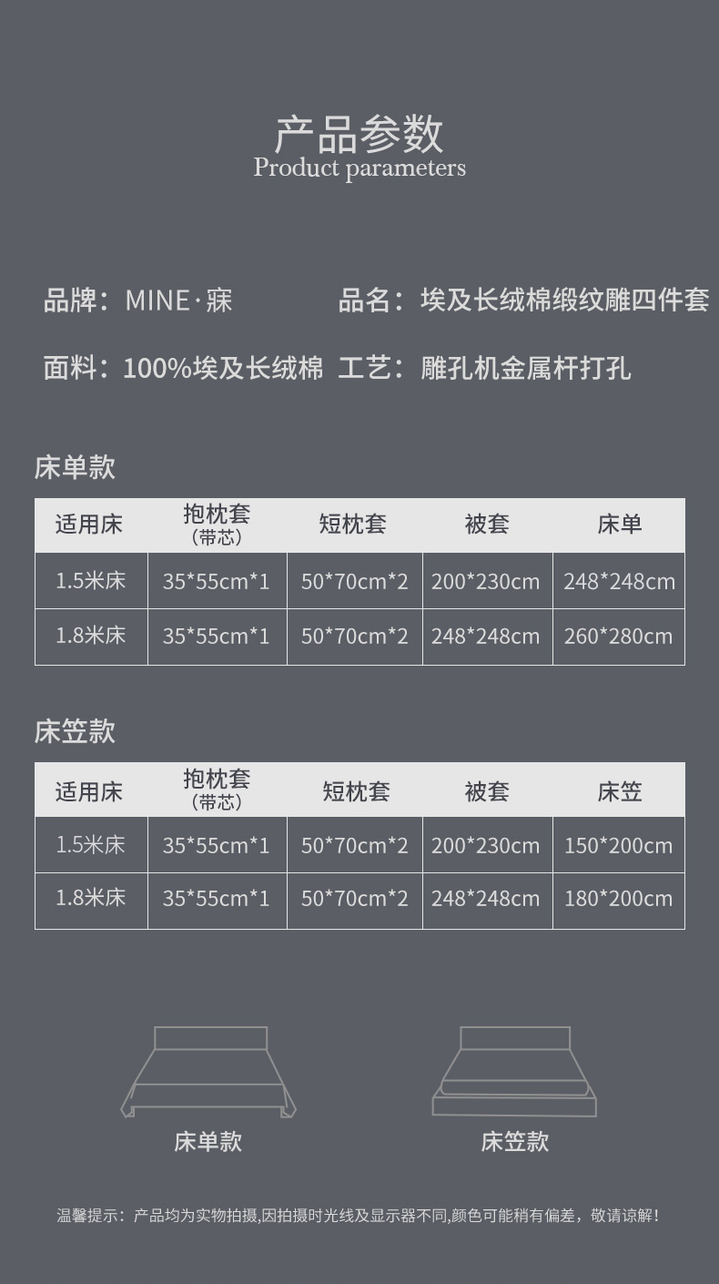 【6F】寐MINE/寐140支千纱织影女王宫殿系列埃及进口长绒棉缎纹雕四件套纯