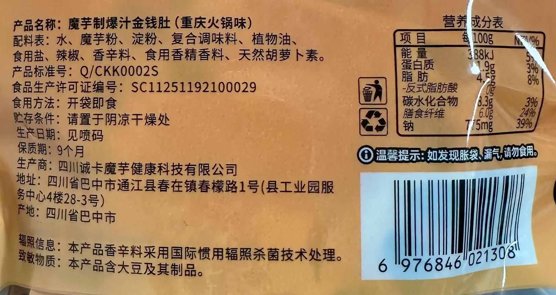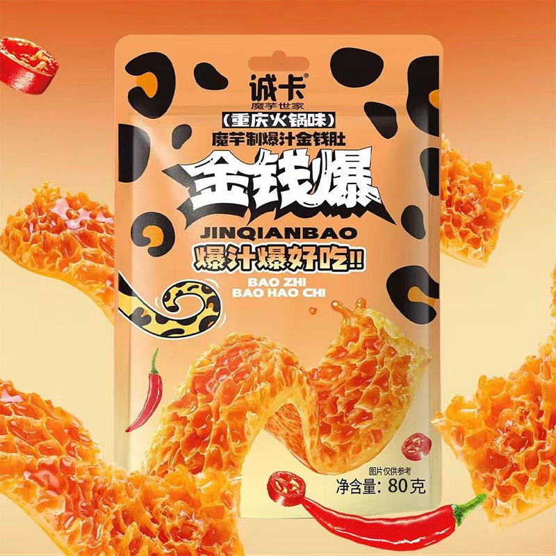 诚卡金钱爆肚魔芋爽爆汁素毛肚 重庆火锅80g 独立包装解馋小吃网红休闲零食