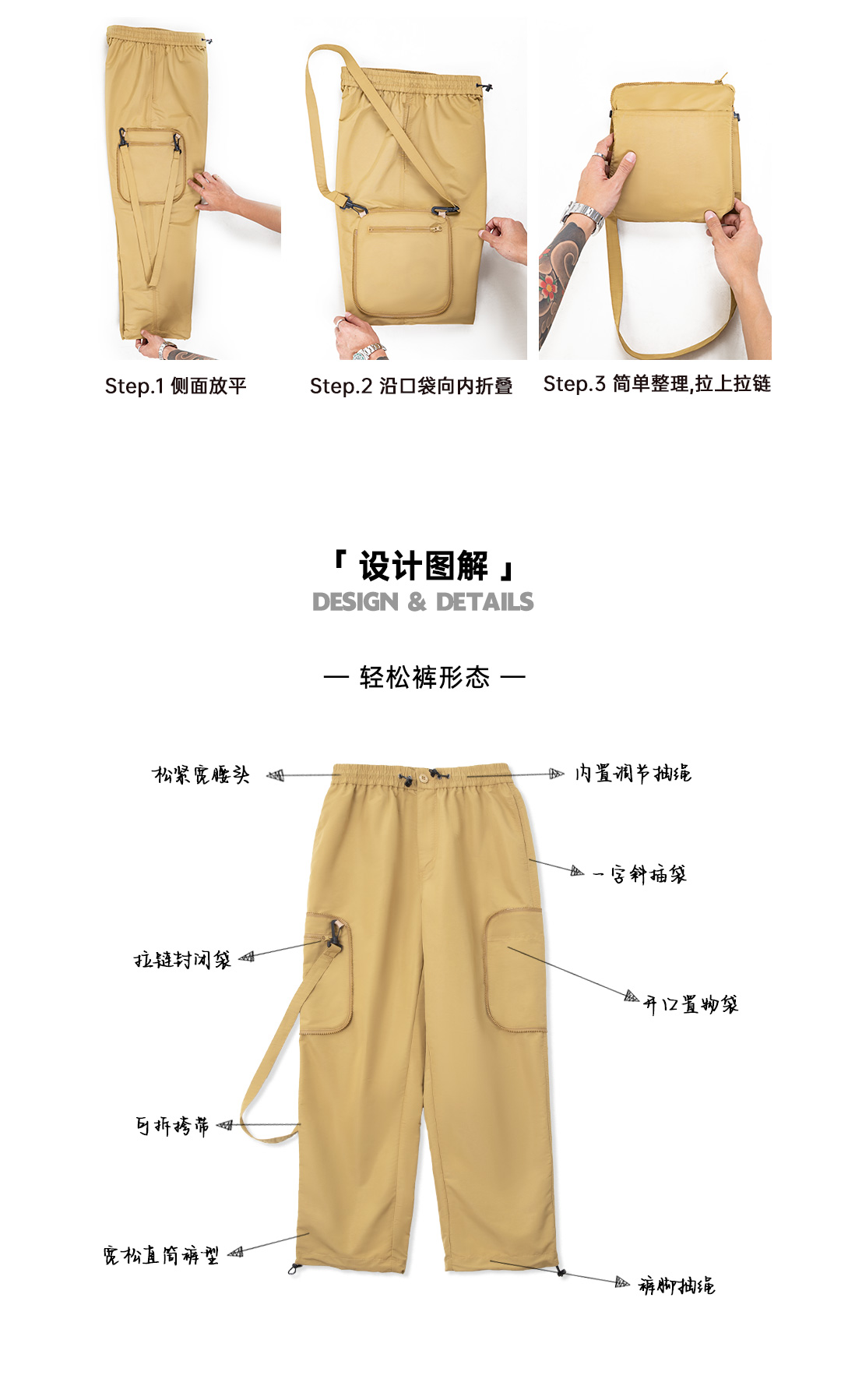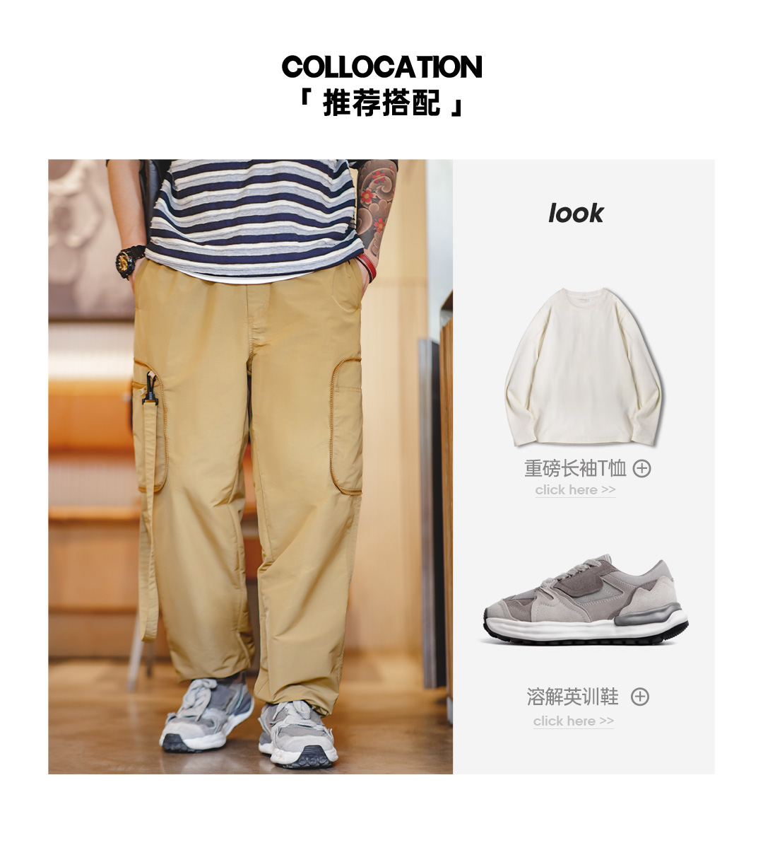 工装优选 美式休闲多功能直筒裤口袋宽松抽绳束脚机能阔腿长裤男秋