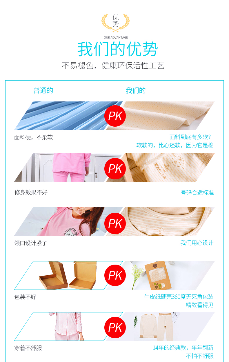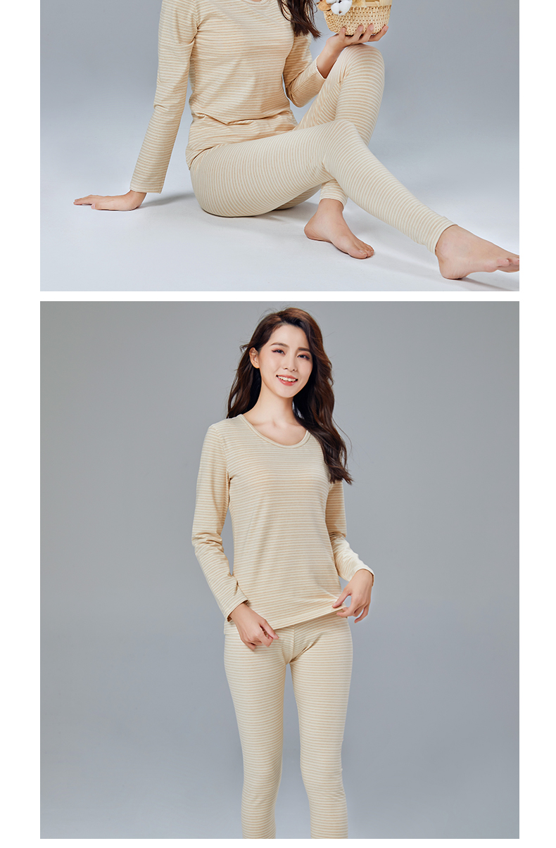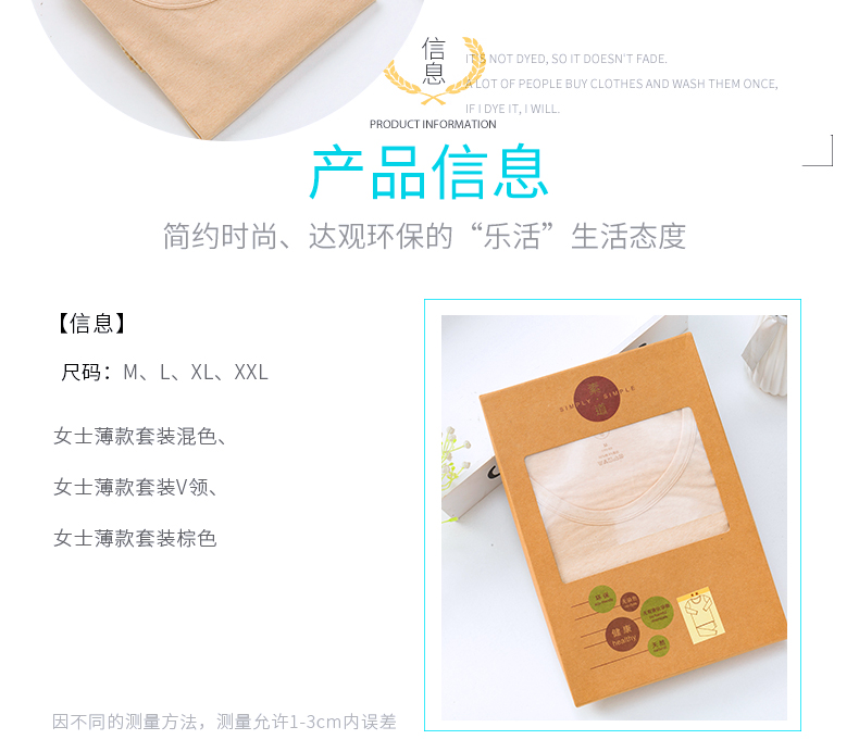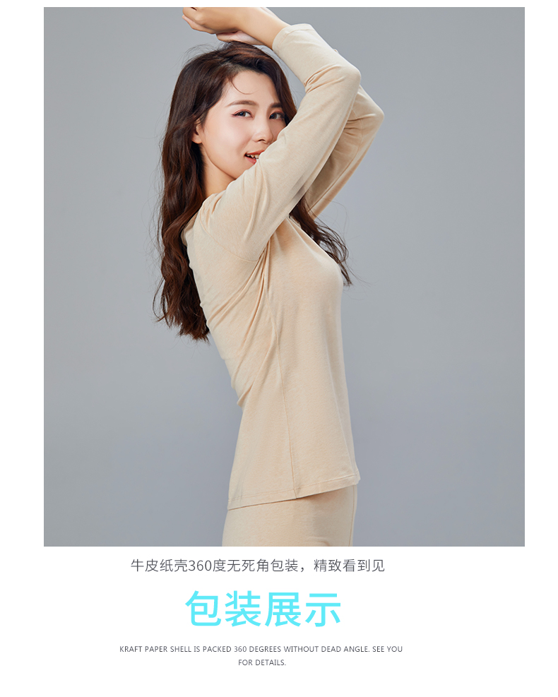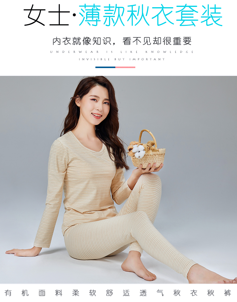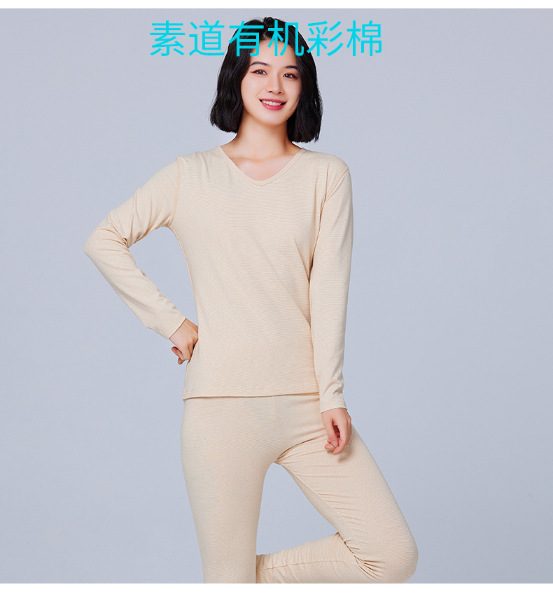 素道有机彩棉 混色女士薄款秋衣套装 长袖秋衣秋裤 贴身圆领打底内衣