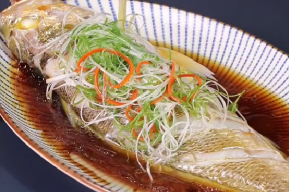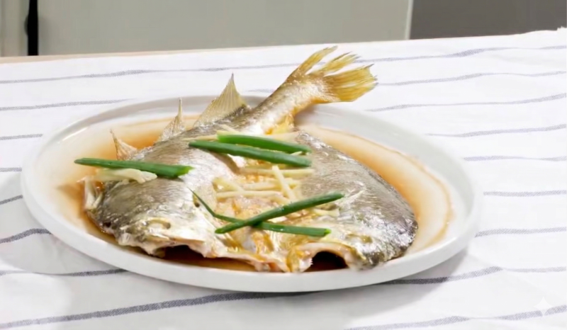 这款黄鱼的鱼身色泽金黄、鱼形完整,蒸出来肉如蒜瓣,鲜嫩得用筷子一挑就开。入口细腻,肉质很嫩,只有大黄鱼特有的鲜香。