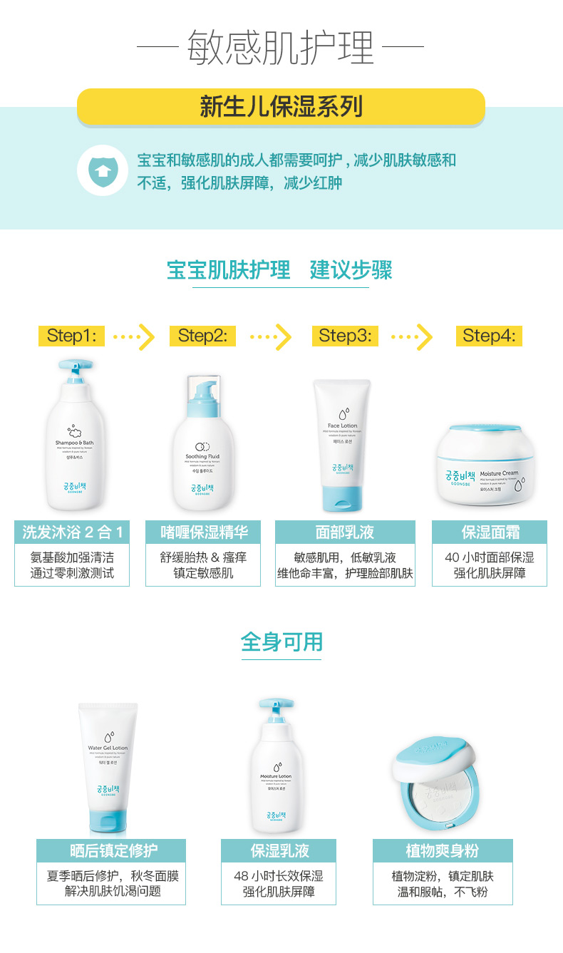 【一般贸易进口中文标】宫中秘策韩国版Goongbe宝宝润肤乳婴幼儿童温和夏季保湿乳液250ml