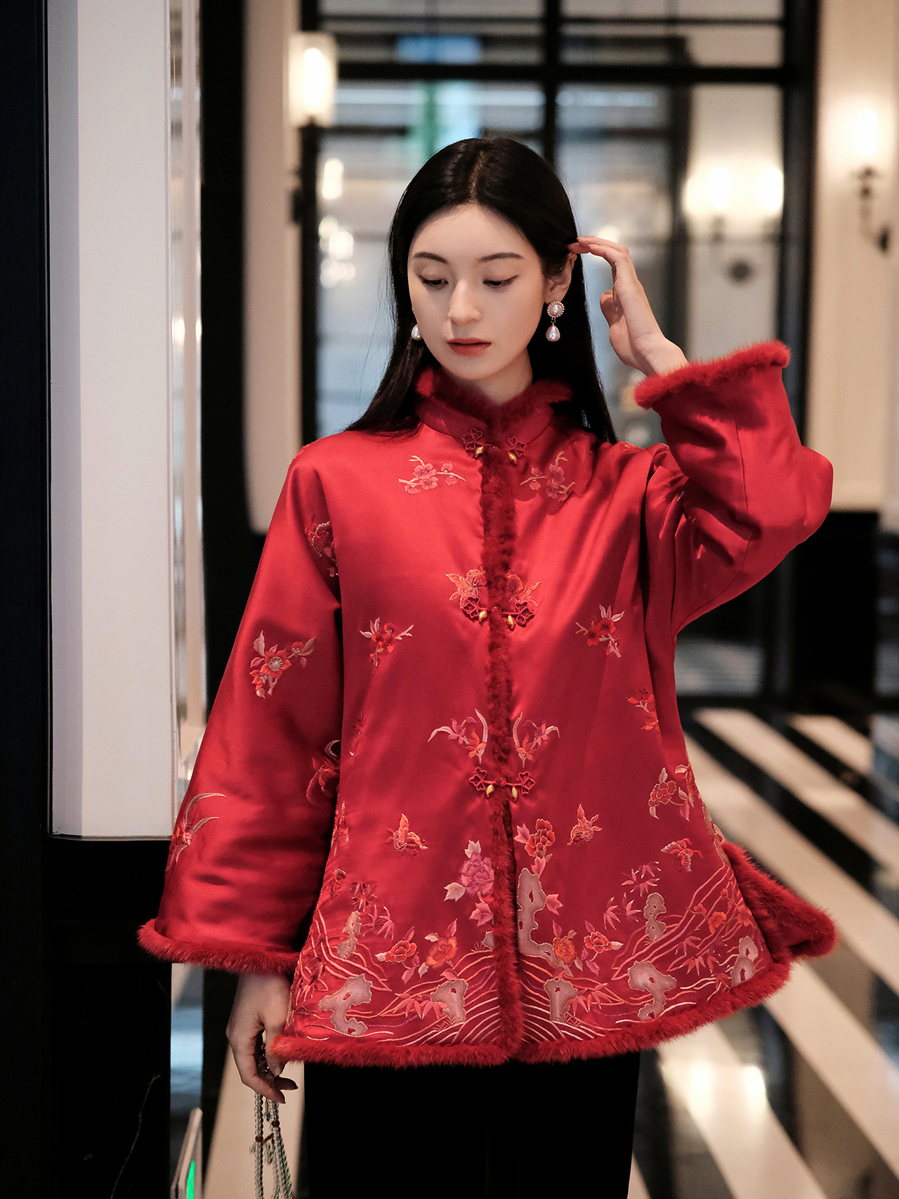 盛唐牡丹盛奢系列 | 赤色一年景手绣水貂棉服