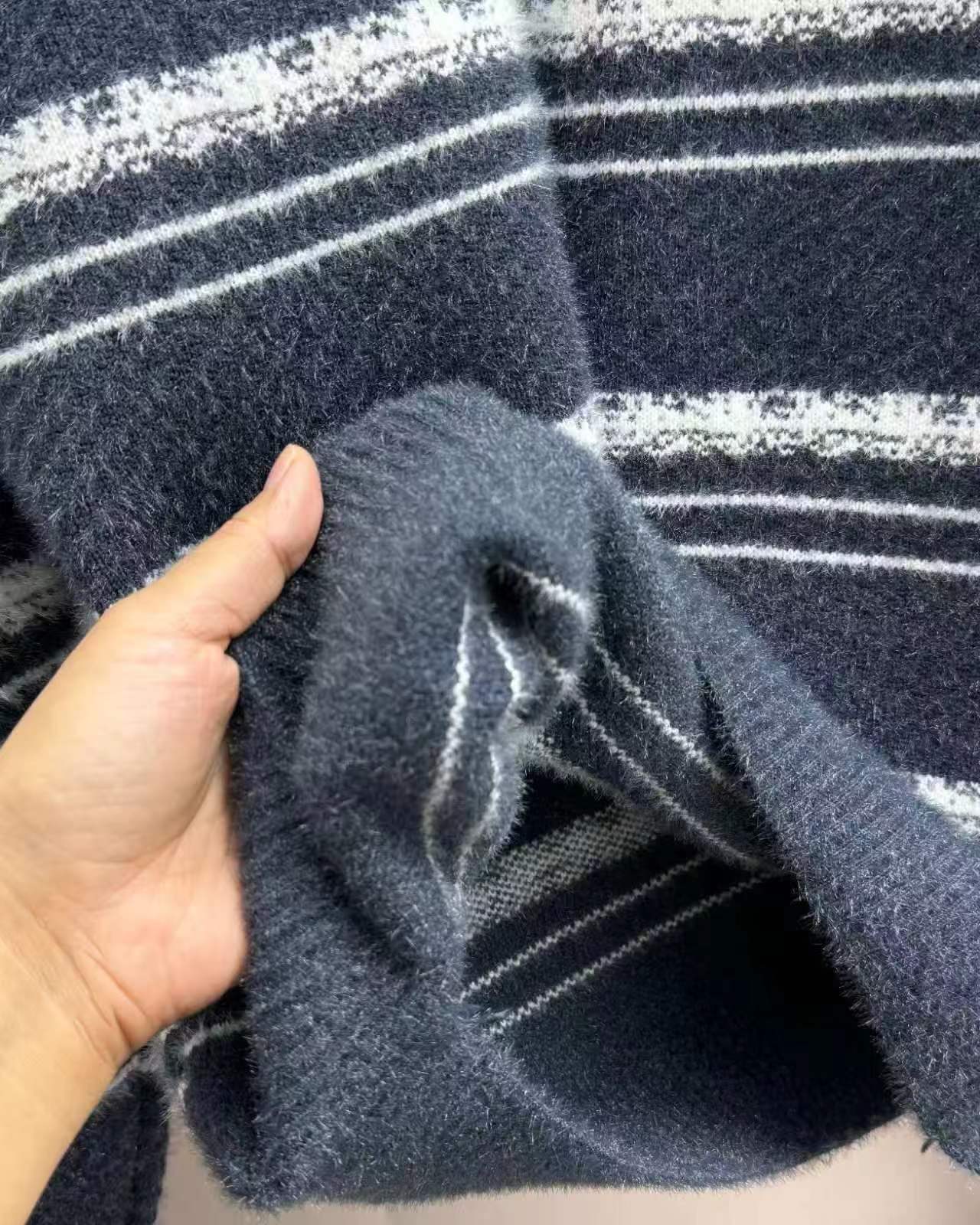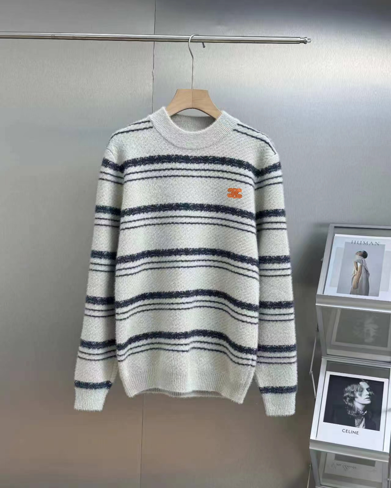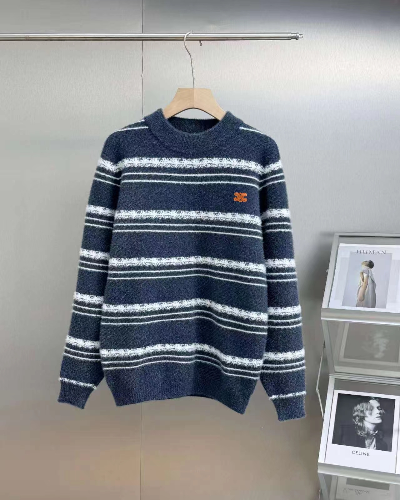 秋冬条纹慵懒风宽松情侣款毛衣,oversize风大版型毛衣,不像紧身衣那样刻意勾勒身形,也不似厚重外套般让人感到压抑,而是以一种恰到好处的姿态,给予身体足够的舒展空间,穿上它,仿佛能听见织物与肌肤的轻柔对话,那是一种难以言喻的舒适与自在。落肩的设计,松弛但不松垮,在修饰肩宽的同时,更巧妙的贴合身形,让穿上它的人,不显臃肿,反而多了一份灵动与从容!秋冬时光里,就要穿得慵懒一点,这不是对生活的妥协,而是对自我的一种善待。时光缓缓流过,让我们以一件宽松的条纹毛衣,拥抱慢生活,享受那份由内而外的舒适与自在。
