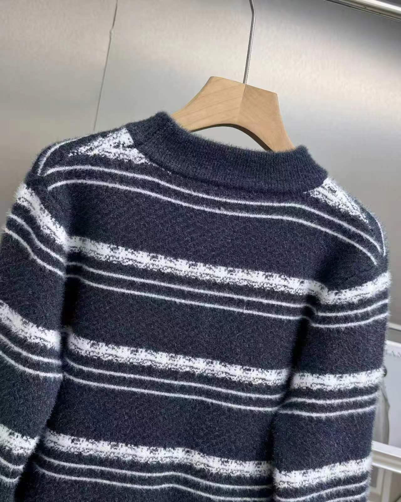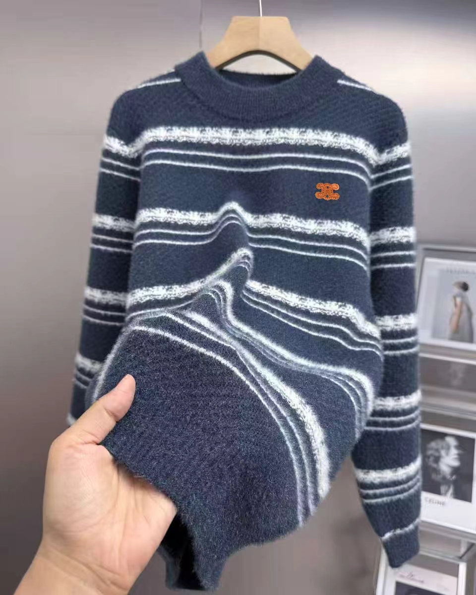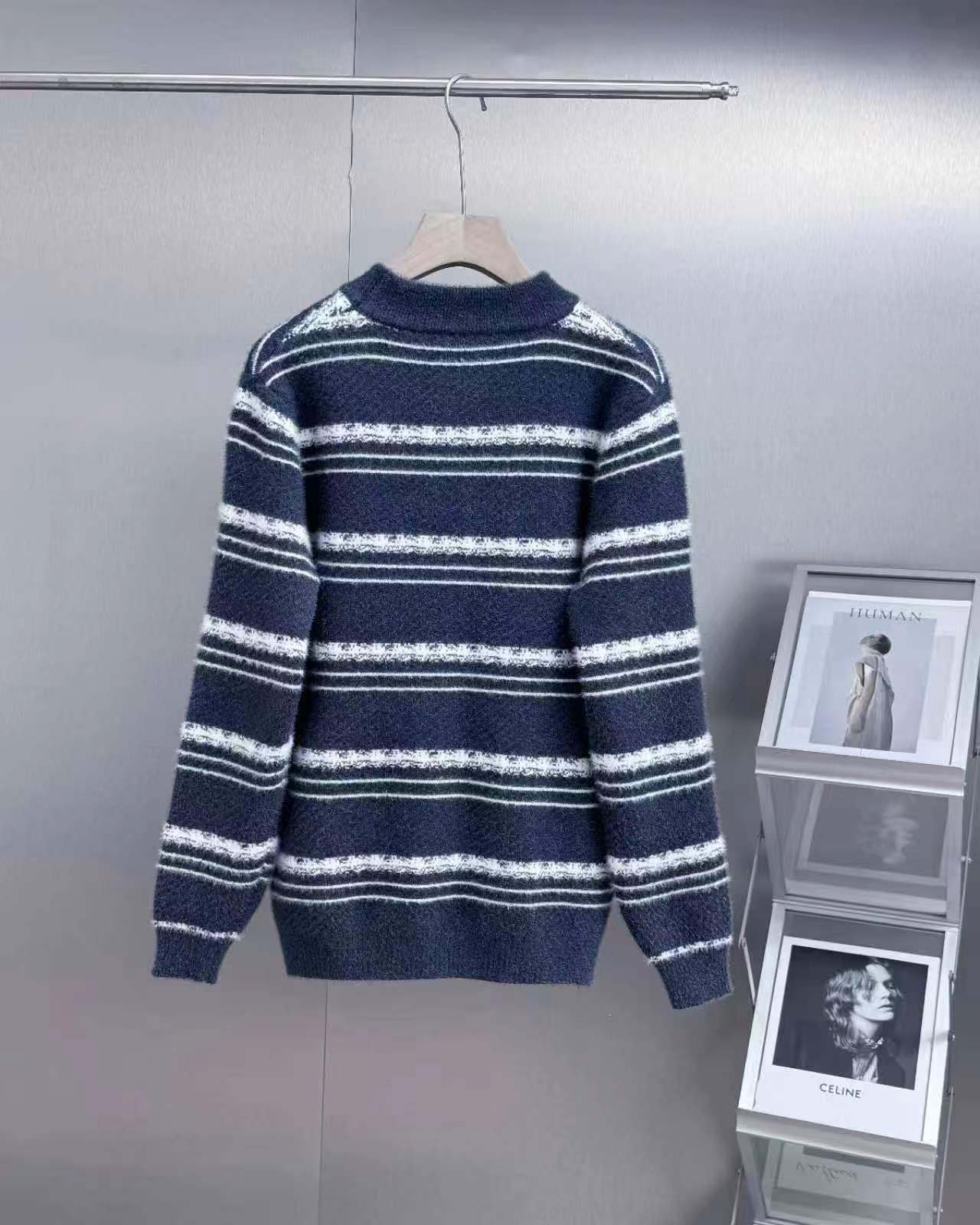 秋冬条纹慵懒风宽松情侣款毛衣,oversize风大版型毛衣,不像紧身衣那样刻意勾勒身形,也不似厚重外套般让人感到压抑,而是以一种恰到好处的姿态,给予身体足够的舒展空间,穿上它,仿佛能听见织物与肌肤的轻柔对话,那是一种难以言喻的舒适与自在。落肩的设计,松弛但不松垮,在修饰肩宽的同时,更巧妙的贴合身形,让穿上它的人,不显臃肿,反而多了一份灵动与从容!秋冬时光里,就要穿得慵懒一点,这不是对生活的妥协,而是对自我的一种善待。时光缓缓流过,让我们以一件宽松的条纹毛衣,拥抱慢生活,享受那份由内而外的舒适与自在。