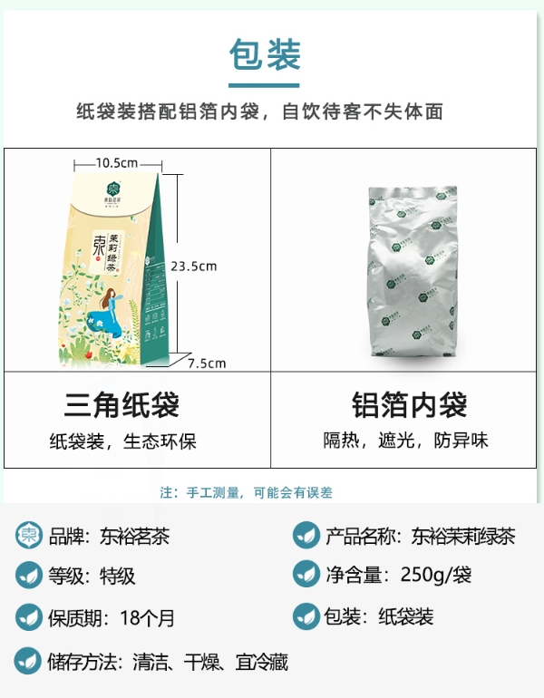 【好茶上新】东裕茗茶 浓香型 茉莉绿茶三角袋 250克