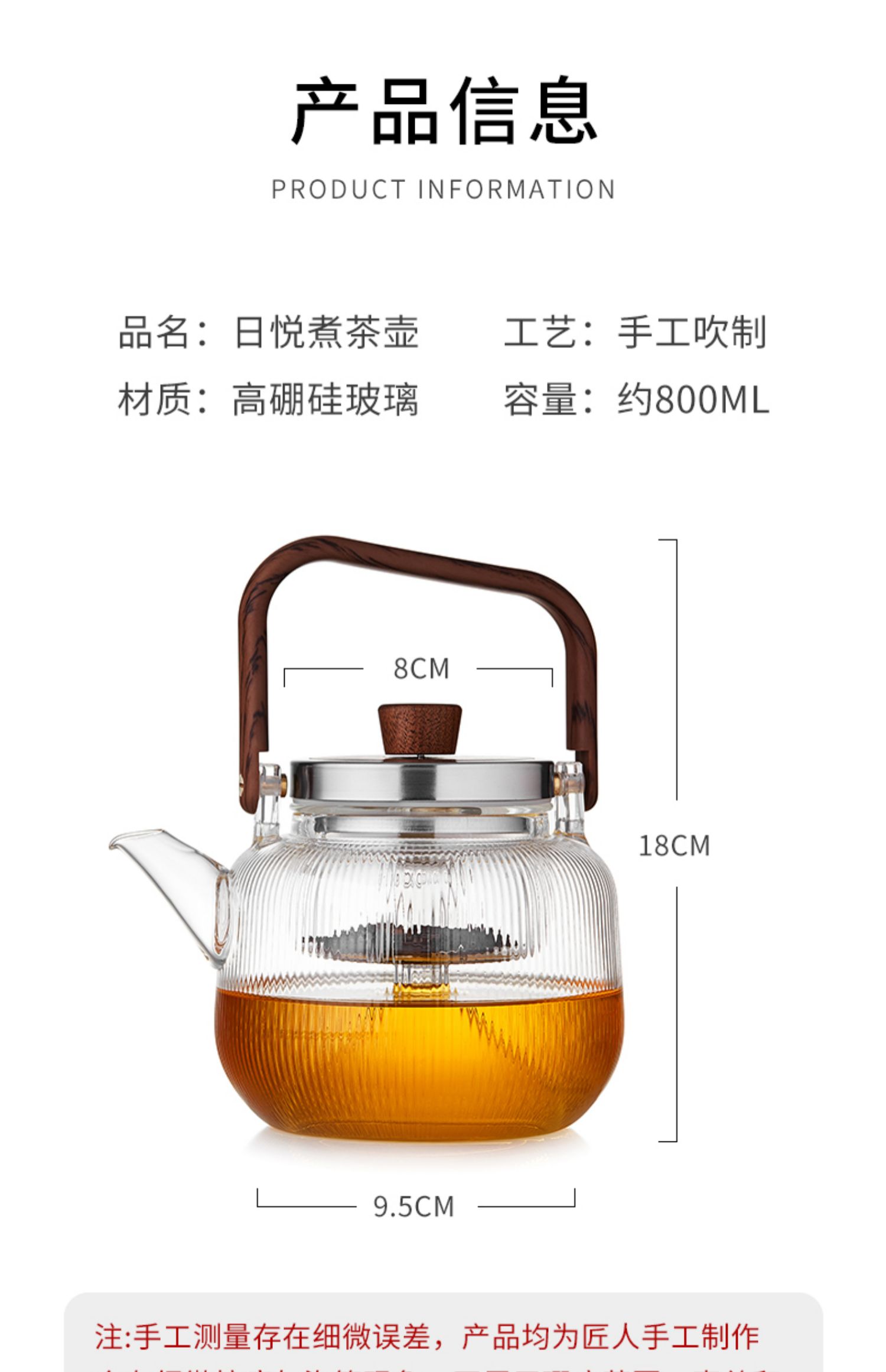 永利汇大容量加厚耐热玻璃茶壶蒸煮两用煮水壶电陶炉专用加热泡茶壶器