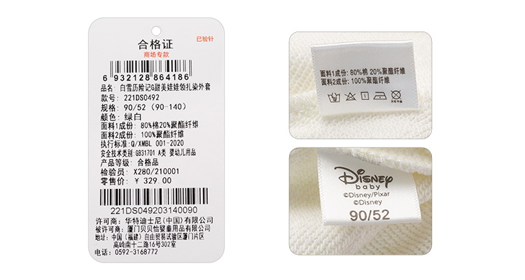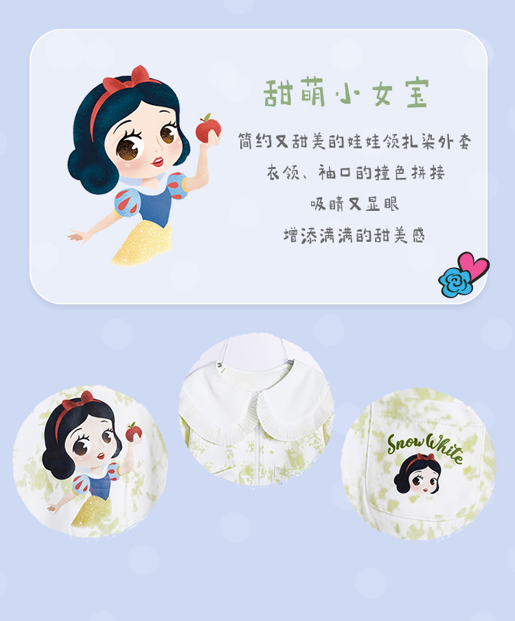 【商场同款】迪士尼童装女童扎染外套白雪公主可爱大翻领中小童娃娃领上衣开衫221DS0492