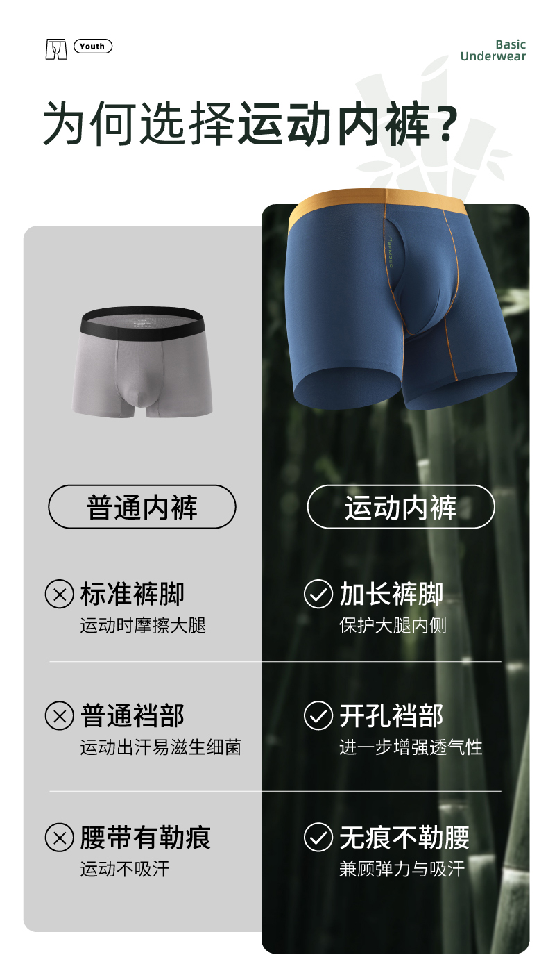 运动款 · 竹纤维加长款运动内裤 商品图0