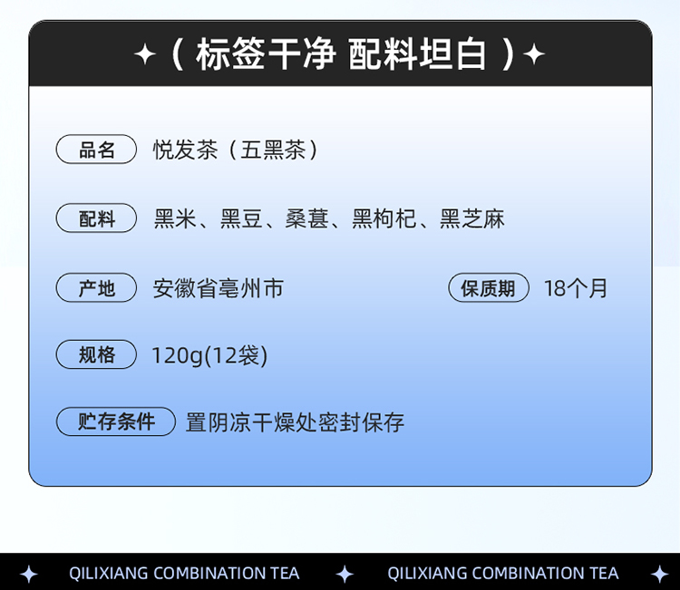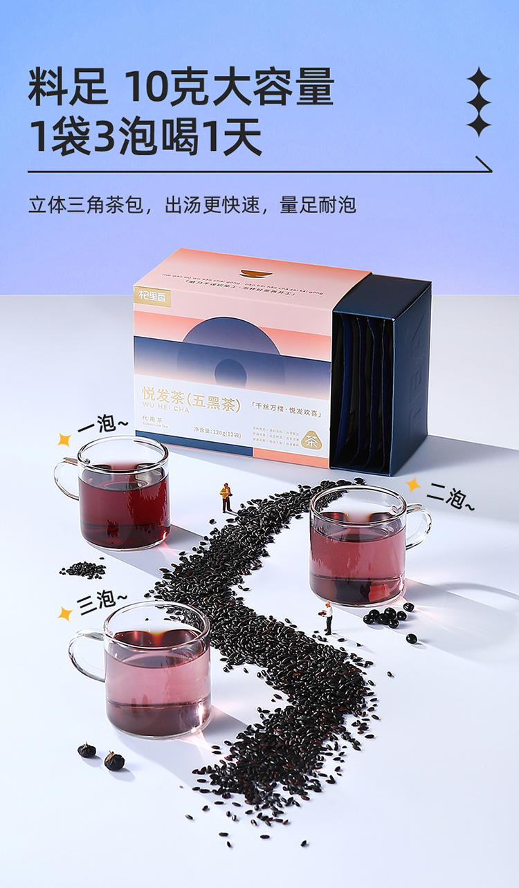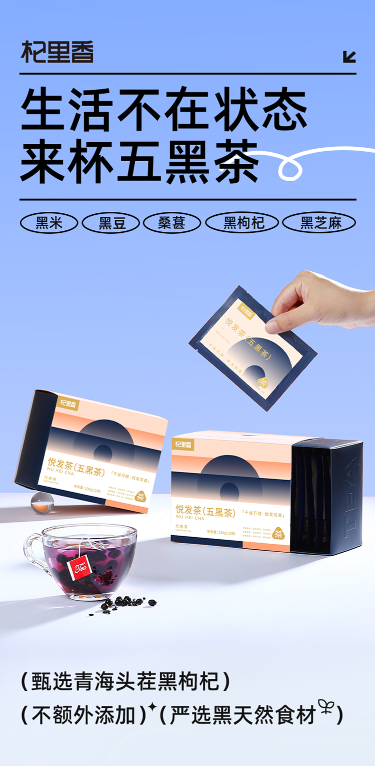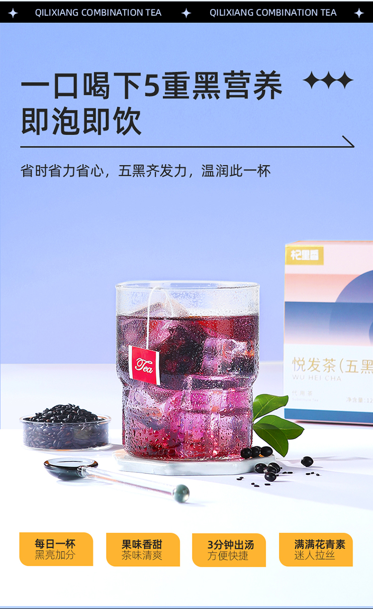 【冬季滋补】杞里香120g(12袋)悦发茶(五黑茶)黑豆、黑芝麻、黑米、黑桑葚、黑枸杞;五谷香浓,果干清甜;免煮型,即泡即饮,独立小袋,食用更方便