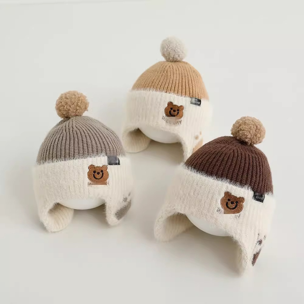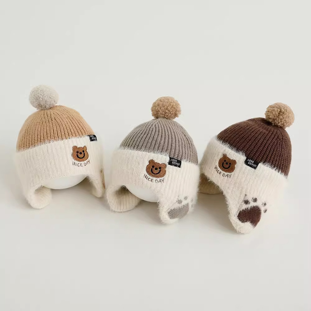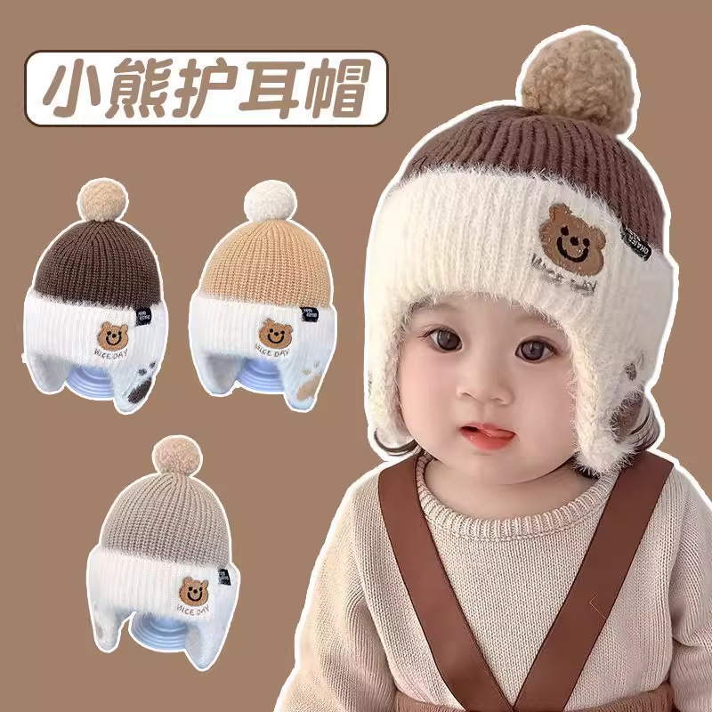 【恒温保暖!柔软亲肤】儿童护耳帽子加绒秋冬新款小熊可爱小熊韩版时尚宝宝帽子洋气款。rc