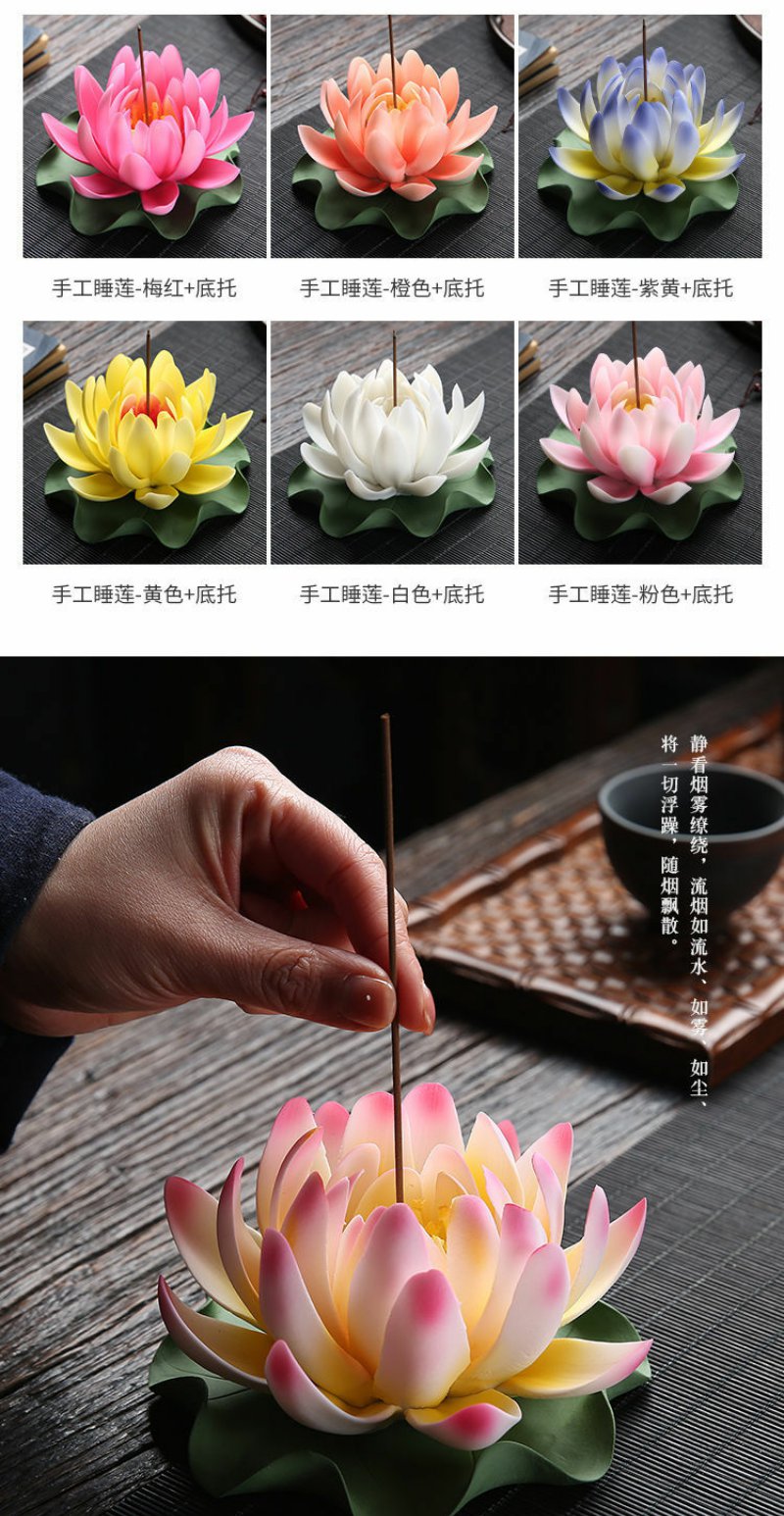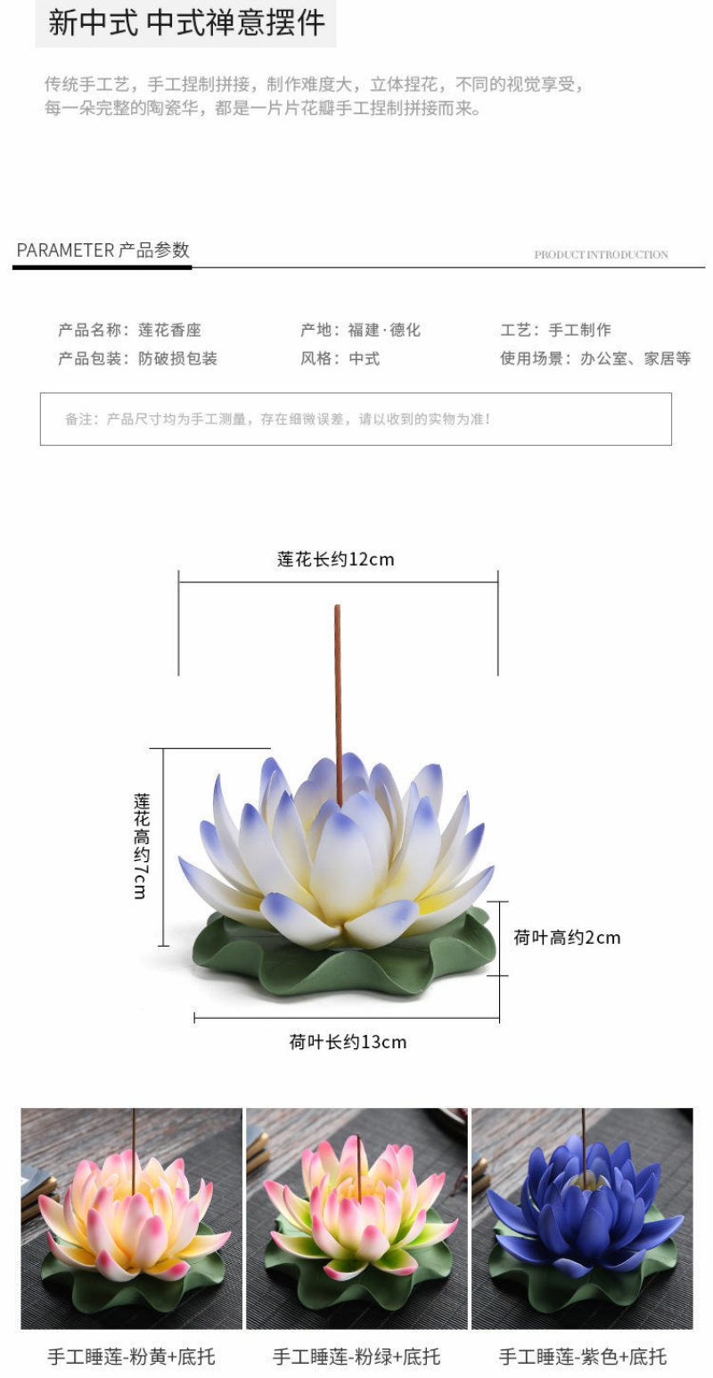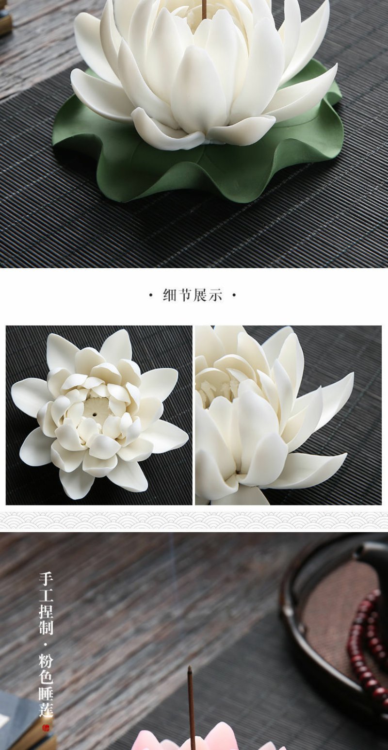 陶瓷香插莲花香座家用香炉室内香托线香檀香佛用品香薰茶道摆件