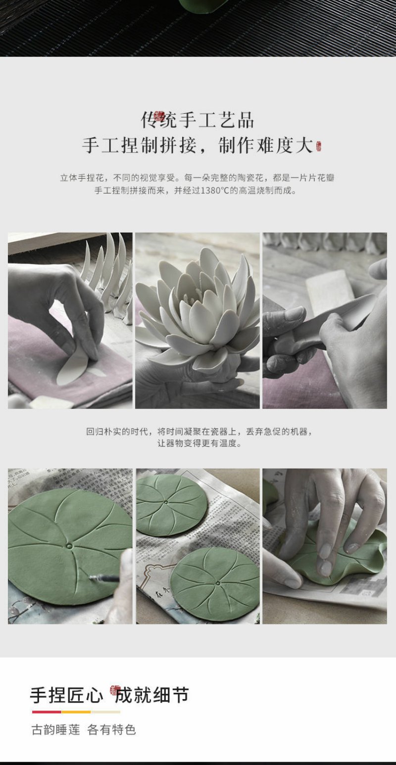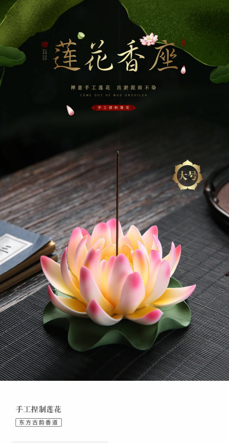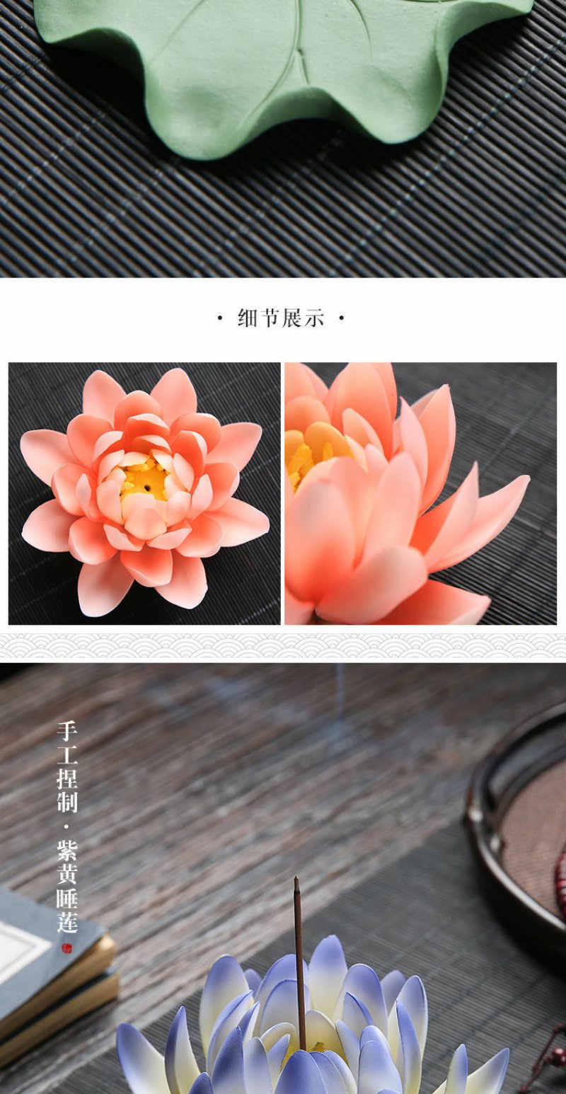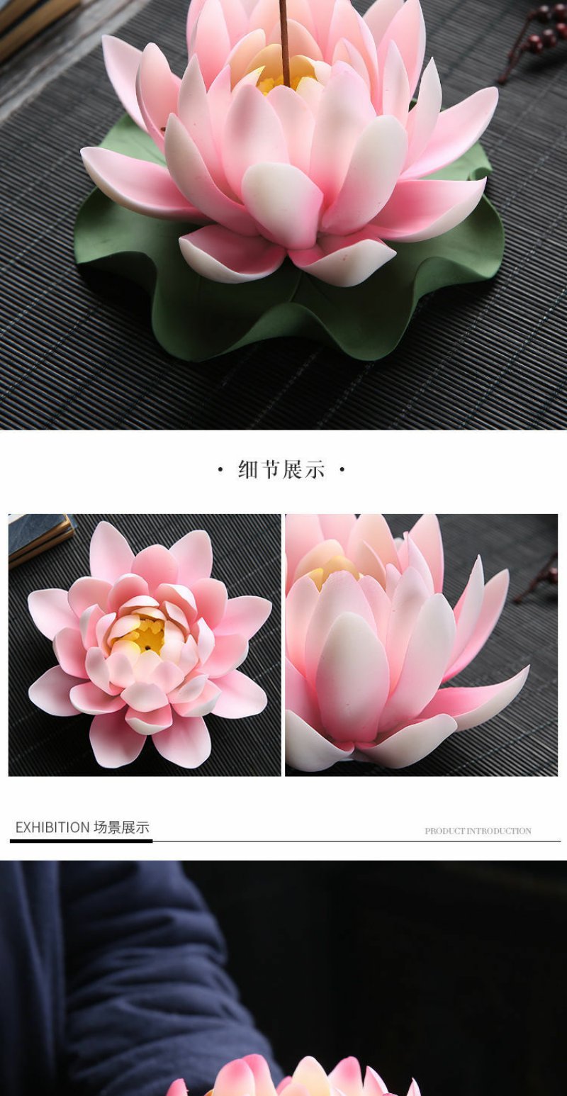 陶瓷香插莲花香座家用香炉室内香托线香檀香佛用品香薰茶道摆件