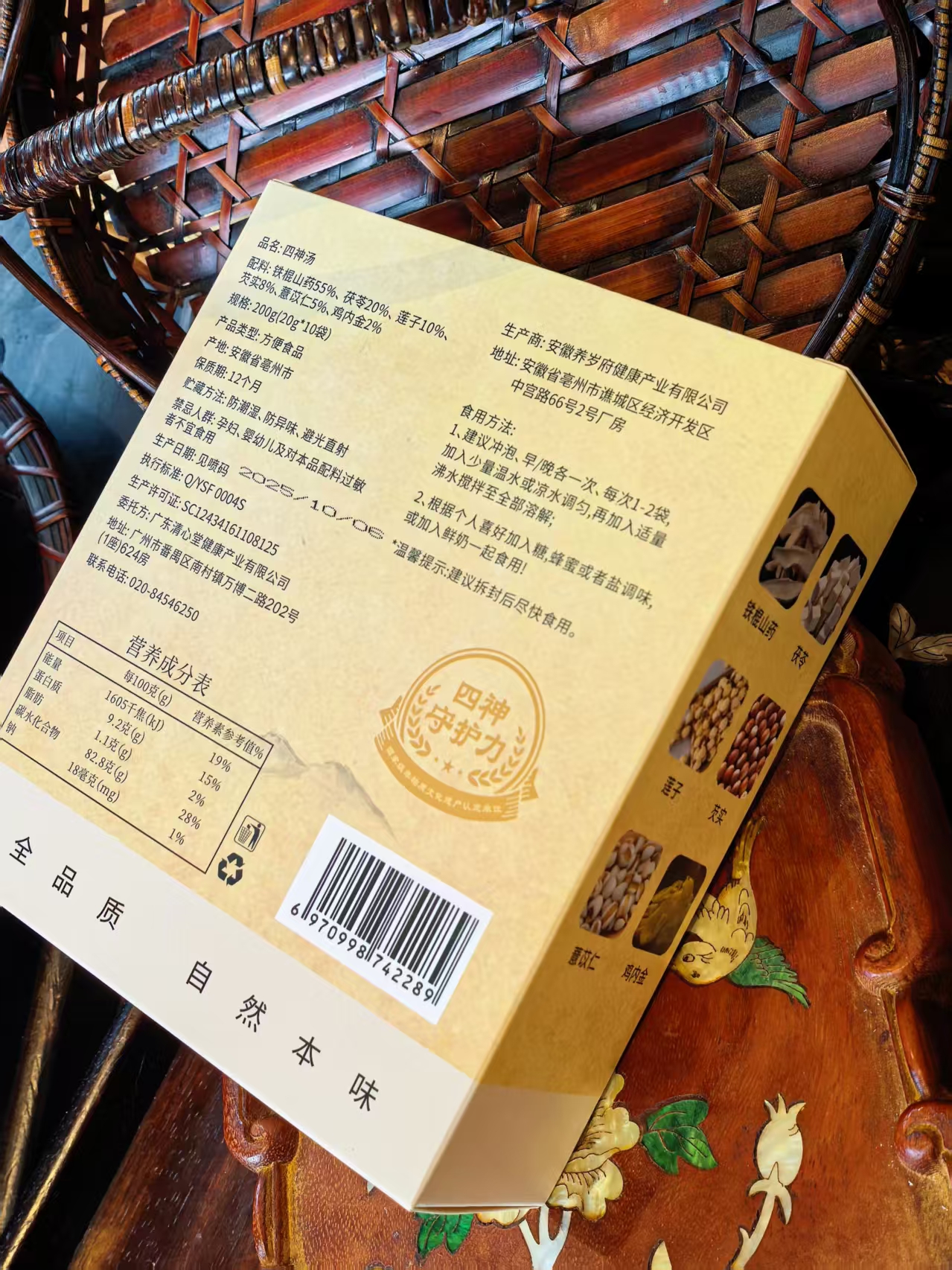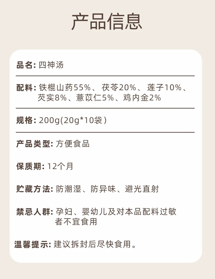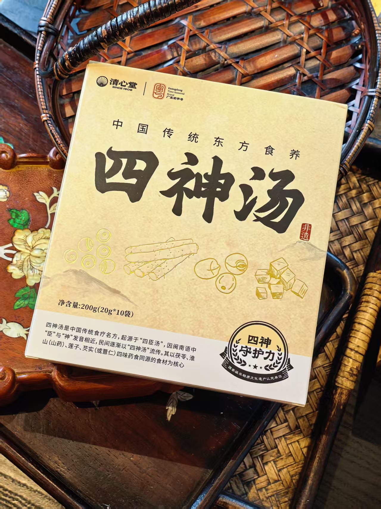 之前上莲子芡实时就有老粉问到四神汤了,那么,直接来一袋粉粉吧,是清心堂的,品质有保障,也不用纠结配比,还不需要费神自己煮,直接一泡,就能补一补咯!