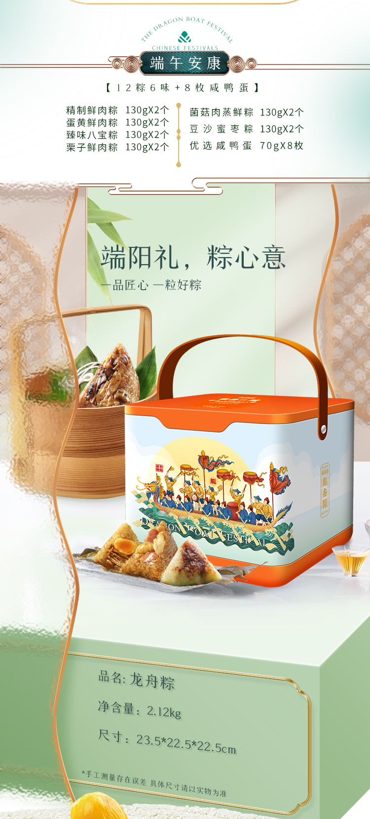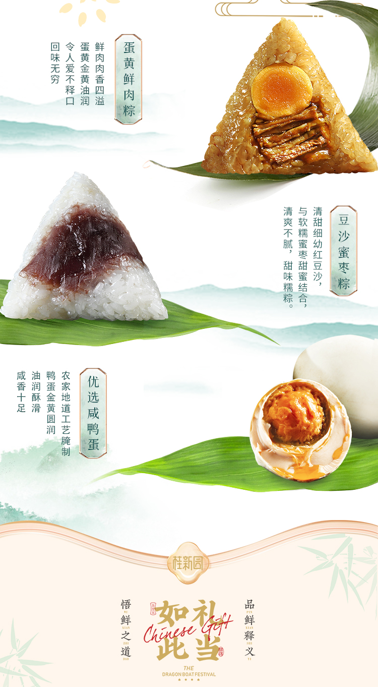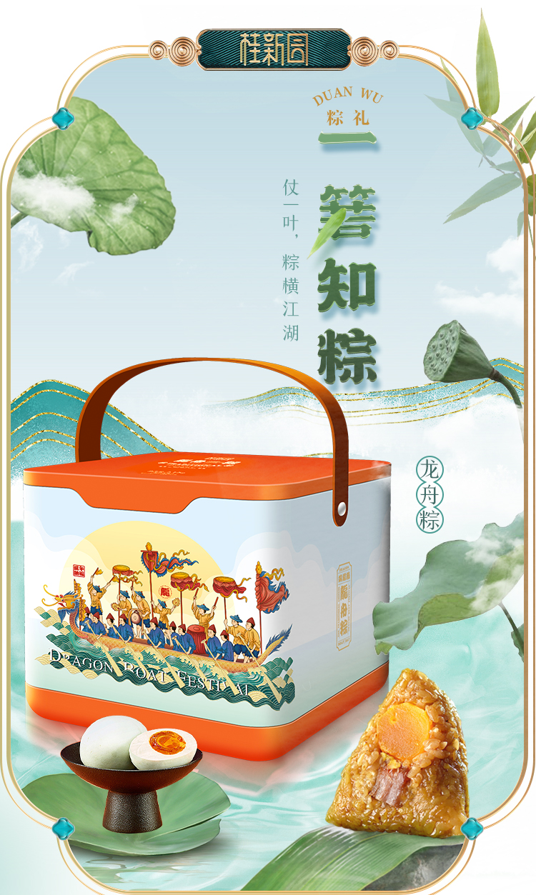 龙舟粽【门市价189元】12粽6味+8枚咸鸭蛋——桂新园端午家乡粽系列