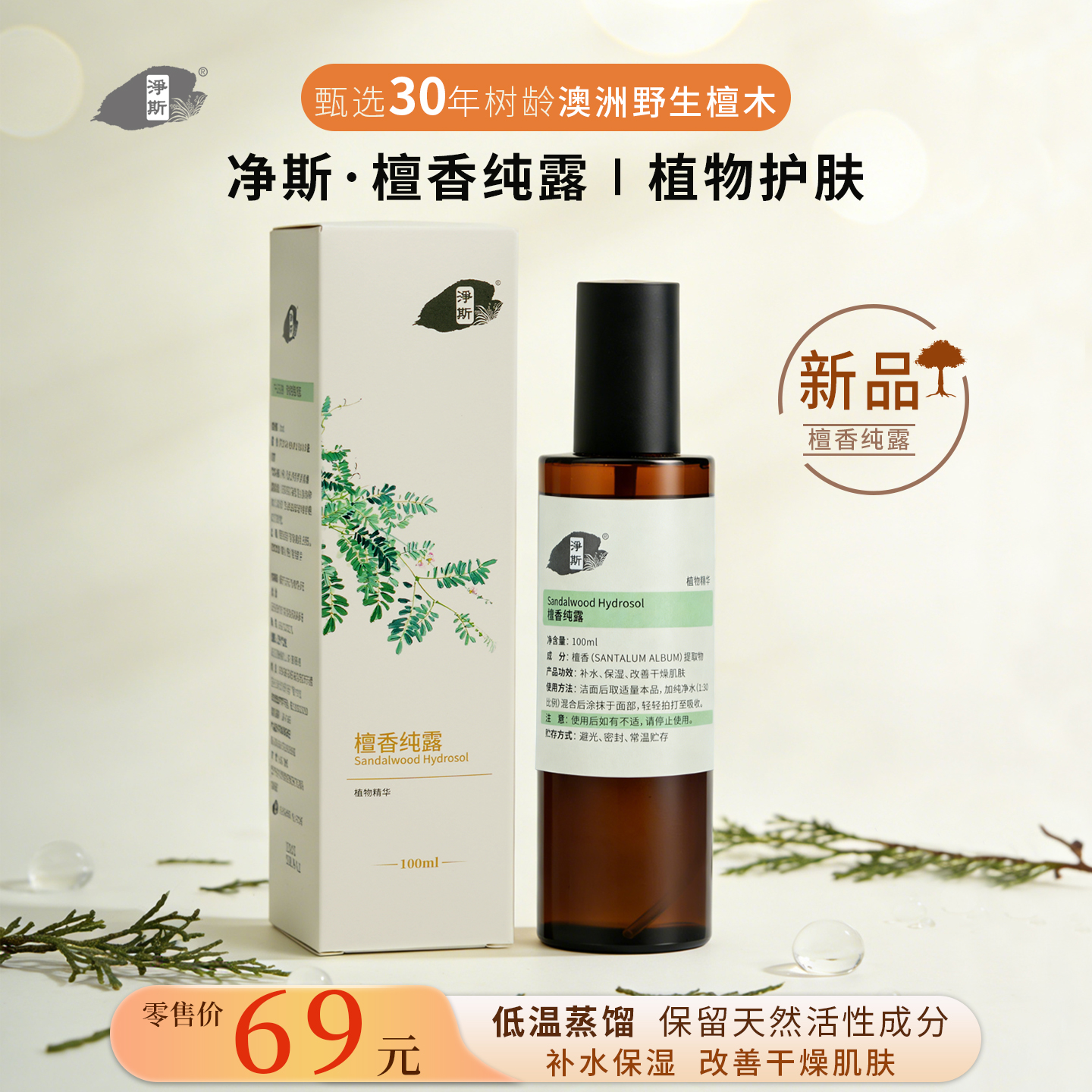 【静思书轩】净斯檀香纯露保湿水天然植物提取低温蒸馏保留活性成分