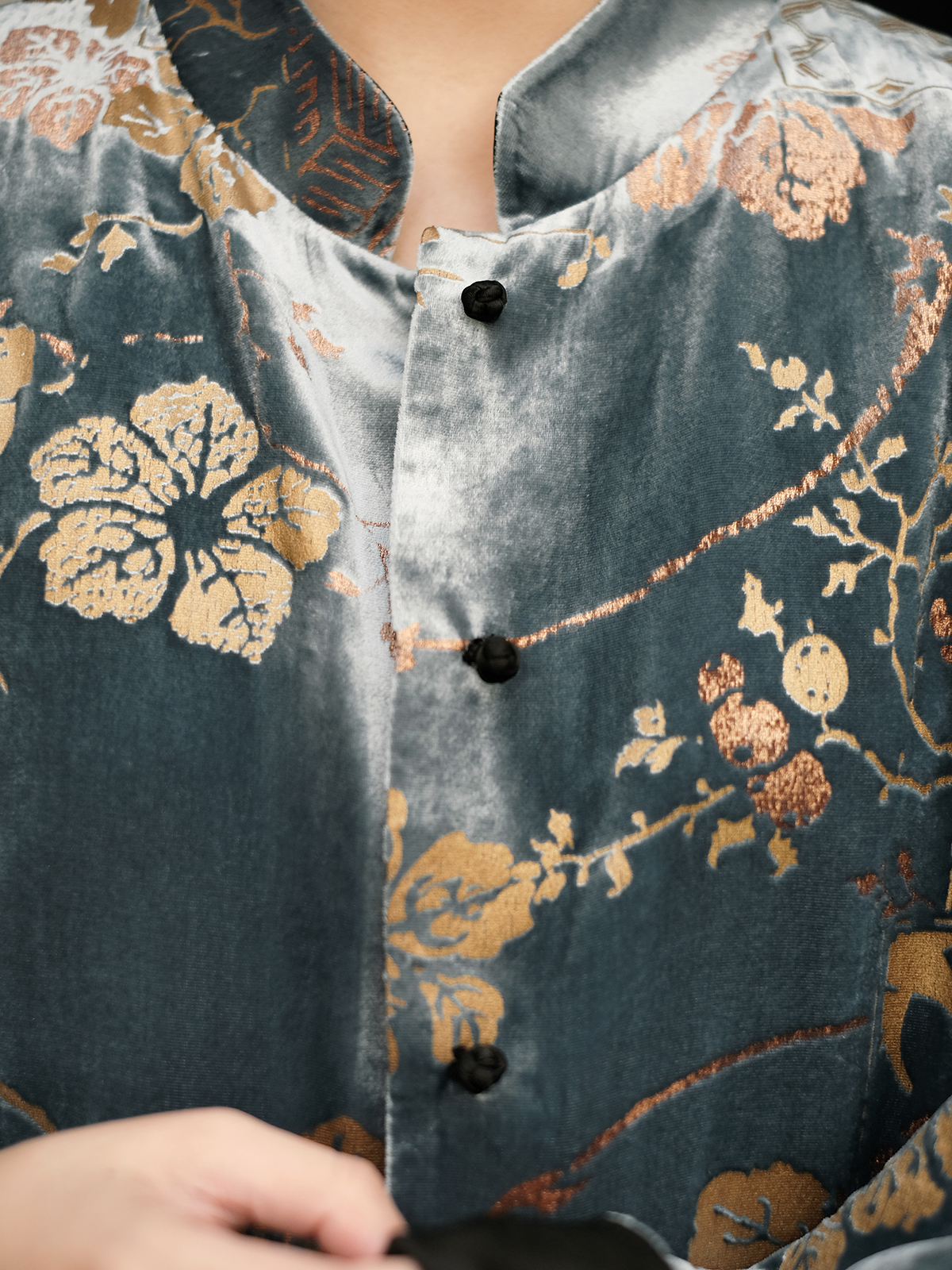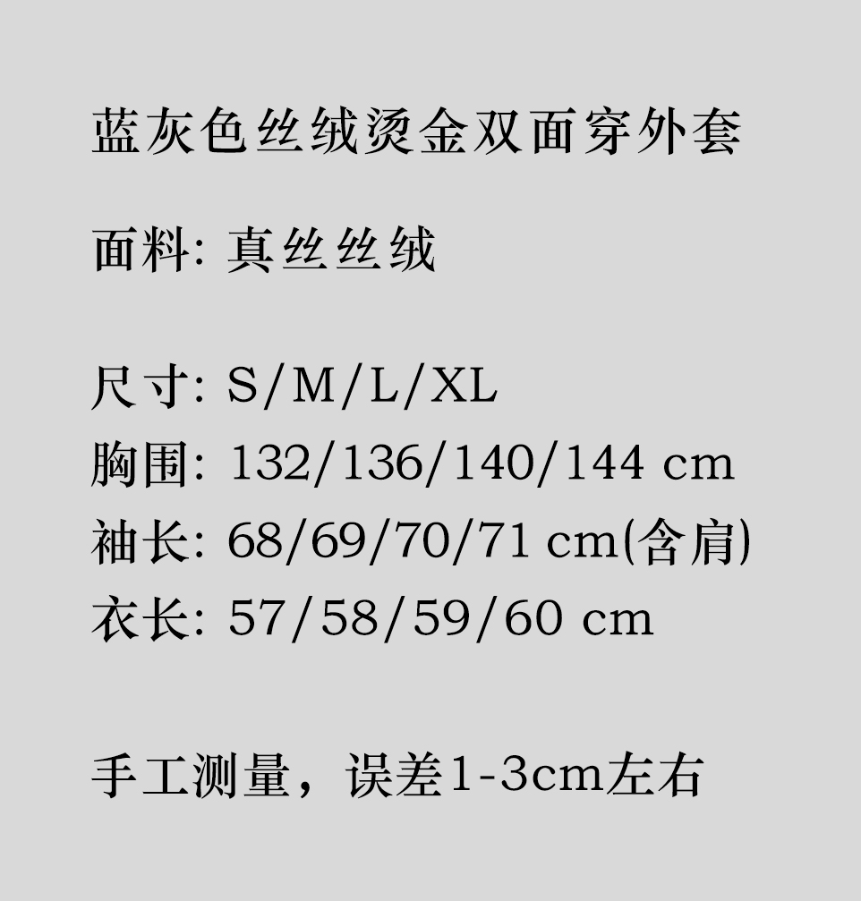 限量款| 盛唐牡丹 |蓝灰色丝绒烫金双面穿外套 (不夹棉)