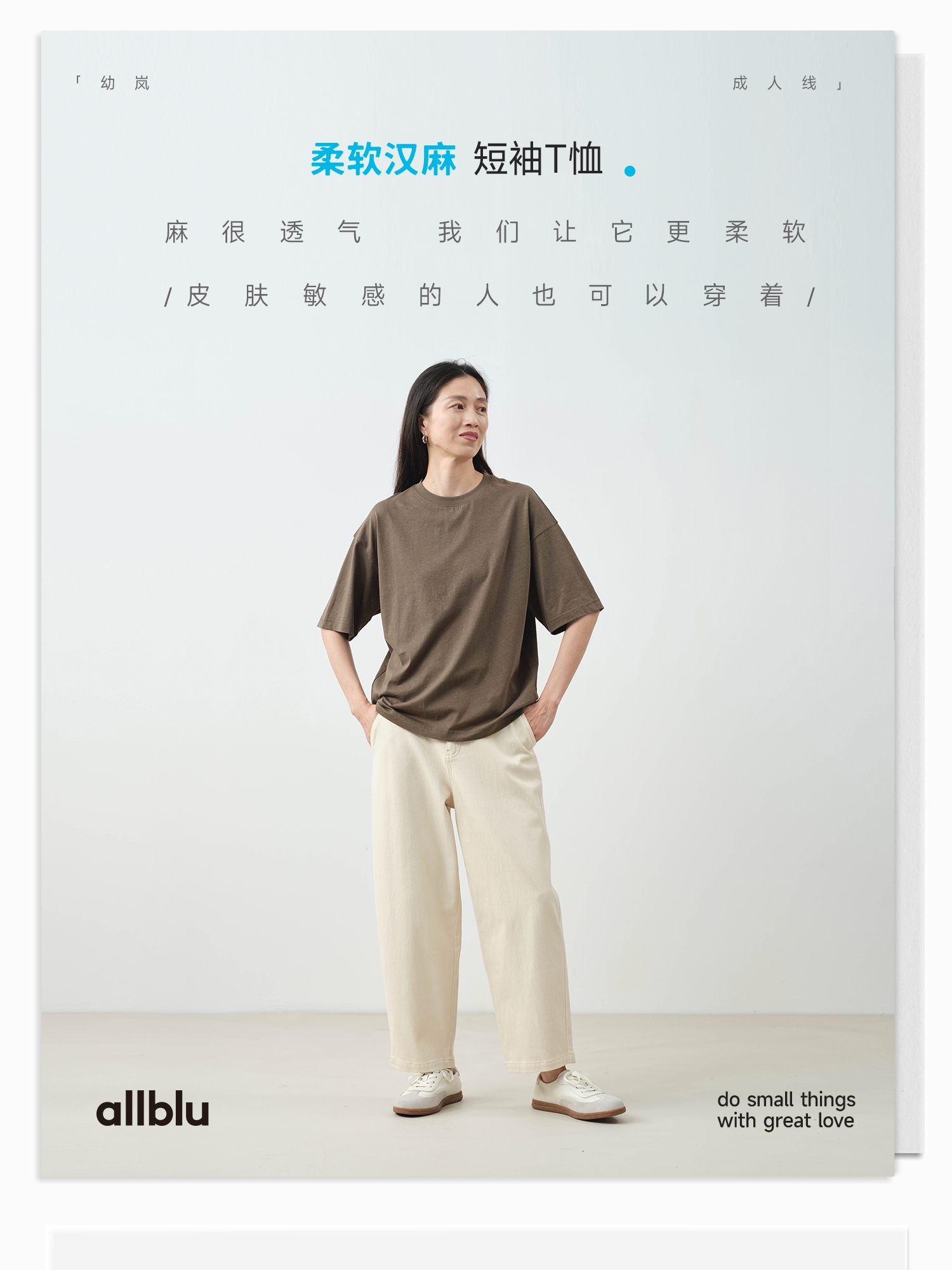 【粉丝专属】allblu幼岚"敏感肌也能穿"【女士柔软汉麻短袖T恤】|透气亲肤Tee