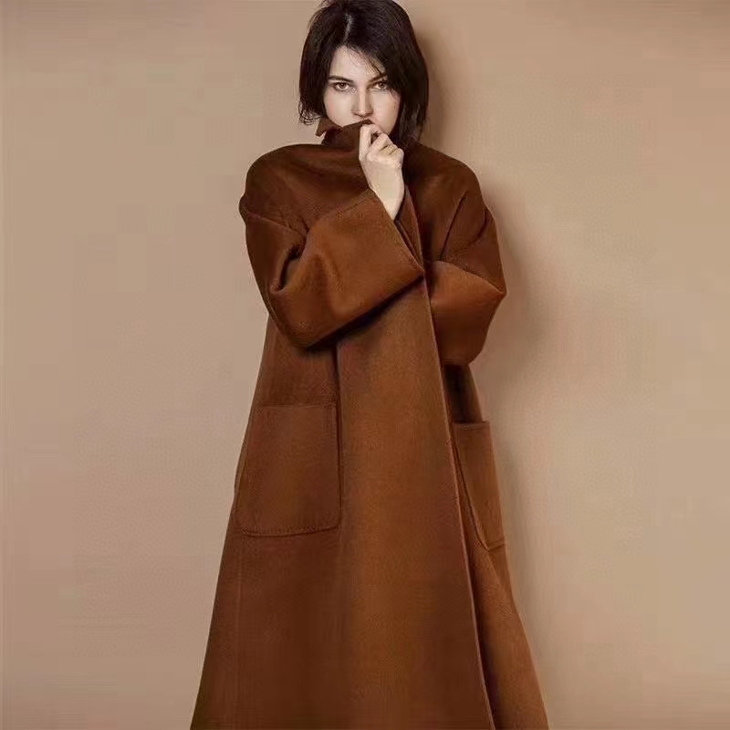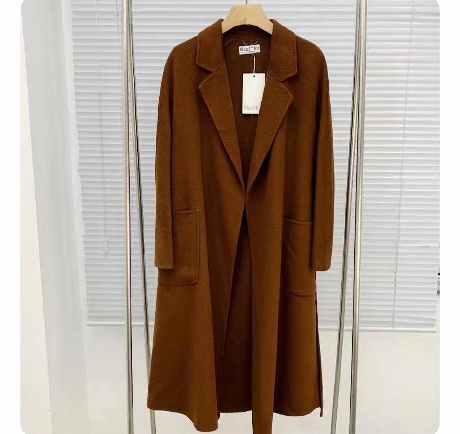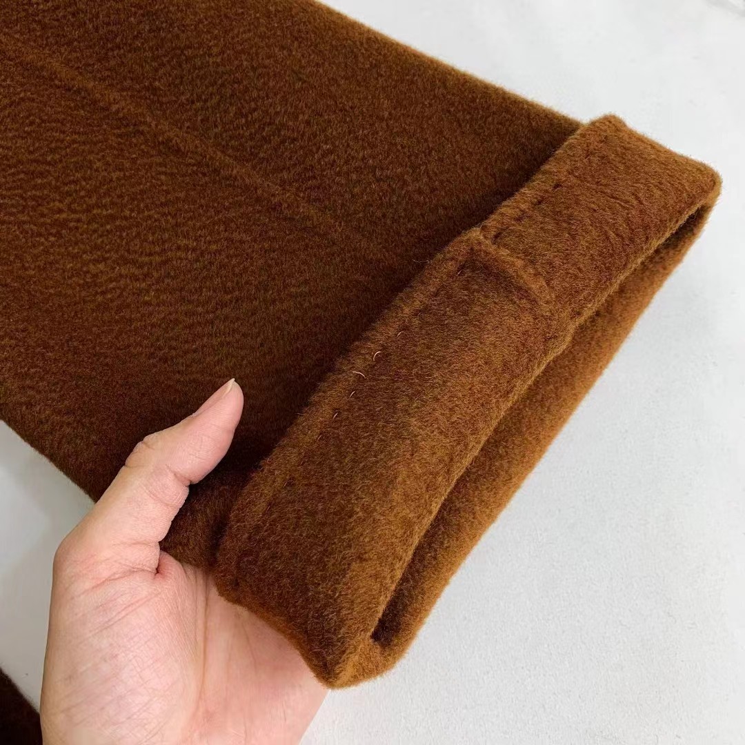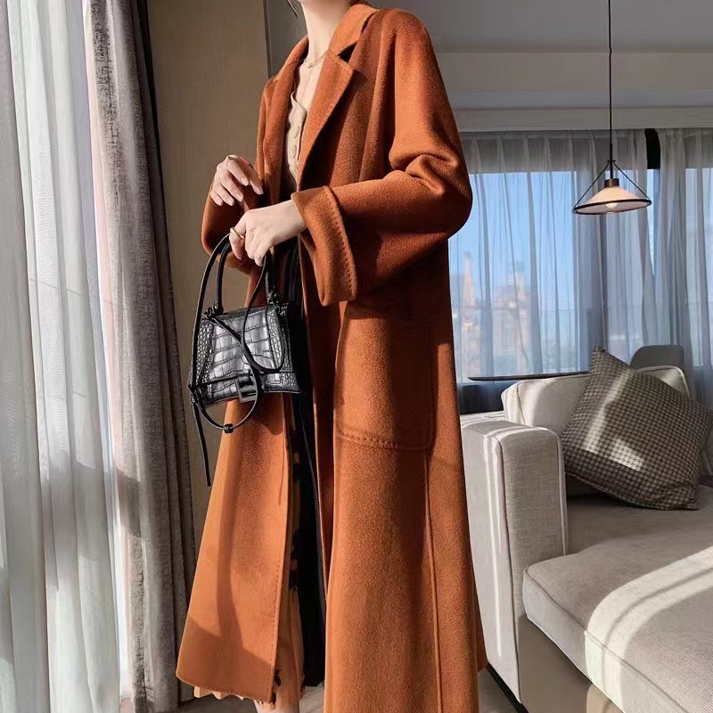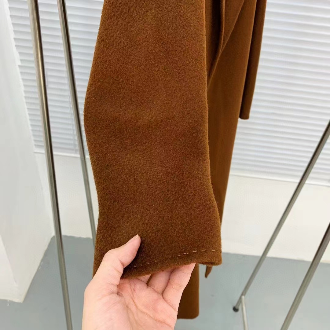 F011394焦糖色水波纹三十而已顾佳同款纯羊绒双面呢大衣女中长款外套