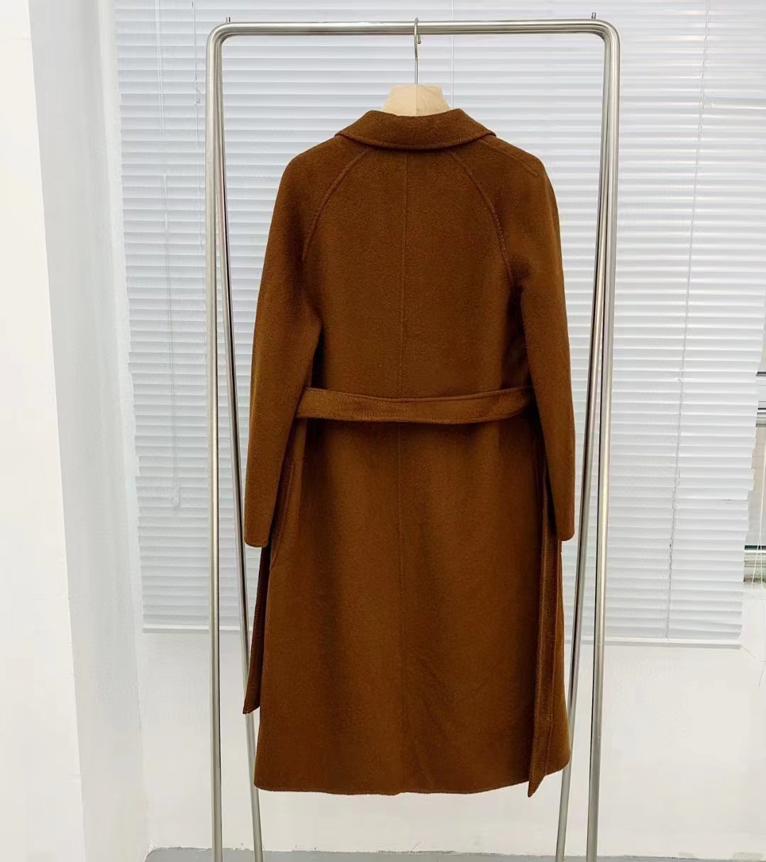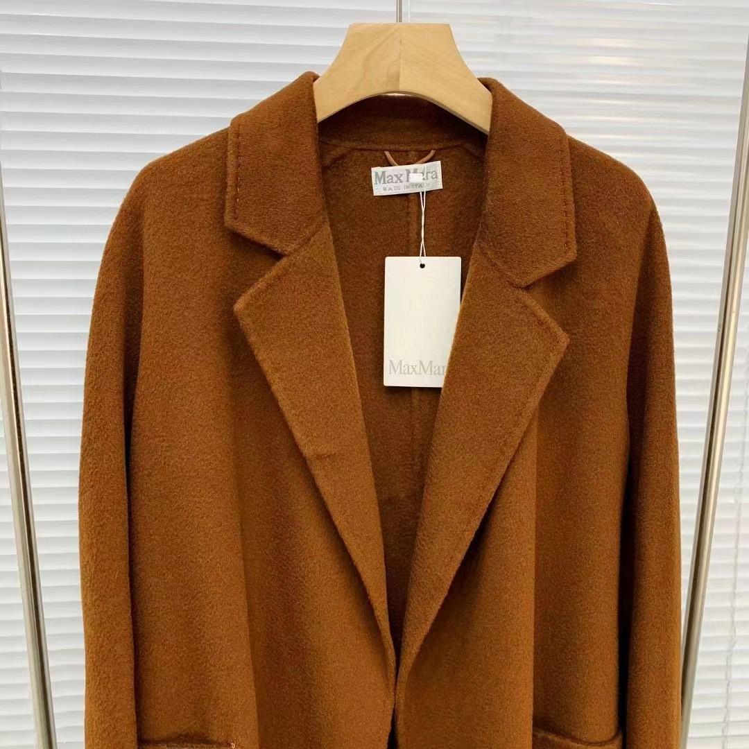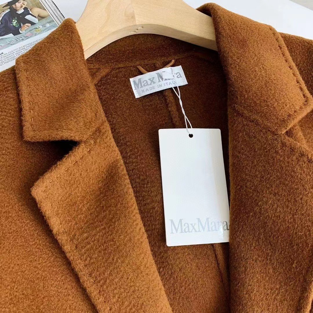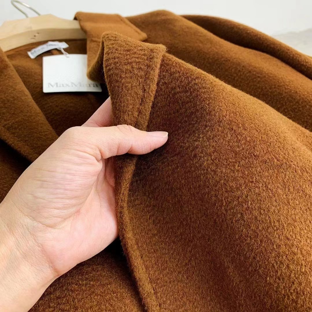 F011394焦糖色水波纹三十而已顾佳同款纯羊绒双面呢大衣女中长款外套