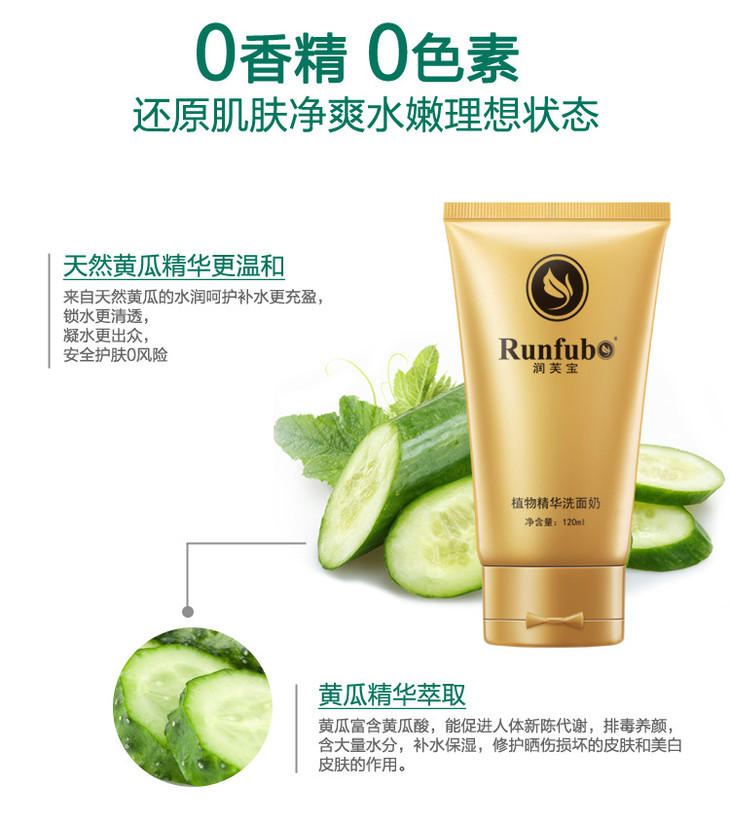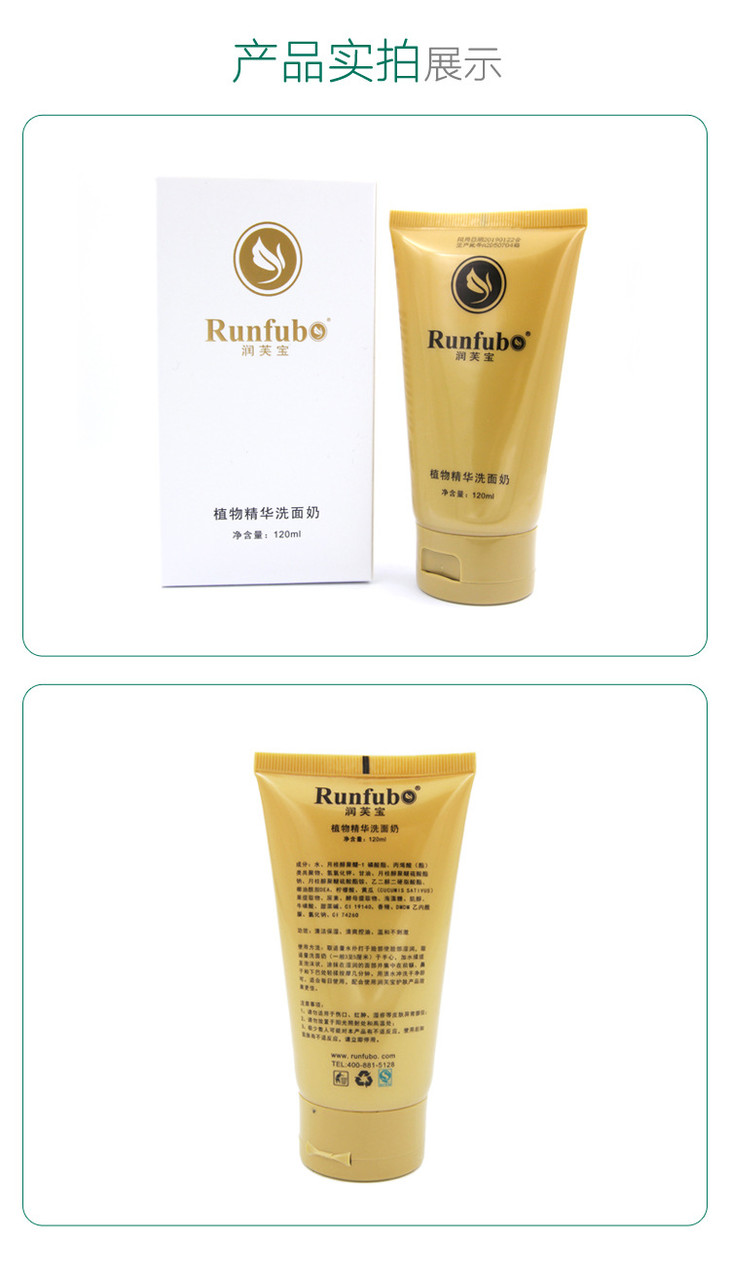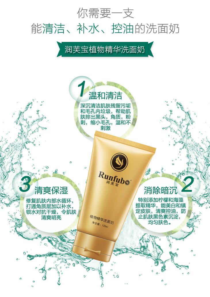 【洗面奶】祛痘清洁控油洗面奶 清爽保湿植物精华洁面乳 润芙宝洁面护肤品