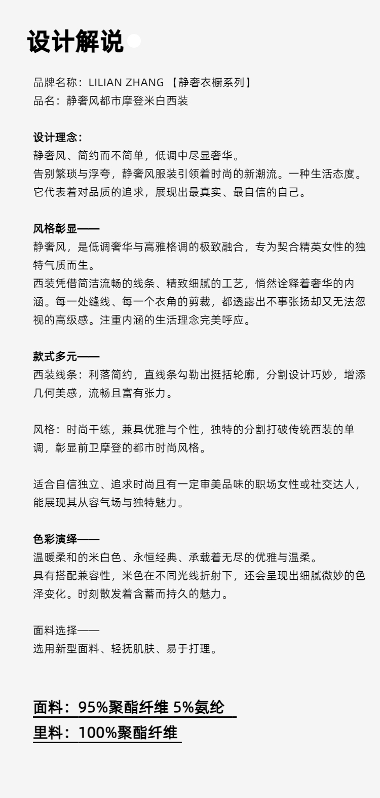 E春夏新品定制——静奢风 ——都市摩登——风尚之选——米白西装 2405034