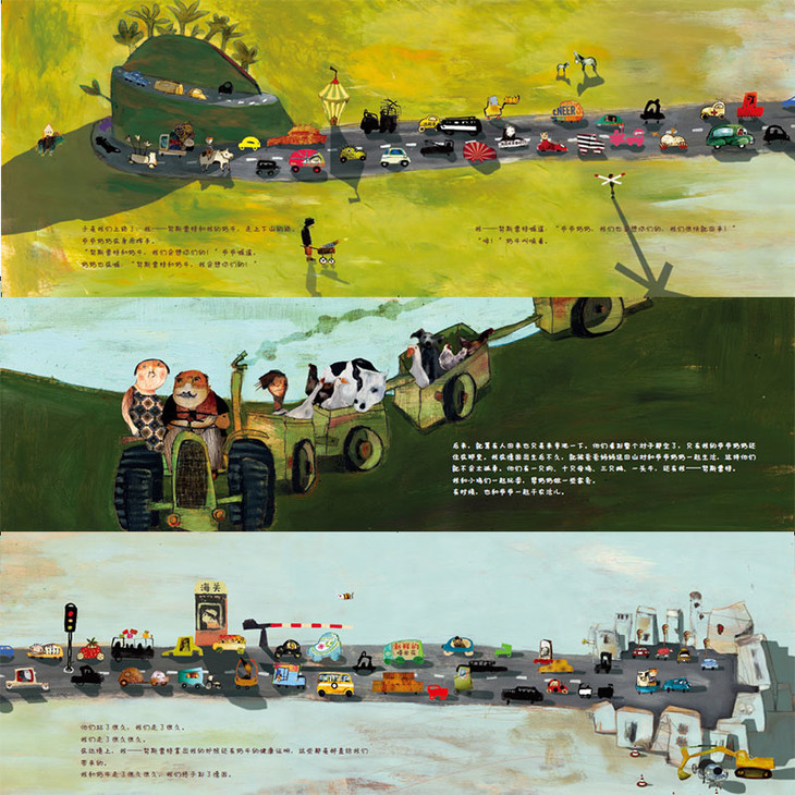 他决定带着奶牛一起走,这样它就能学习认字和写字,他们就能给爷爷奶奶写信。
