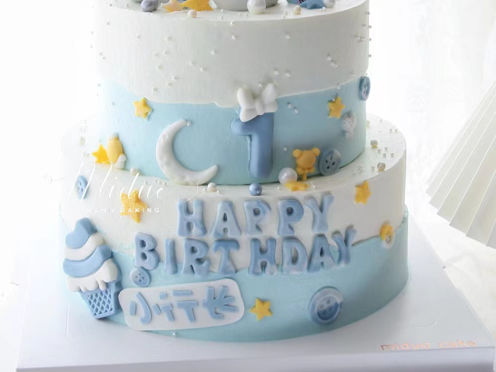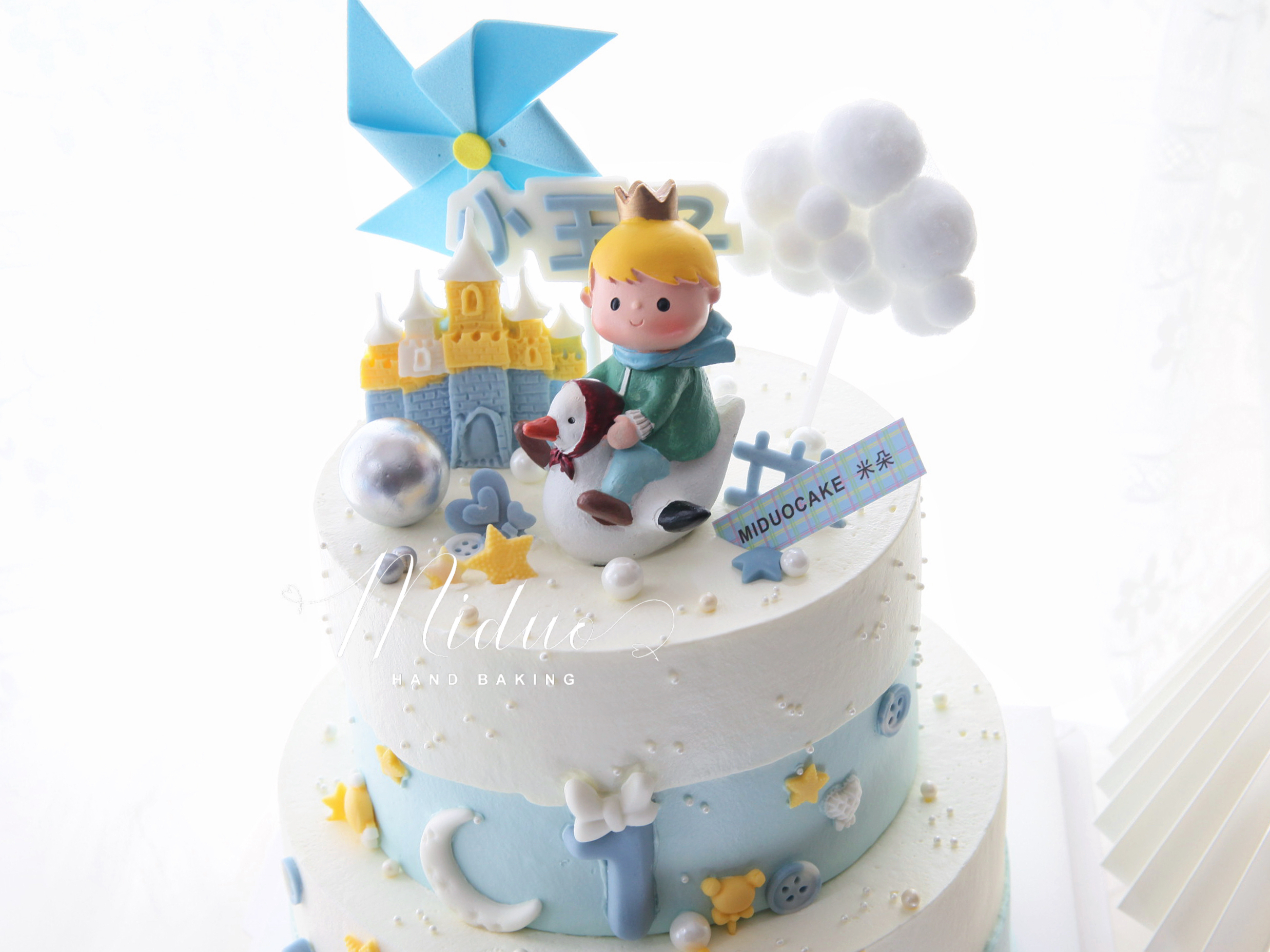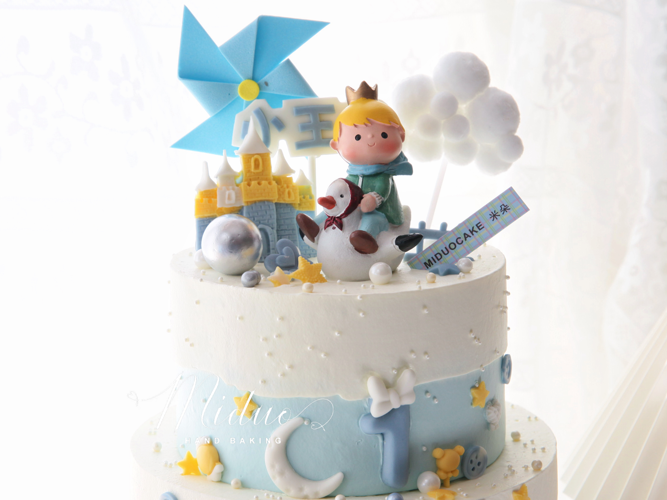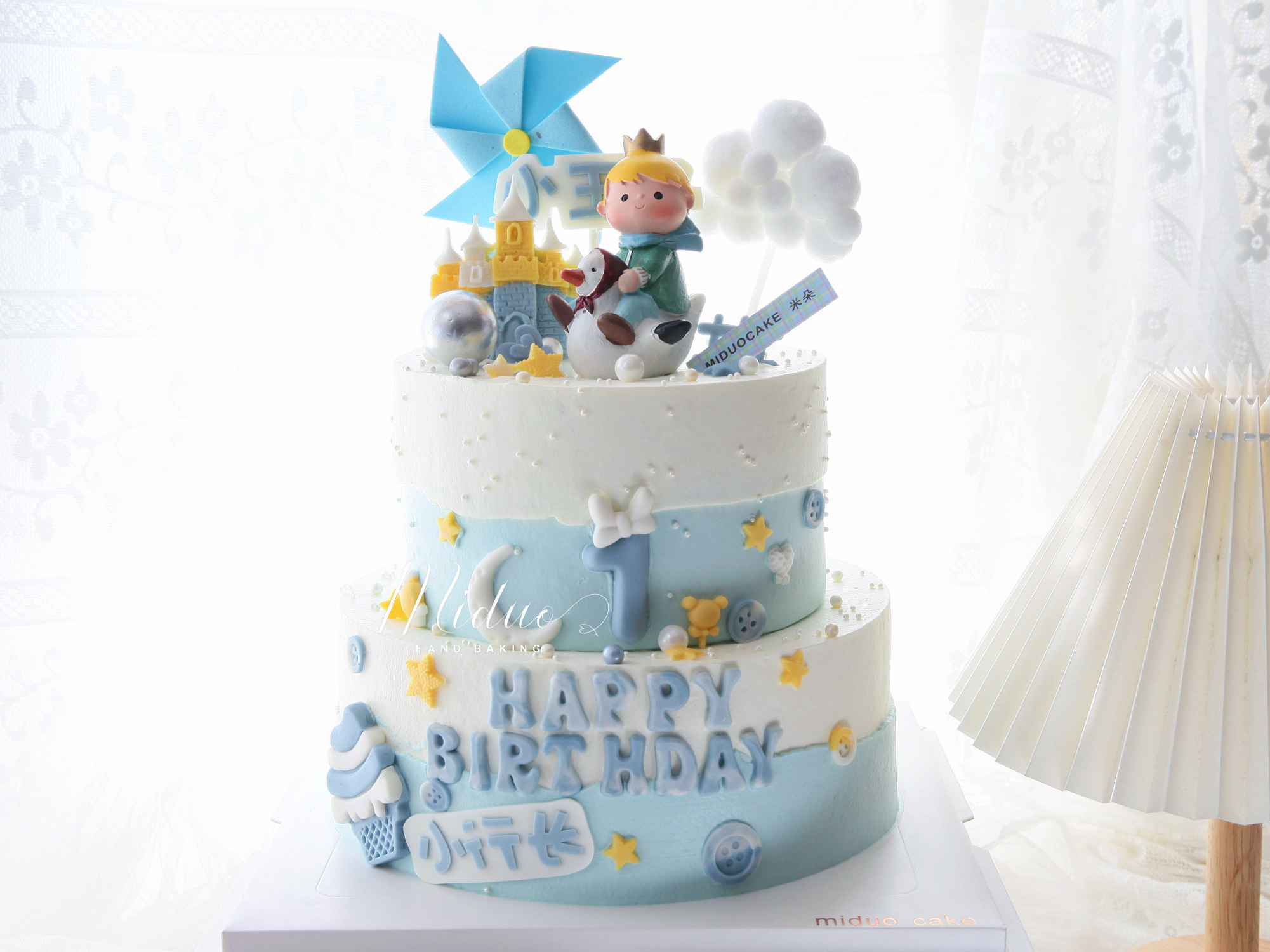 男孩款 周岁小王子 城堡 糖牌 1周岁 蓝色系 双层蛋糕