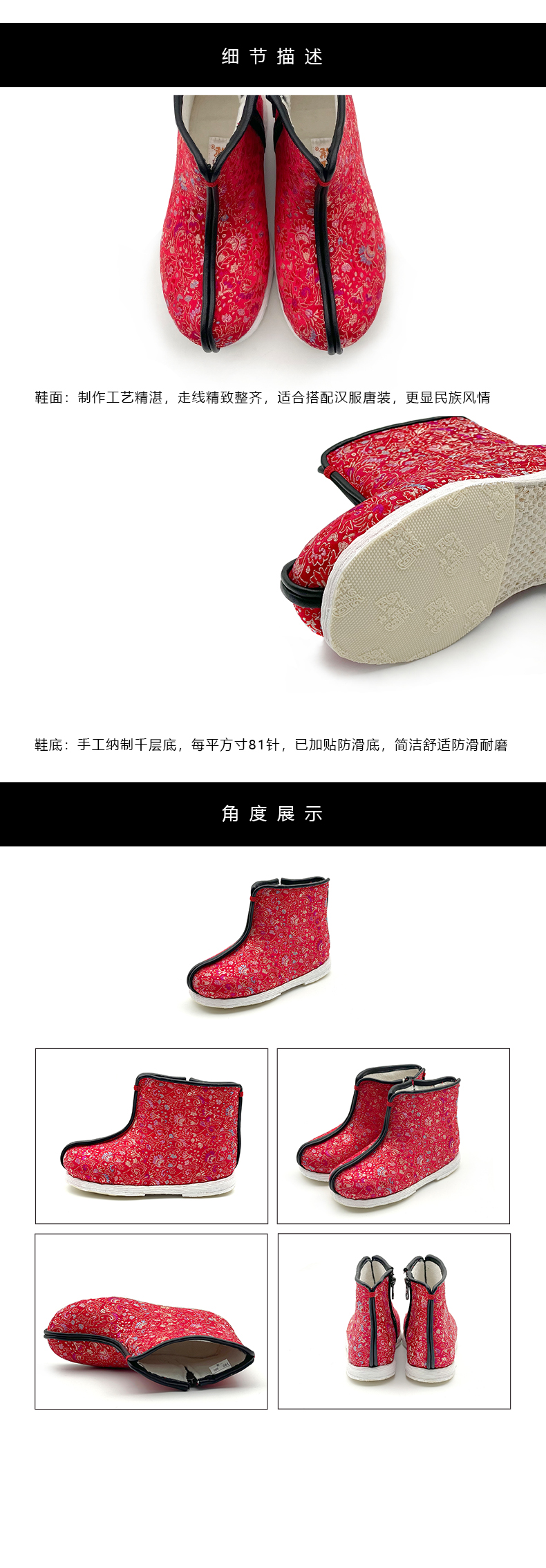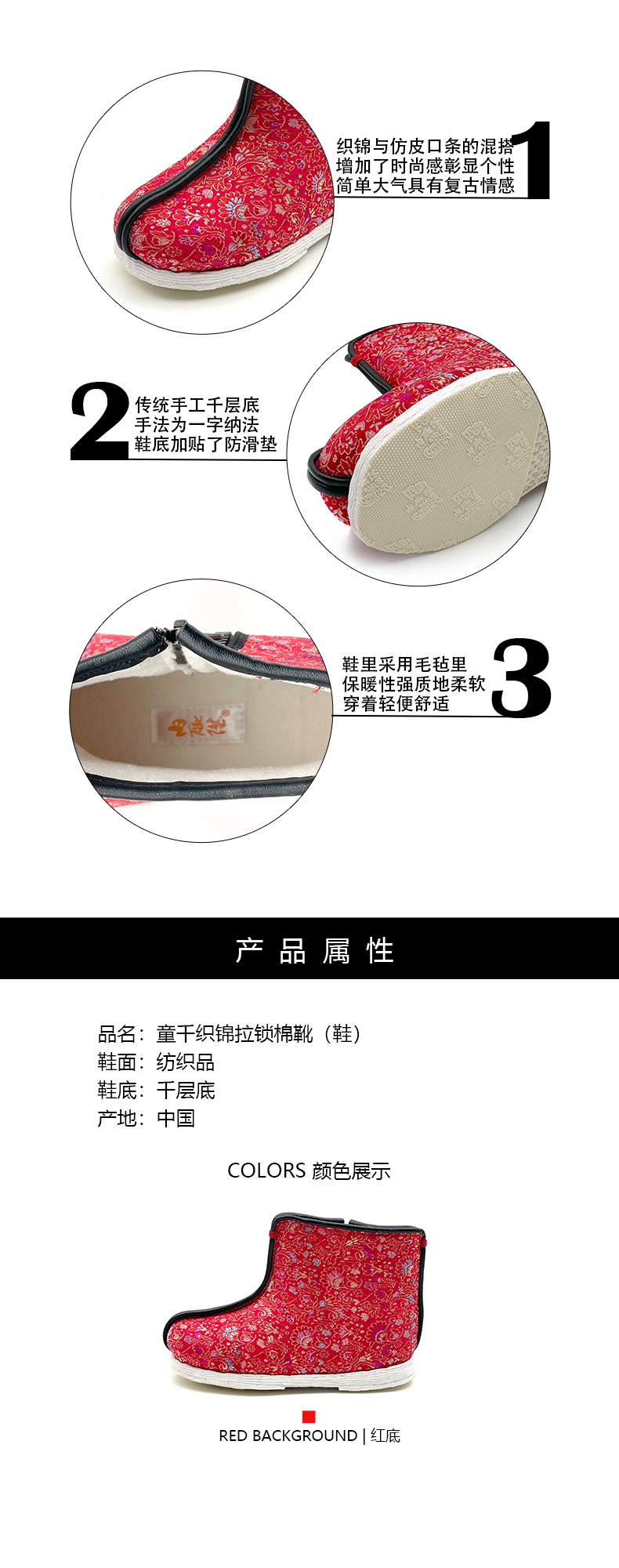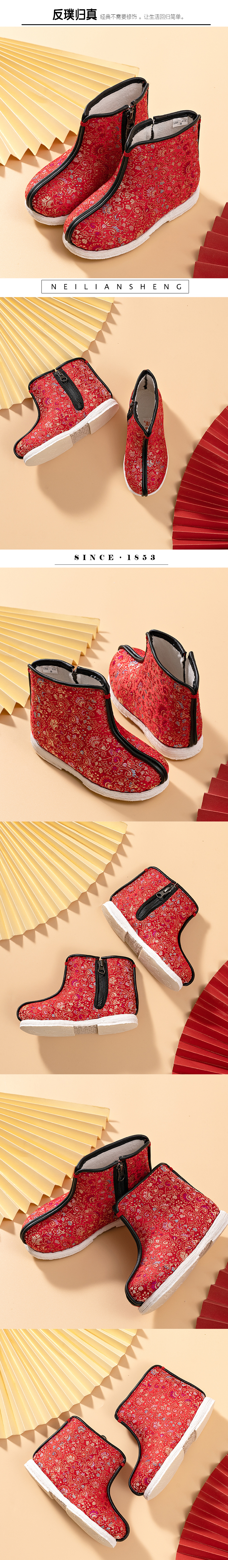 内联升手工棉鞋千层底织锦拉锁棉靴(鞋)5296C
