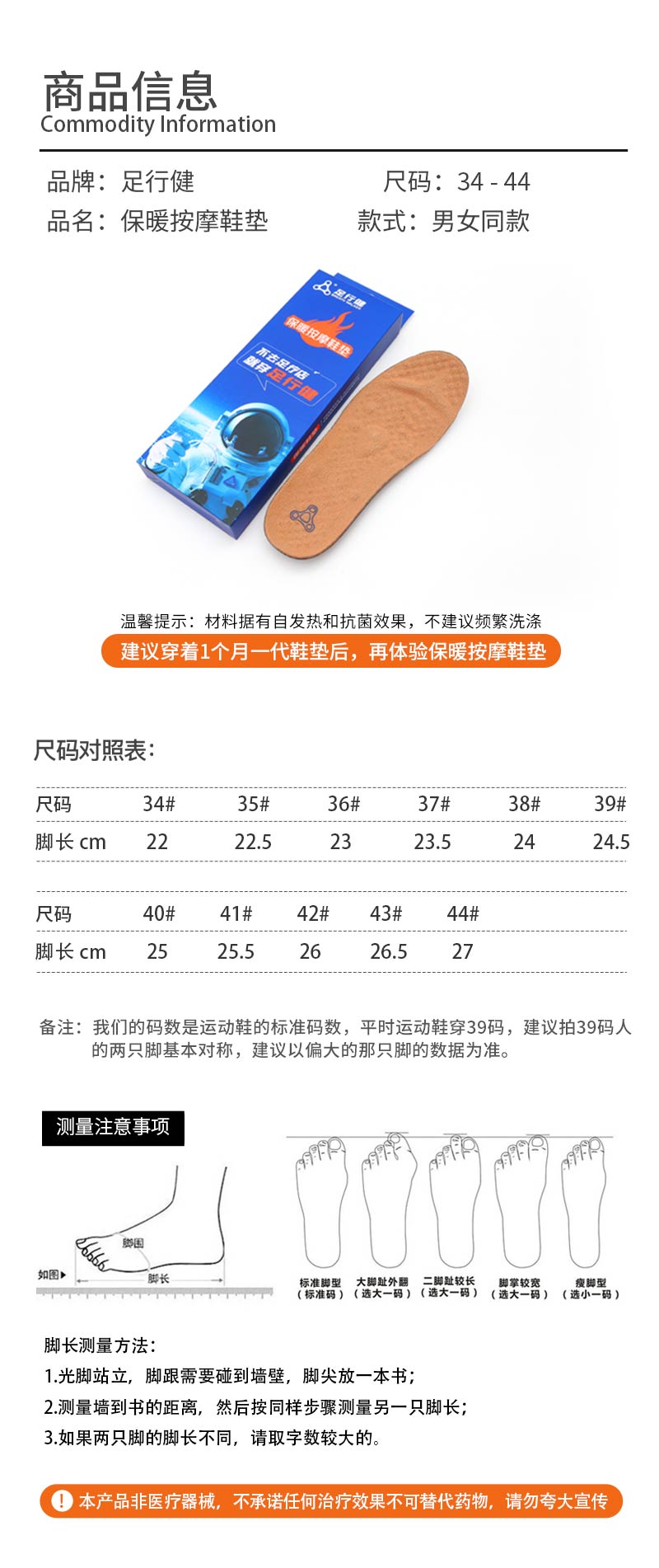 足行健保暖鞋垫-穴位磁石吸湿排汗锁温抑菌男女款