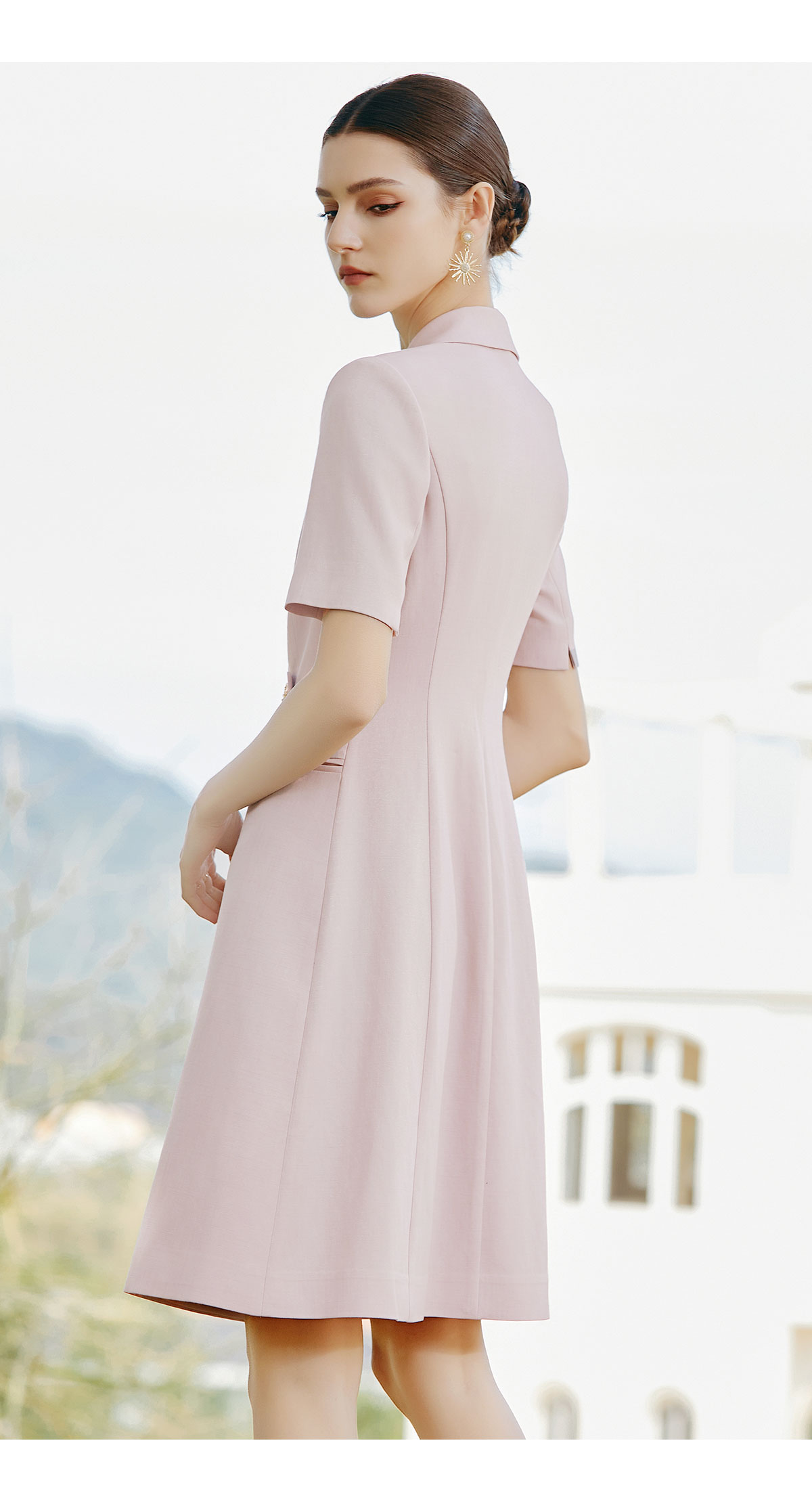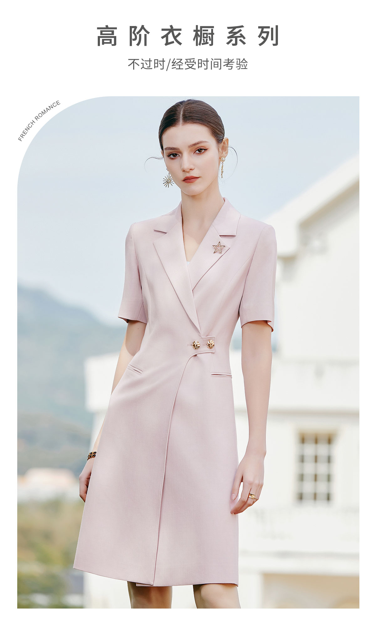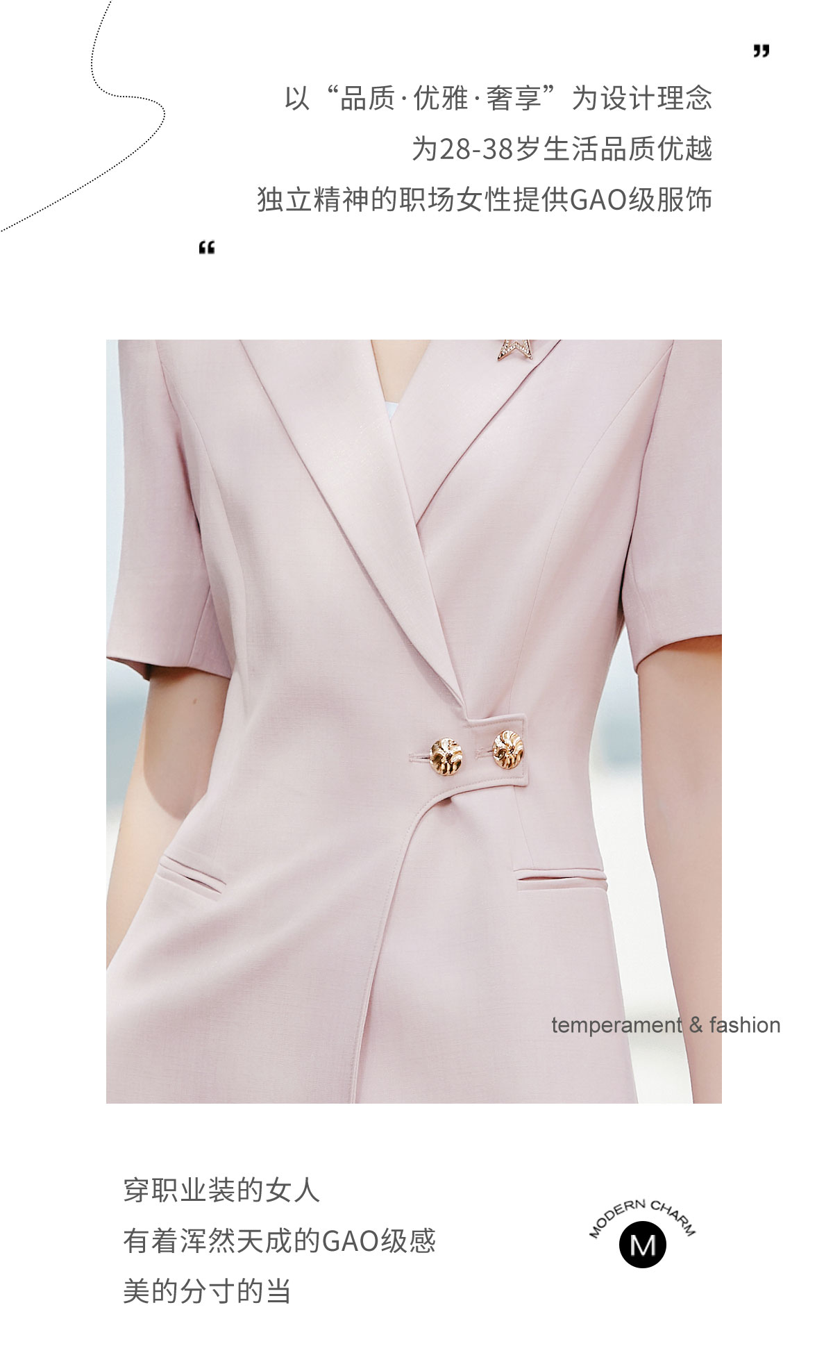 AD夏日清新粉色连衣裙女高端显白收腰西装裙播音艺考主持人上镜装