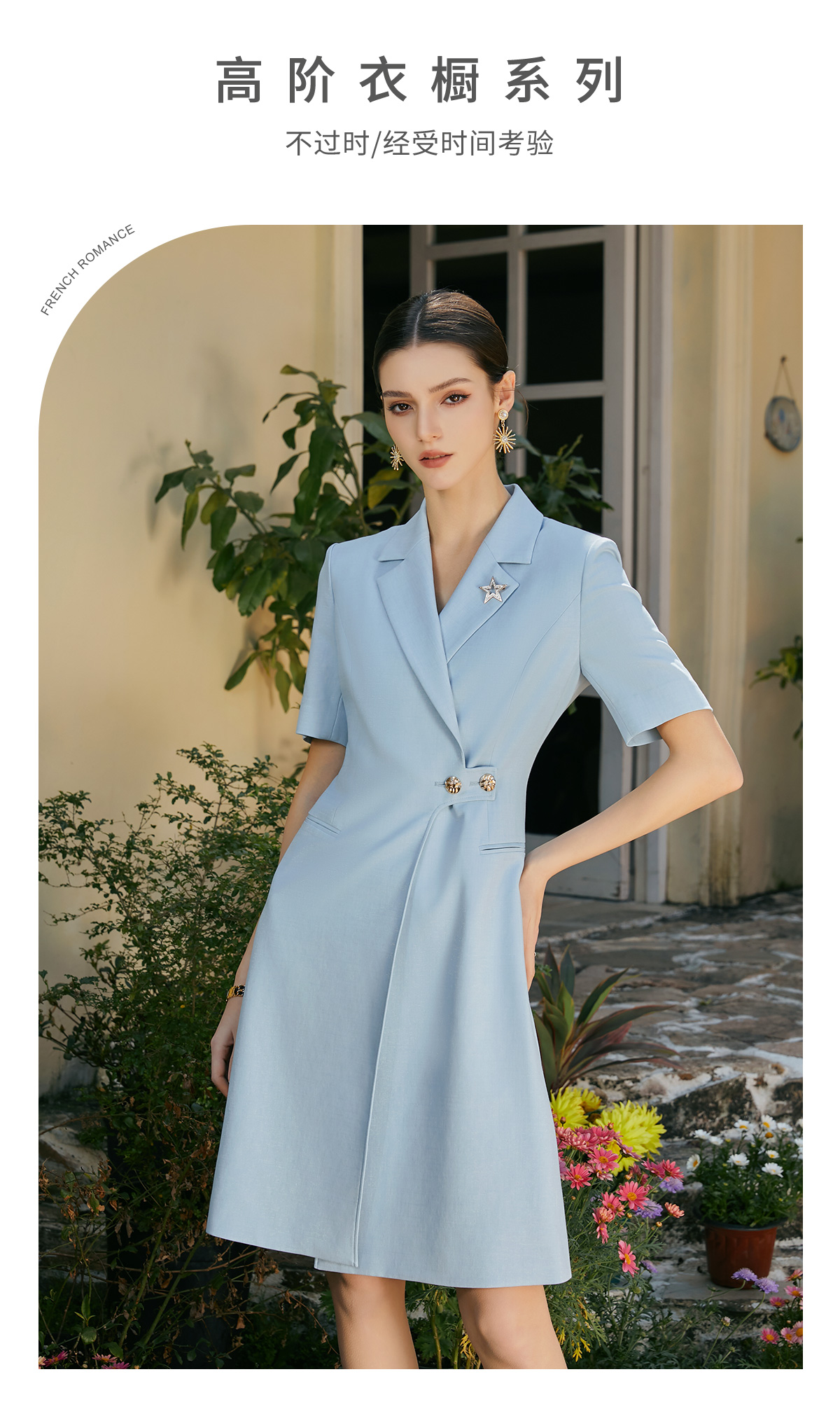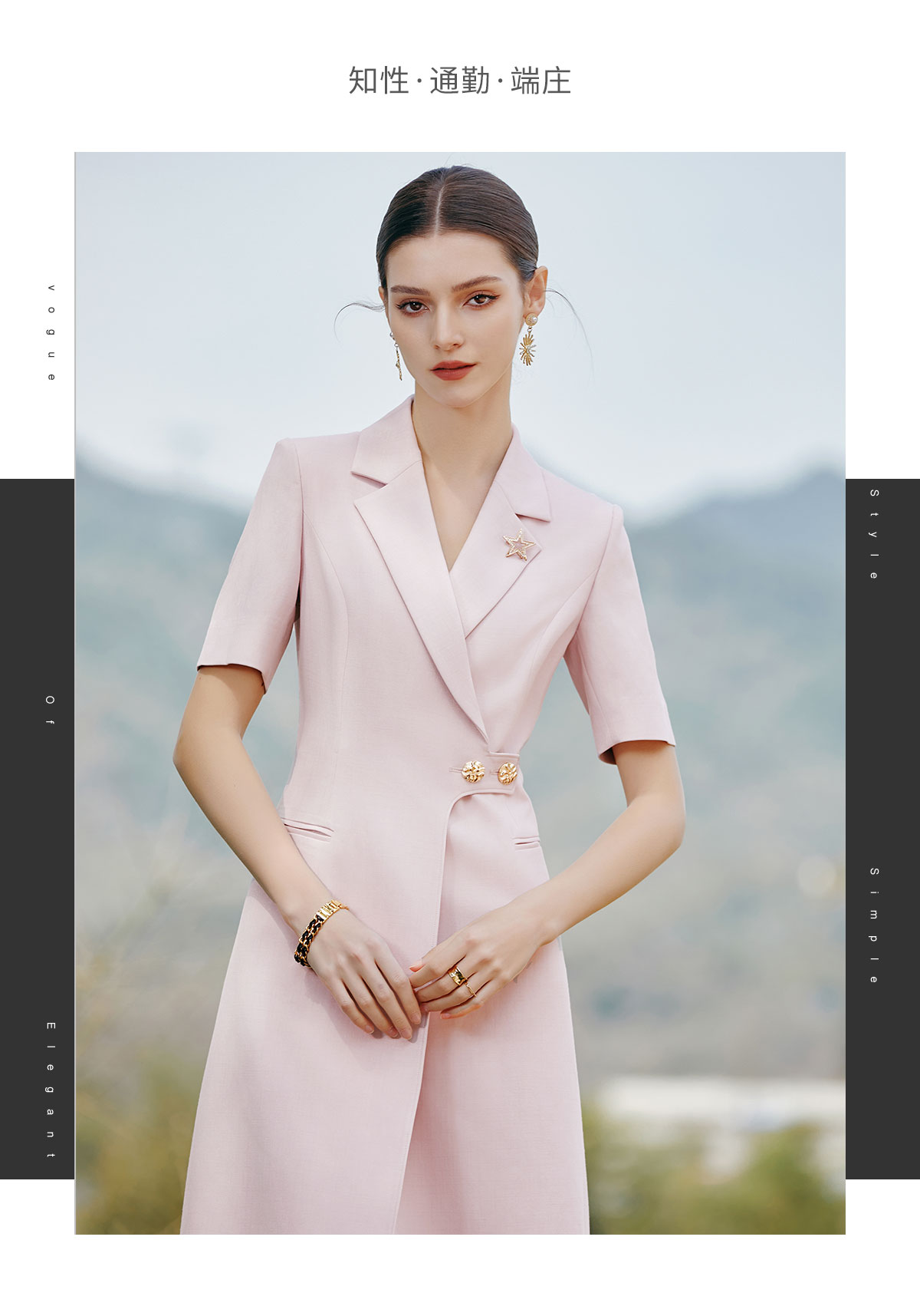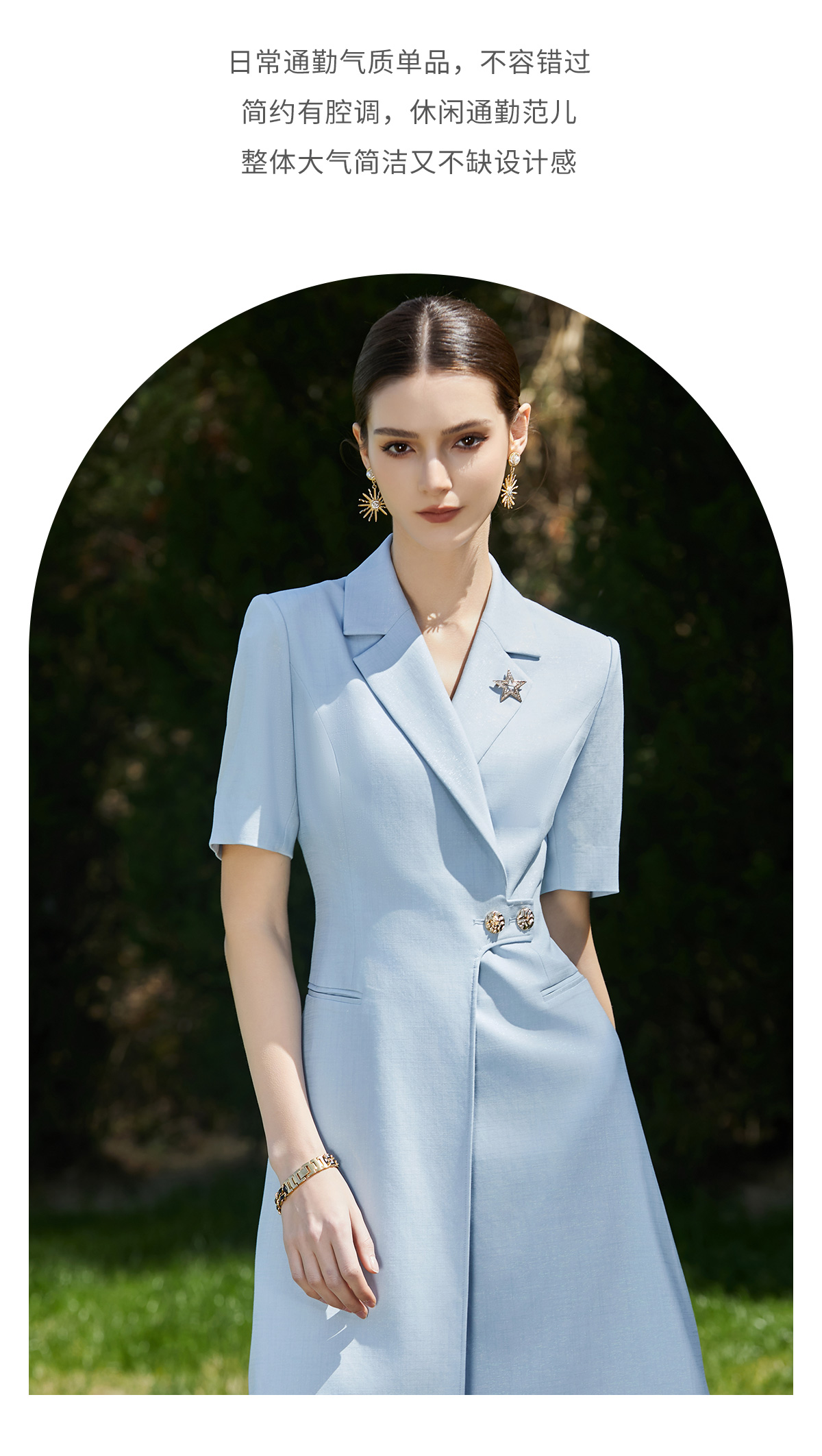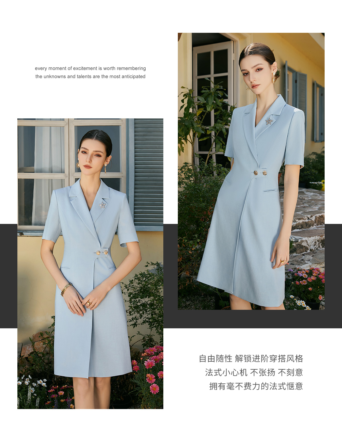 AD夏日清新粉色连衣裙女高端显白收腰西装裙播音艺考主持人上镜装
