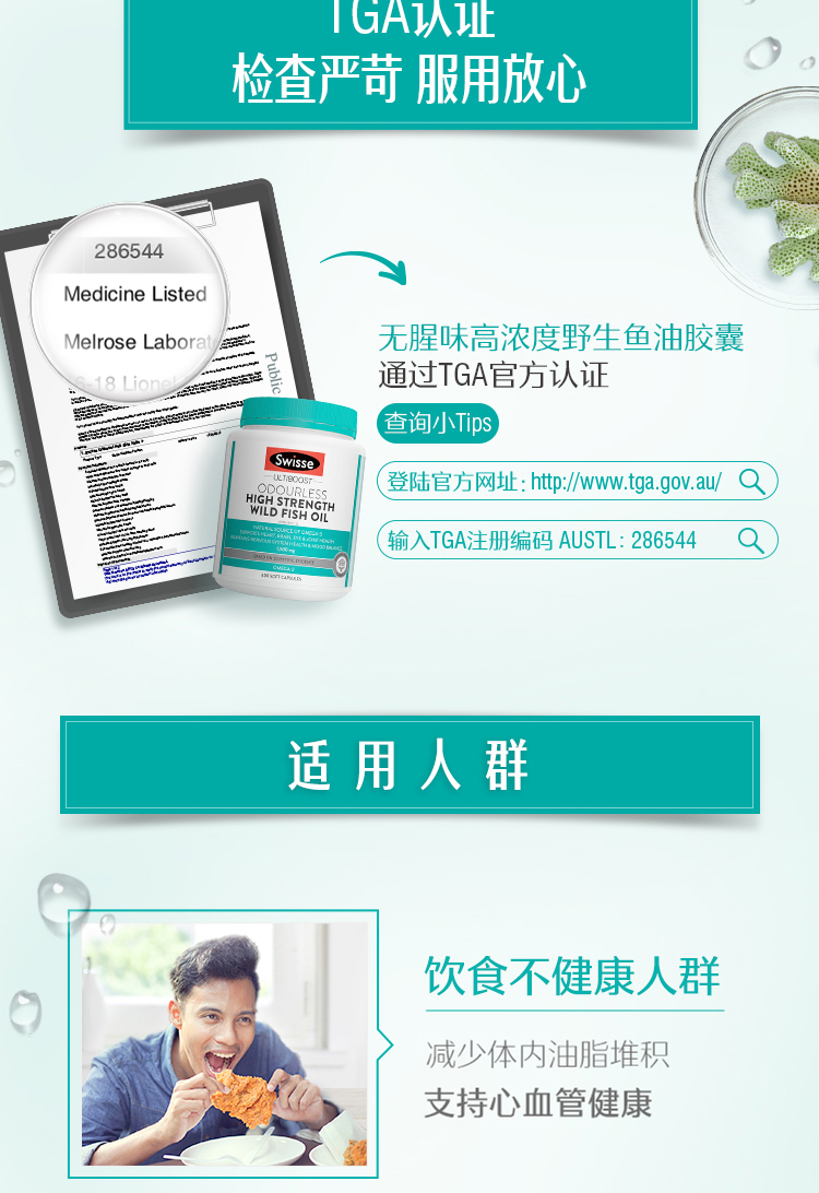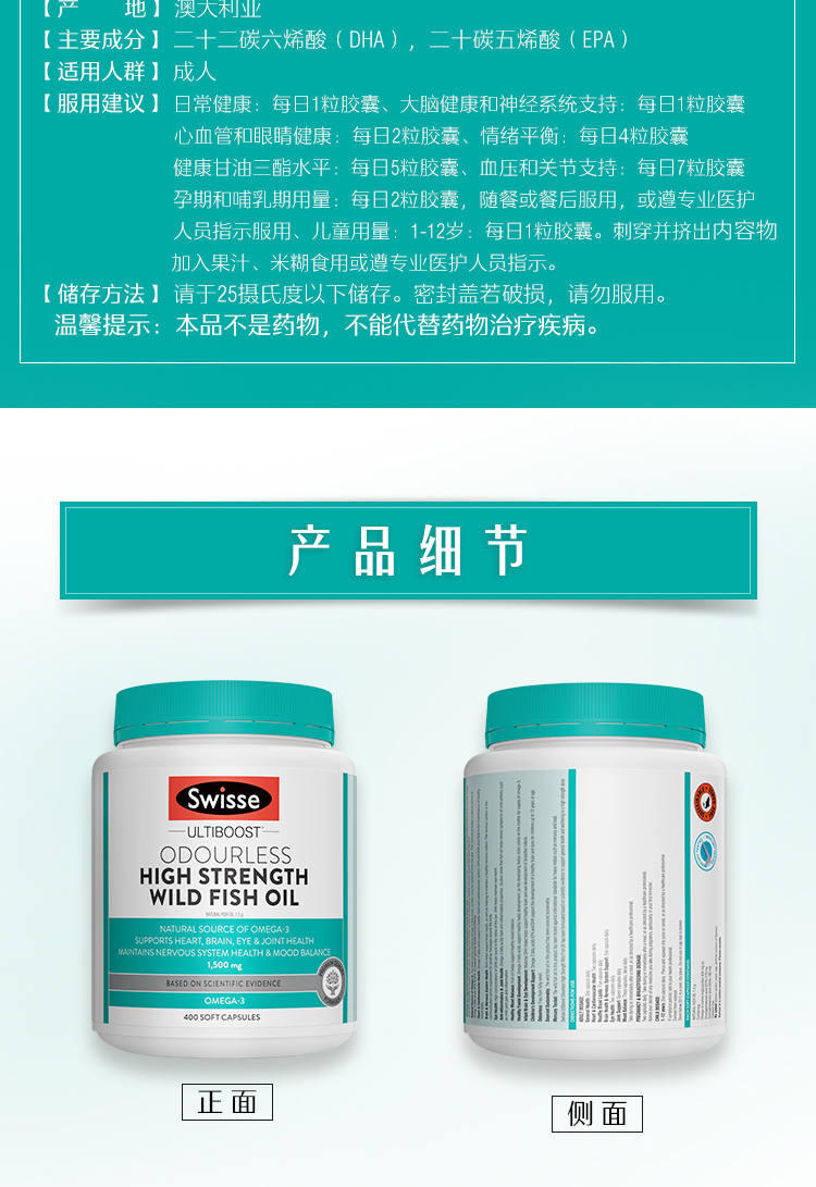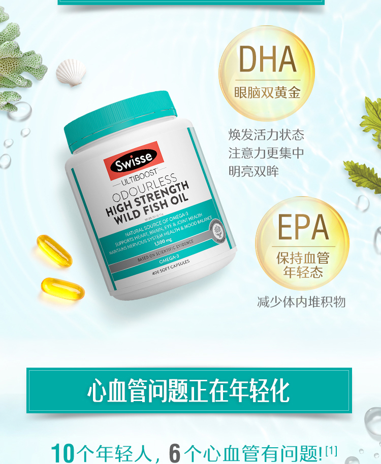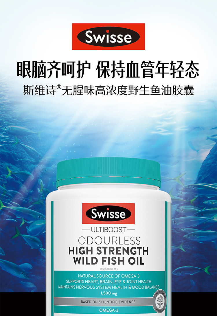 【海外直邮】Swisse斯维诗无腥味深海鱼油1500mg
