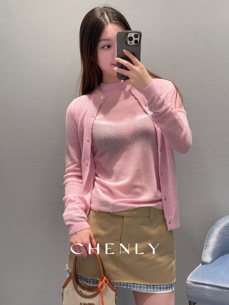 不退不换!尘衣|25春夏镂空羊毛针织套装