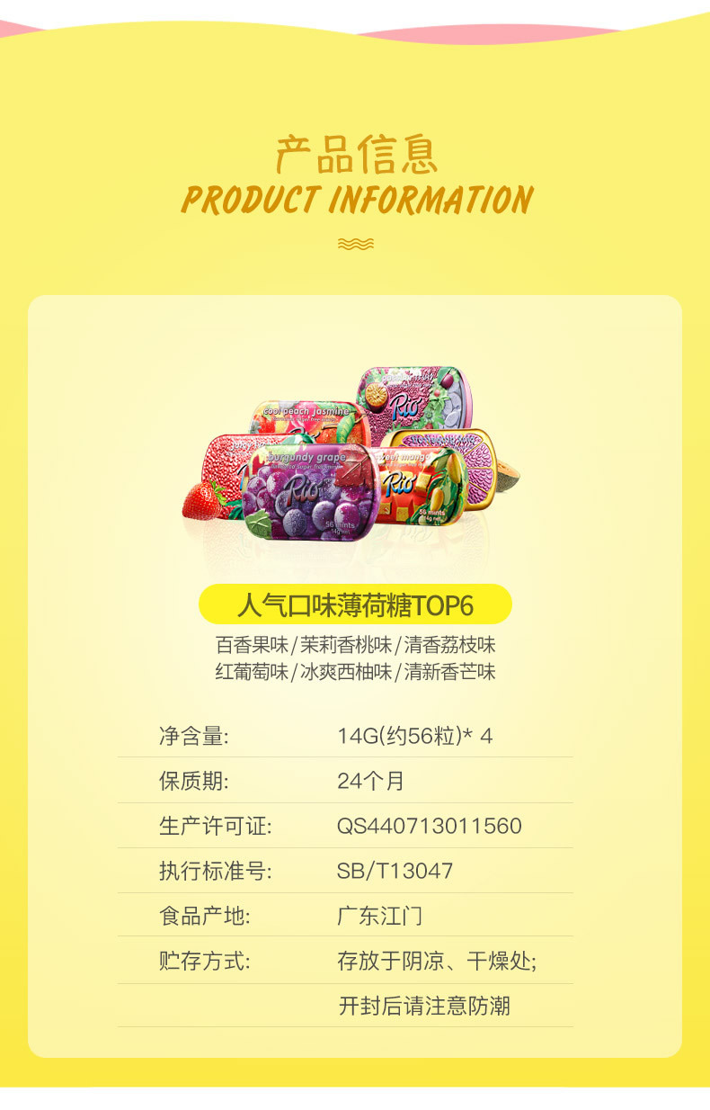 Rio 红葡萄味薄荷糖14g/盒