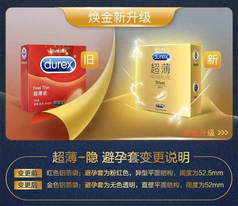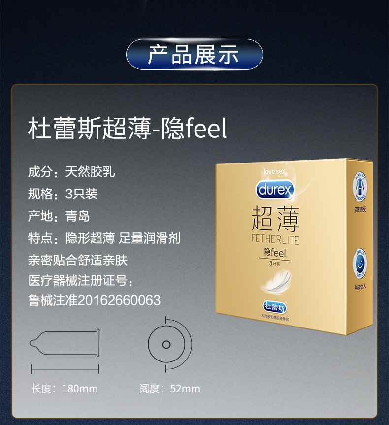 【薄似裸入】杜蕾斯 隐feel超薄避孕套安全套 3支/装男女夜生活夜事房事性事成人用品