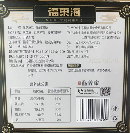 【福东海】 国风黑芝麻丸72克*8丸/盒(香酥口味)