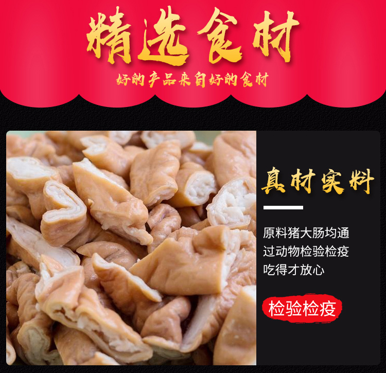 配料:猪大肠、植物油、水、食用油、鸡精,花椒等