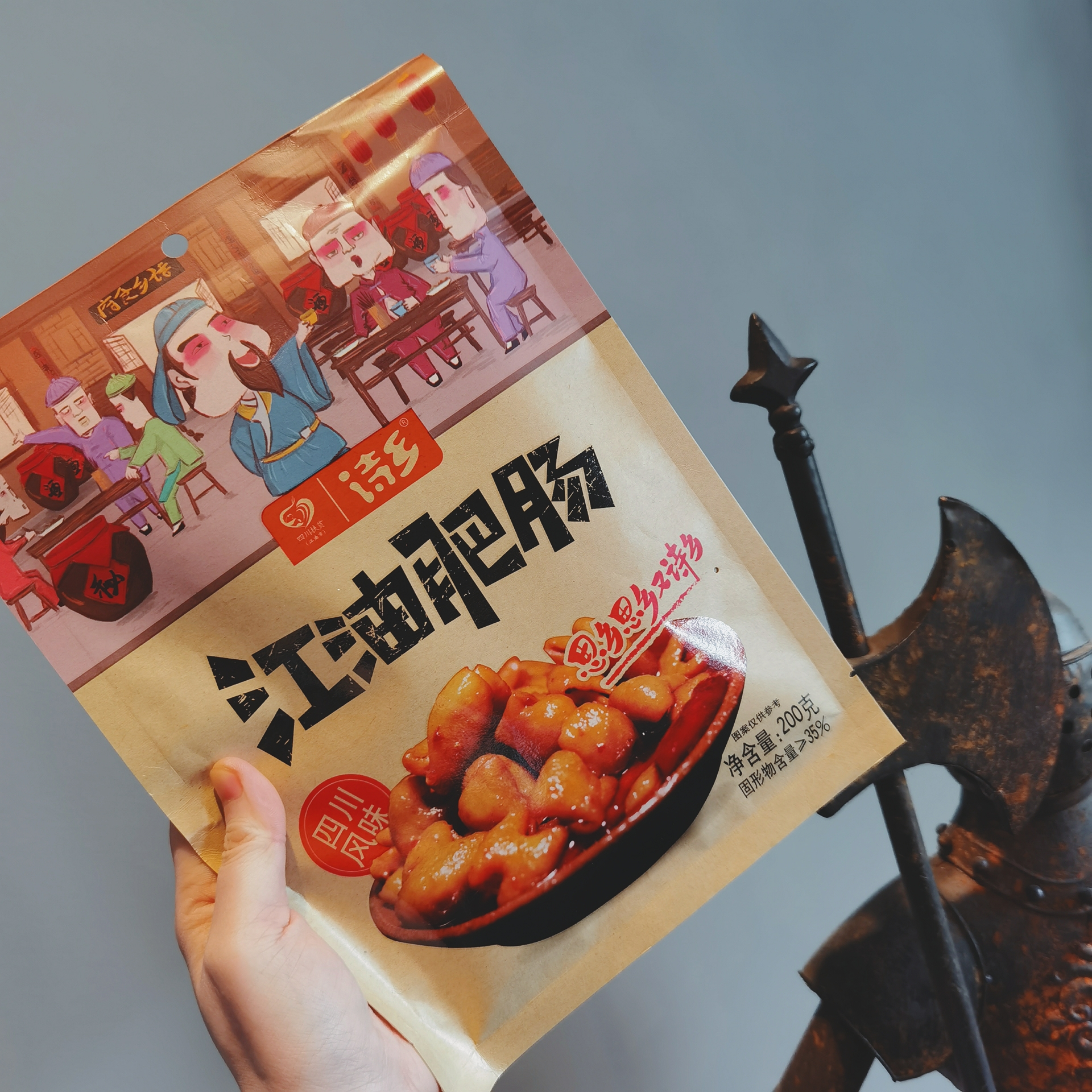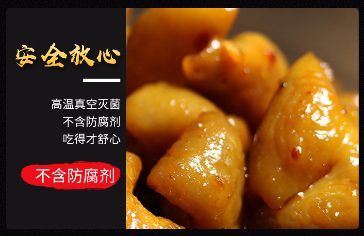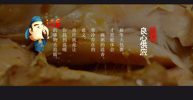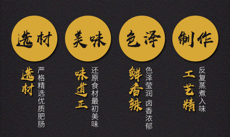 肥肠来自诗仙李白的故乡四川江油市,去过江油的人都知道,“红烧肥肠”是当地一道特色美食。肥肠在江油已经有上千年的历史了,早在四五千年以前的新石器时代,这里的少数民族氐族人,会在每年年底宰杀生猪后,将其内脏等沾上食盐保存起来,逢年过节招待亲友食用,这也就是江油肥肠的前身了。这款是全部采用新鲜肥肠制作,人工去肥油,然后放入搭配了六十余种香料的卤水中卤制,其中的辣椒用的是四川双流的二荆条,花椒用的是四川汉源的,也正是这两种四川当地椒才能烧出来地道的江油肥肠。出锅后通过高温灭菌,真空塑封,就诞生了只要加热一下,就能品尝到地道的江油肥肠。