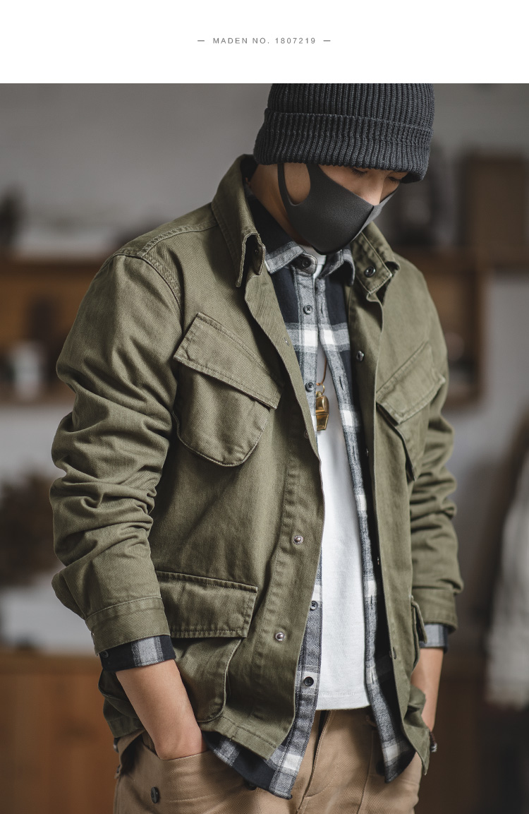马登工装 美式复古军事风M42伞兵夹克阿美咔叽大口袋军绿色夹克男