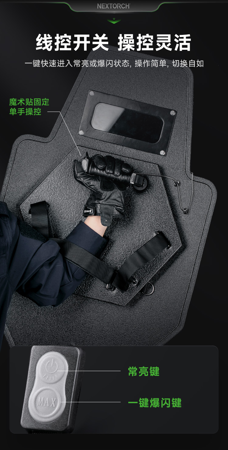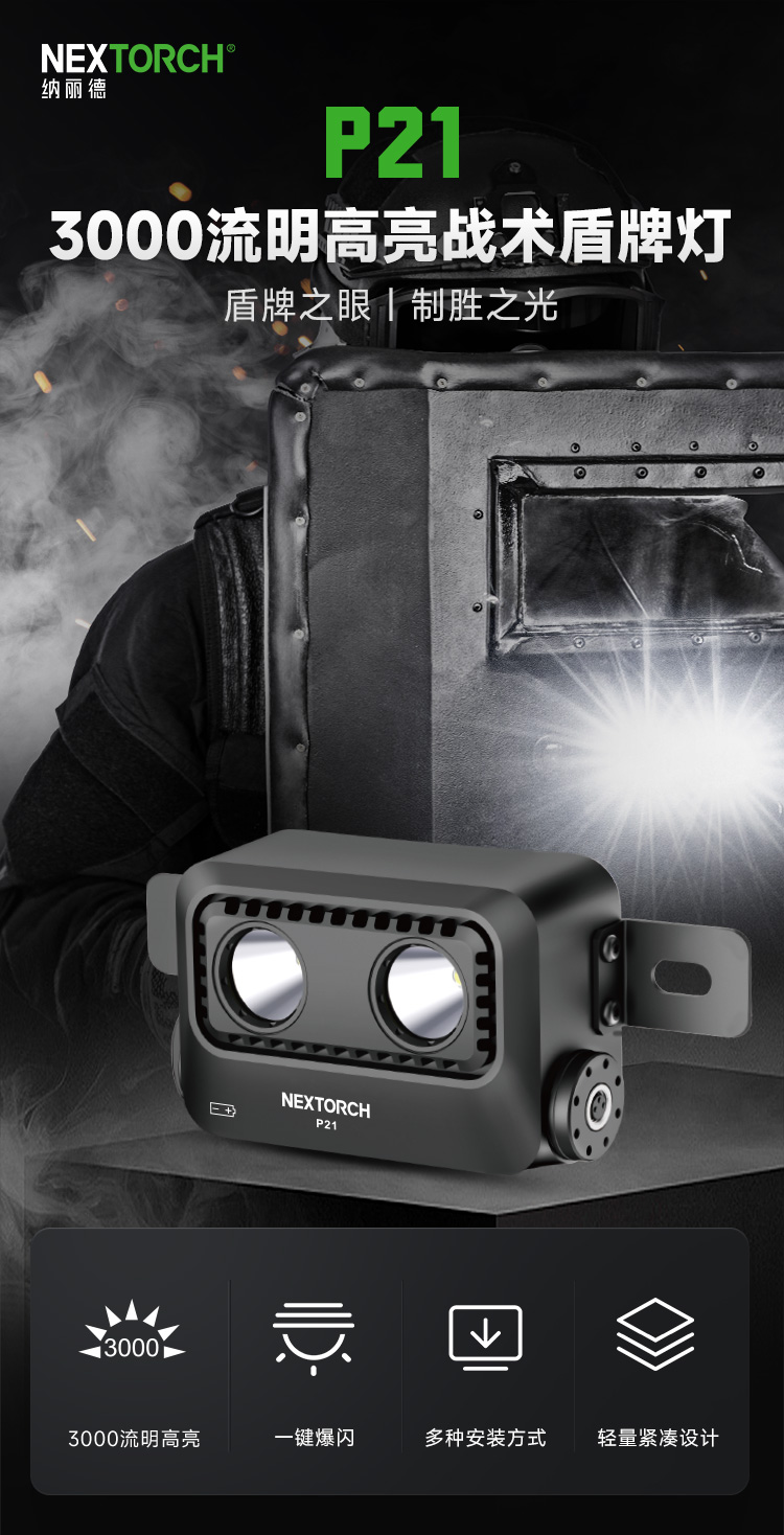 纳丽德 P21盾牌灯3000流明远射高亮防护灯一键爆闪