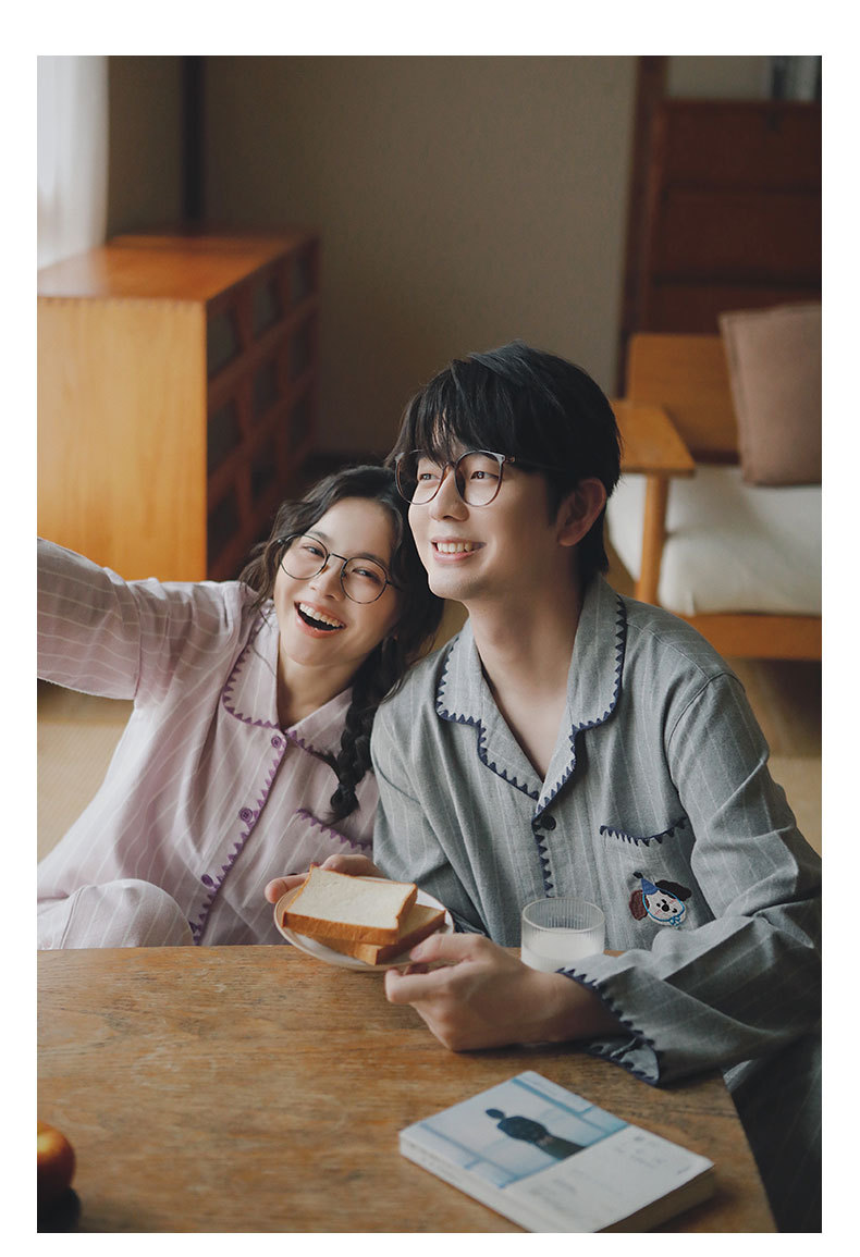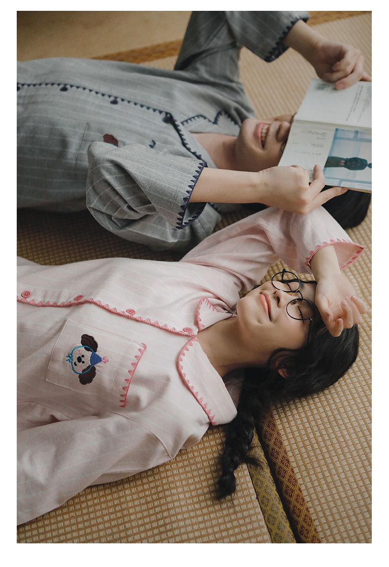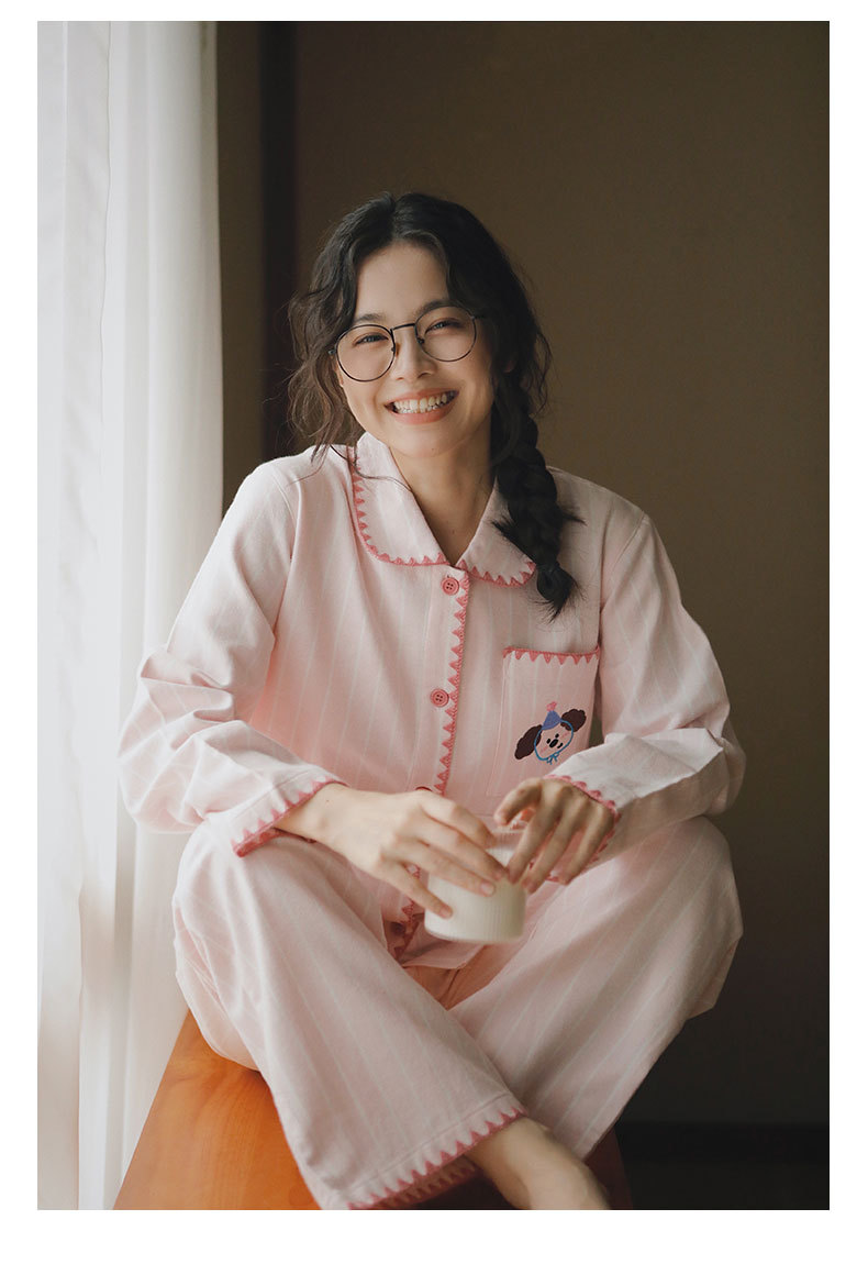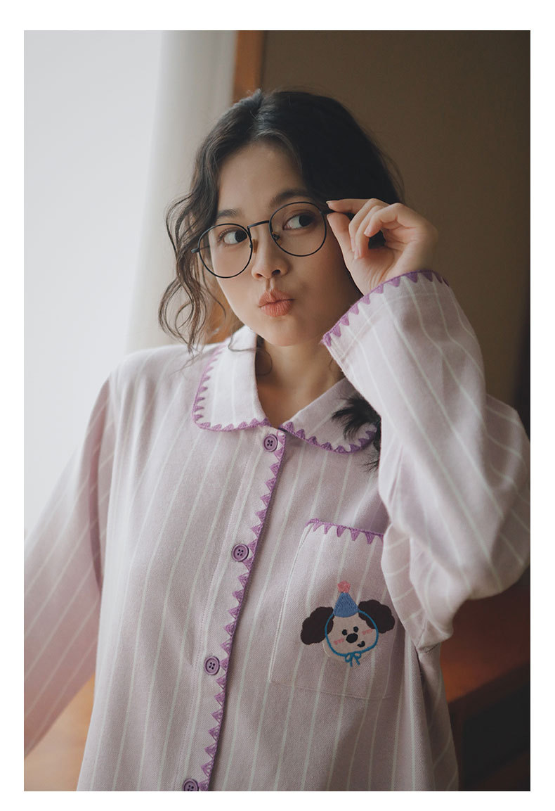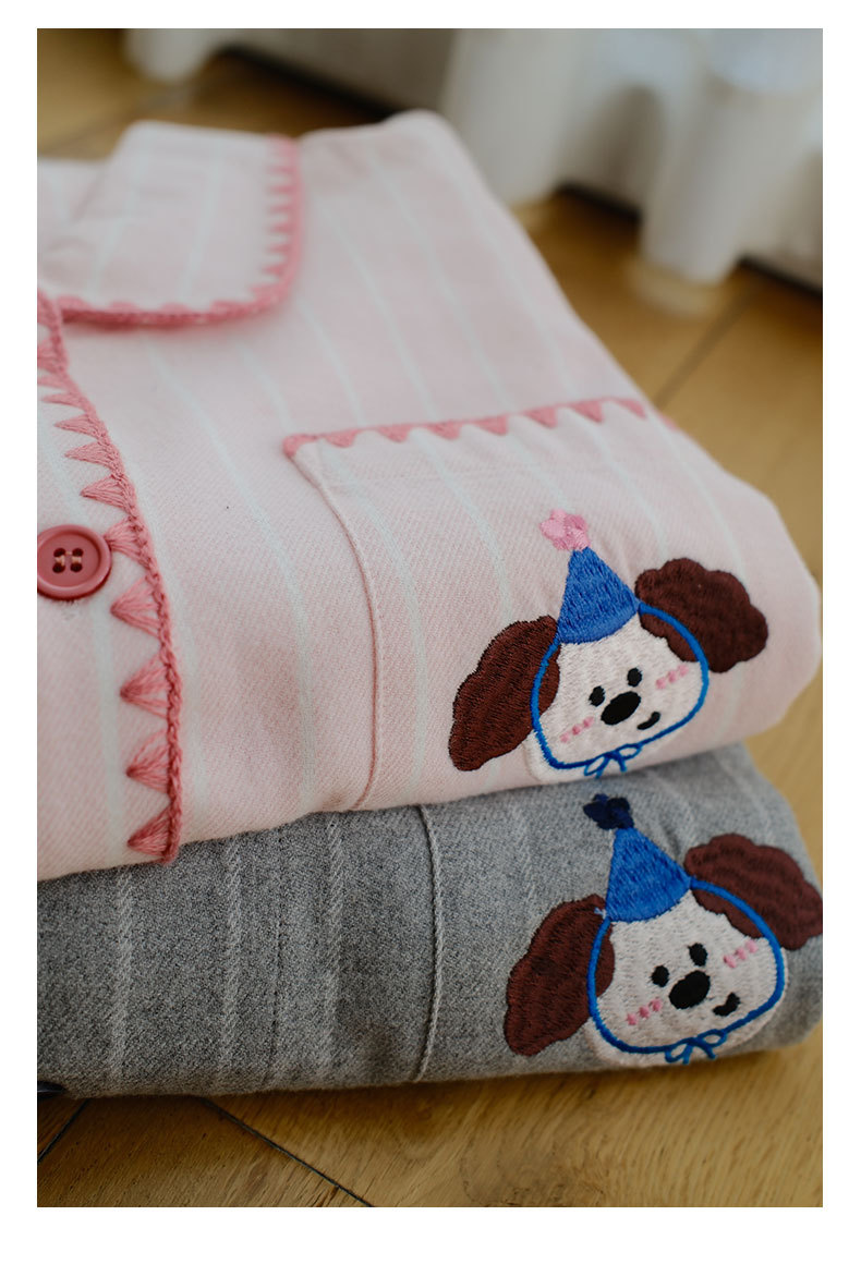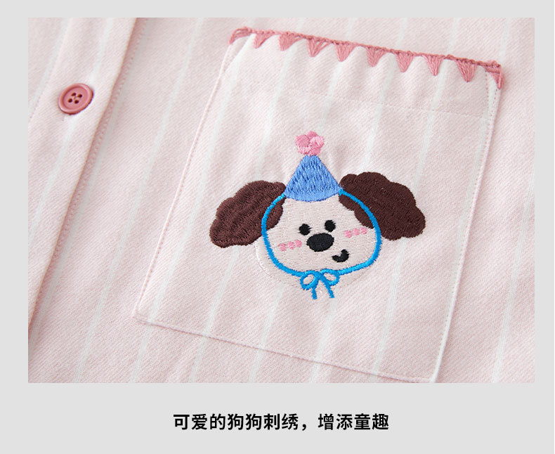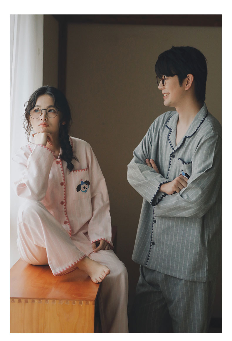 【全棉磨毛】预售~快乐小狗情侣睡衣女春秋季2025新款纯棉卡通刺绣长袖卡通家居服全棉男女