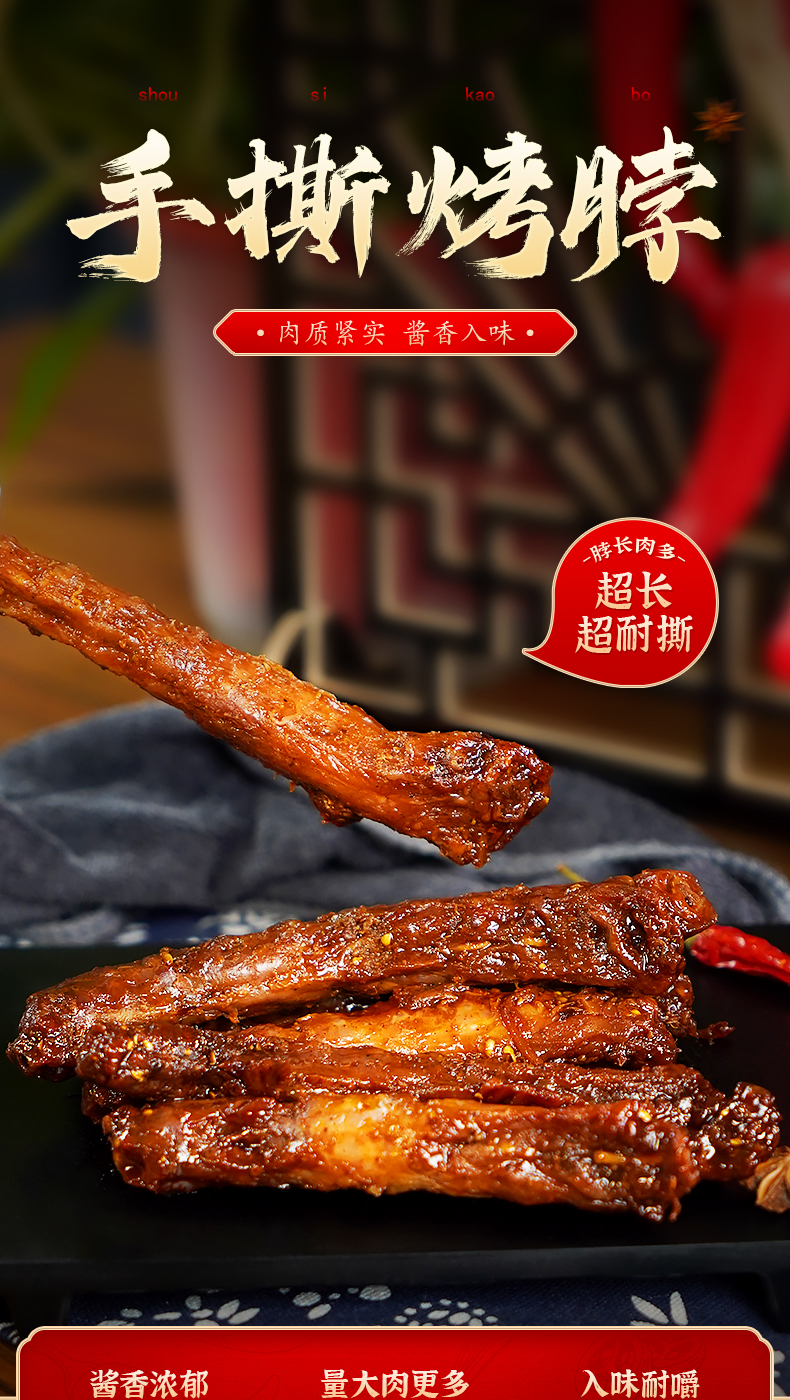 思尧手撕烤脖黑鸭味整根开袋即食休闲食品小吃长脖卤味