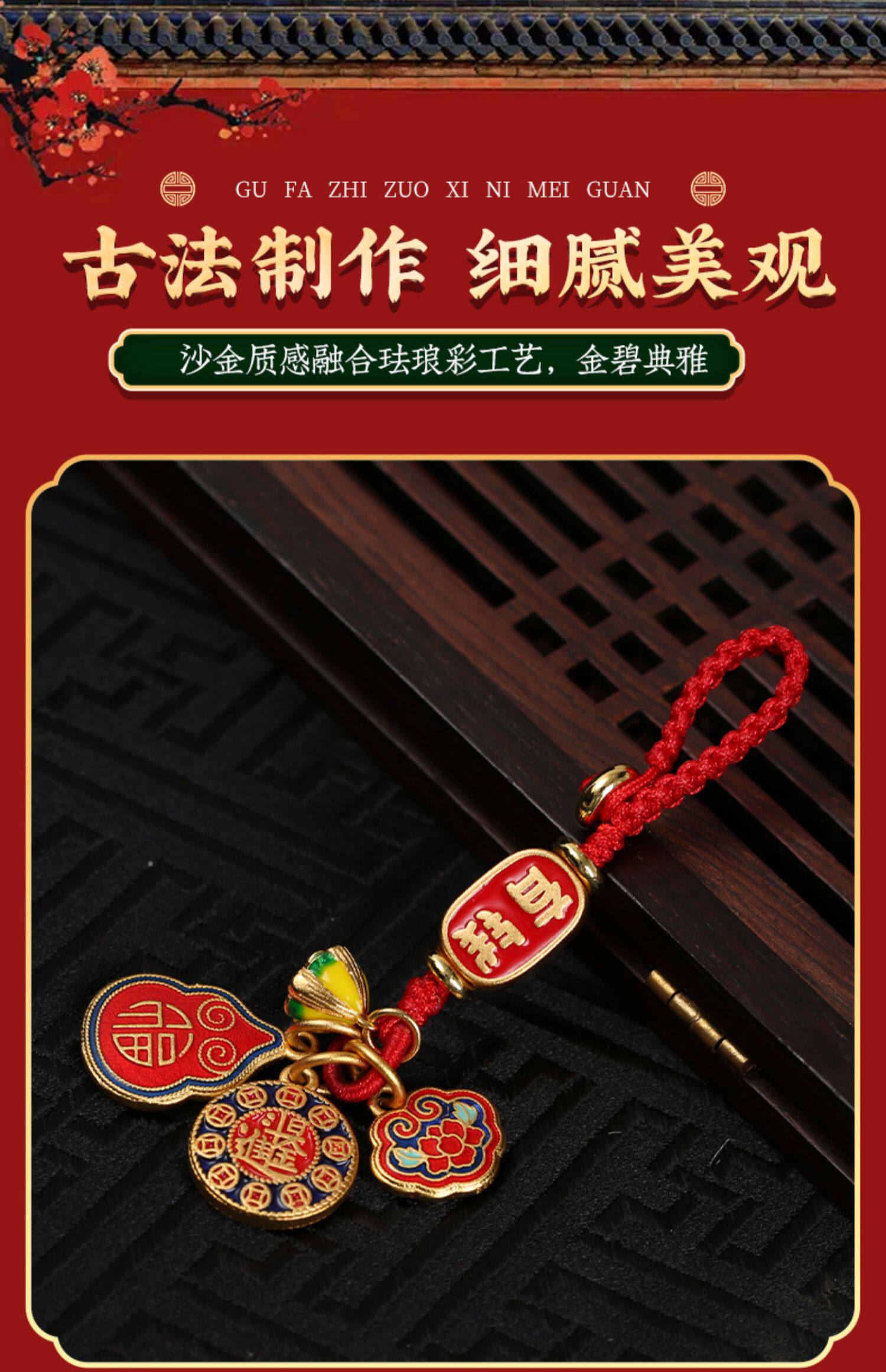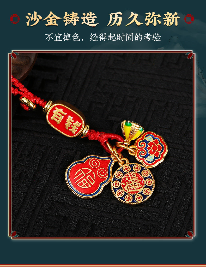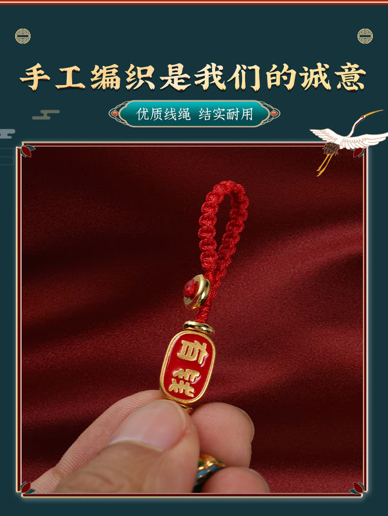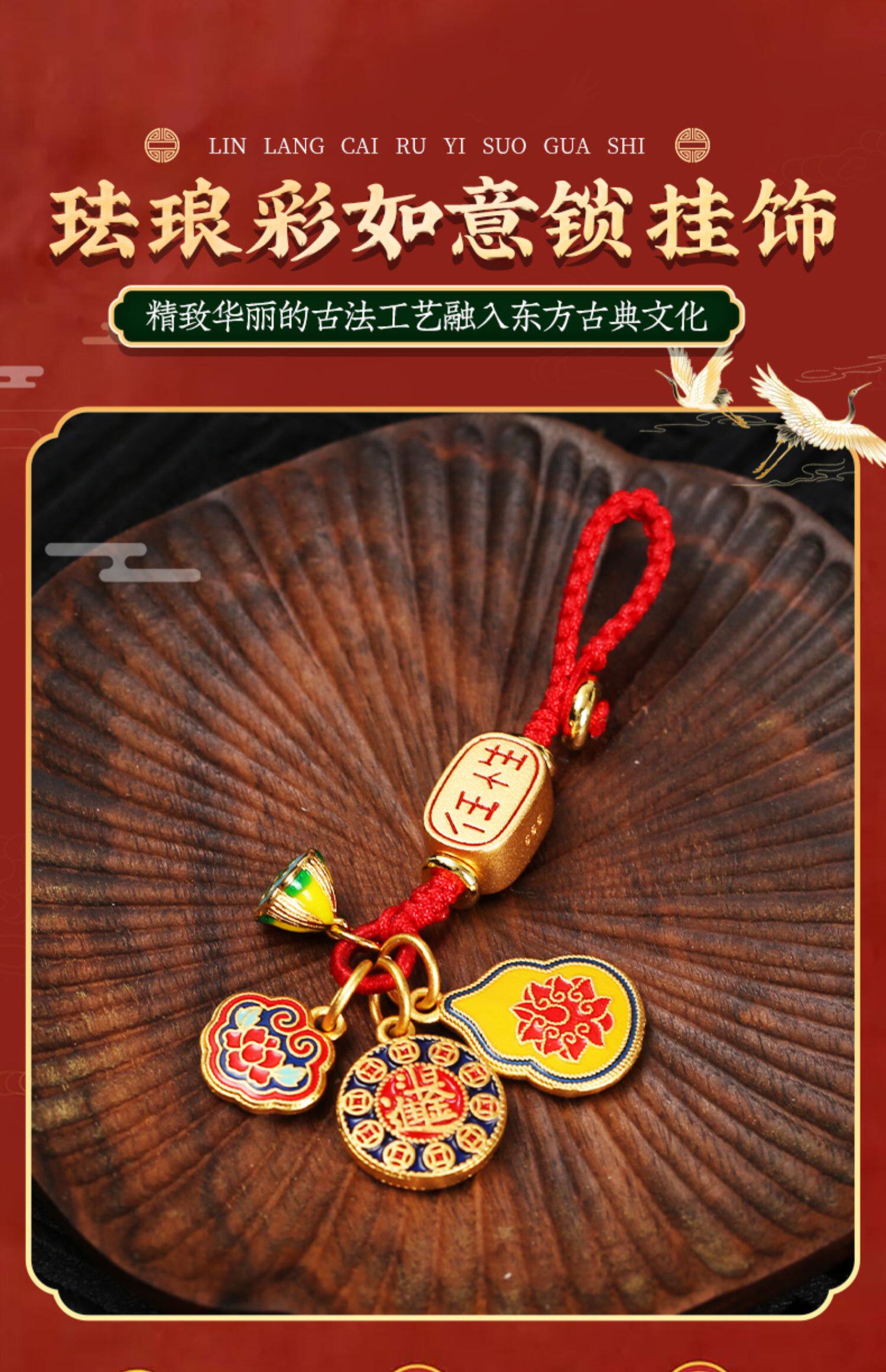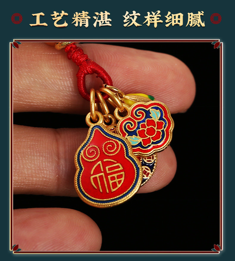 【祈愿吉品】珐琅彩沙金如意锁挂饰精致钥匙扣手工编织绳车