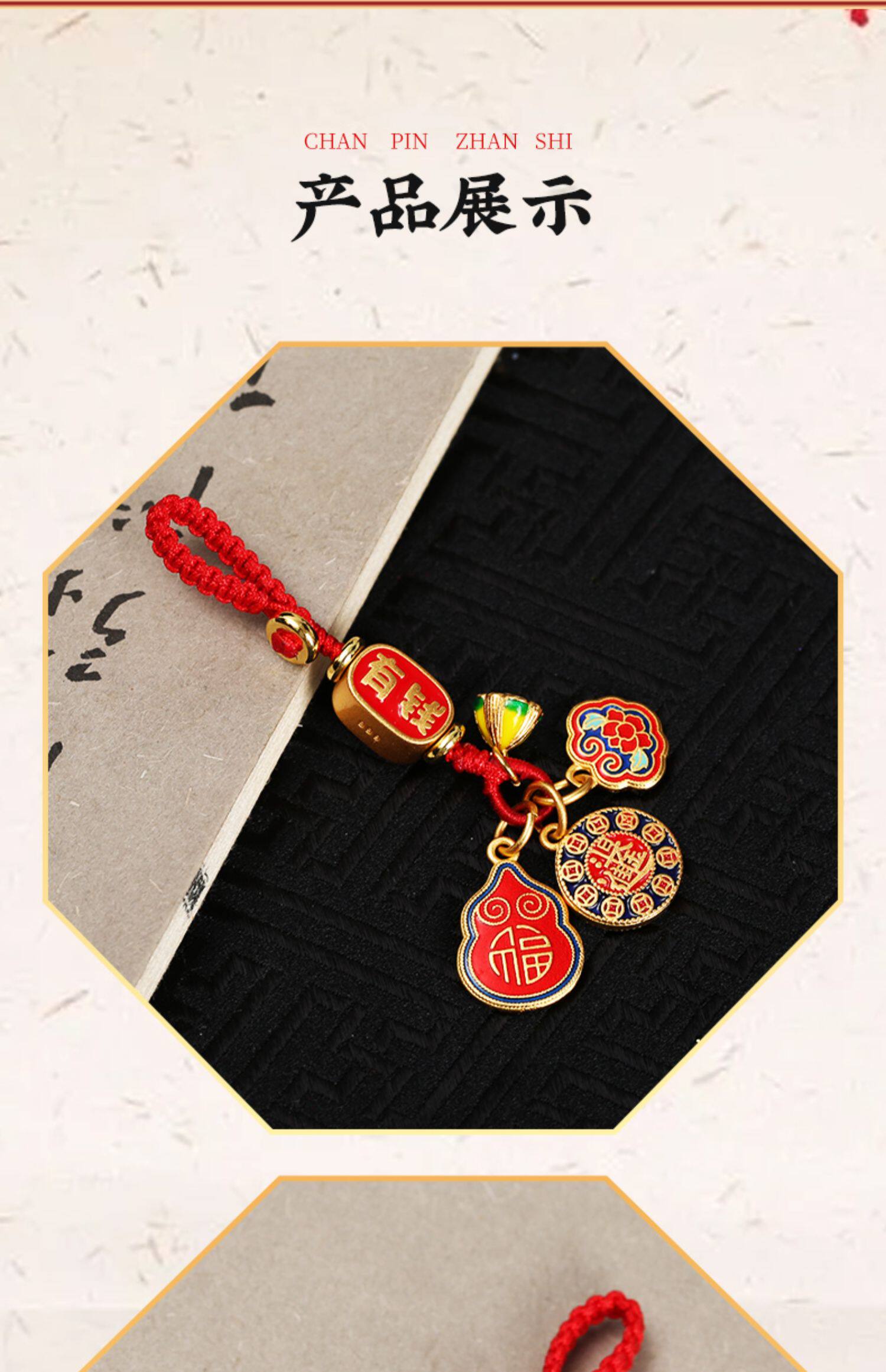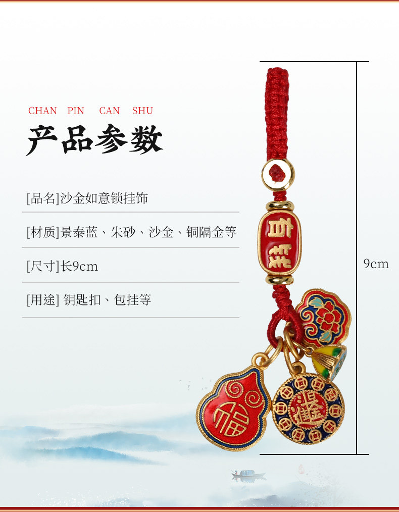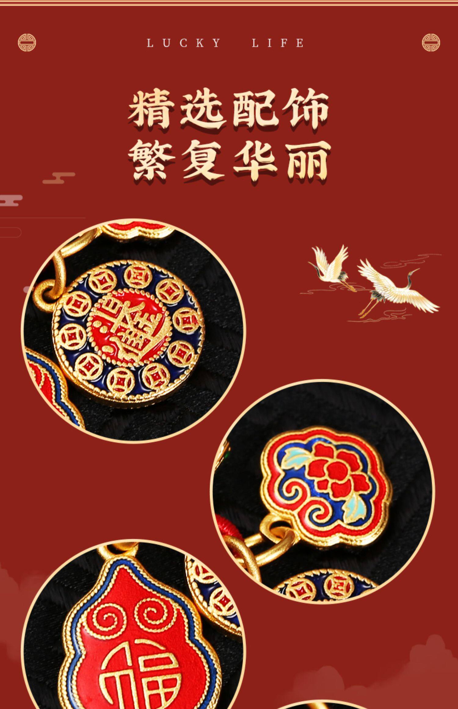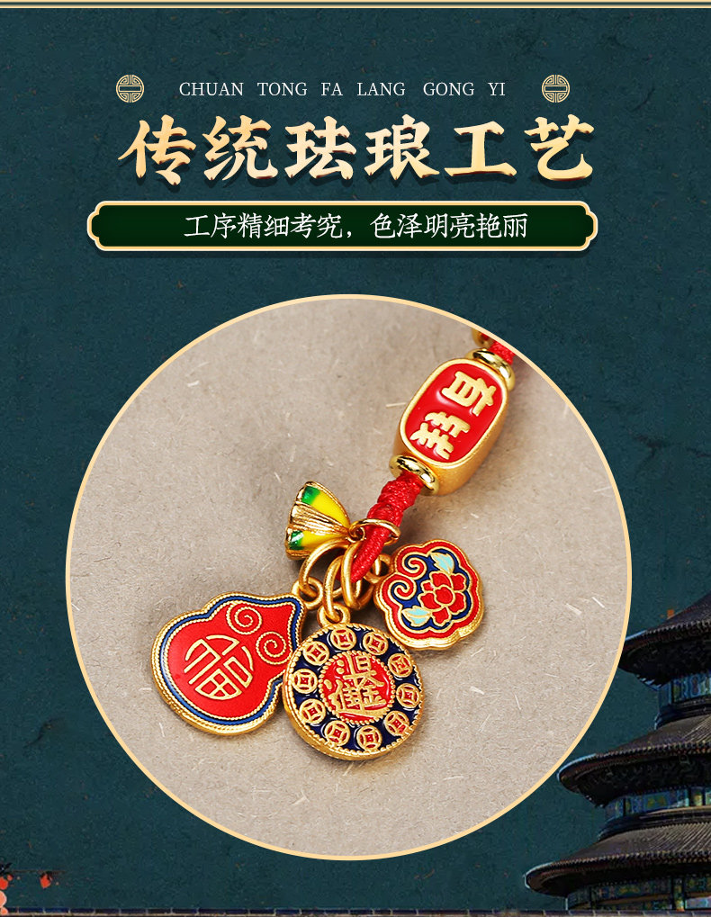 【祈愿吉品】珐琅彩沙金如意锁挂饰精致钥匙扣手工编织绳车