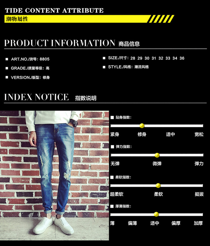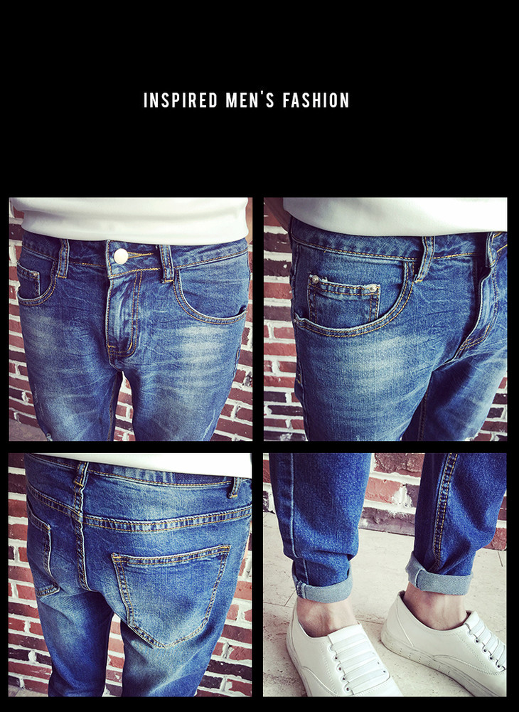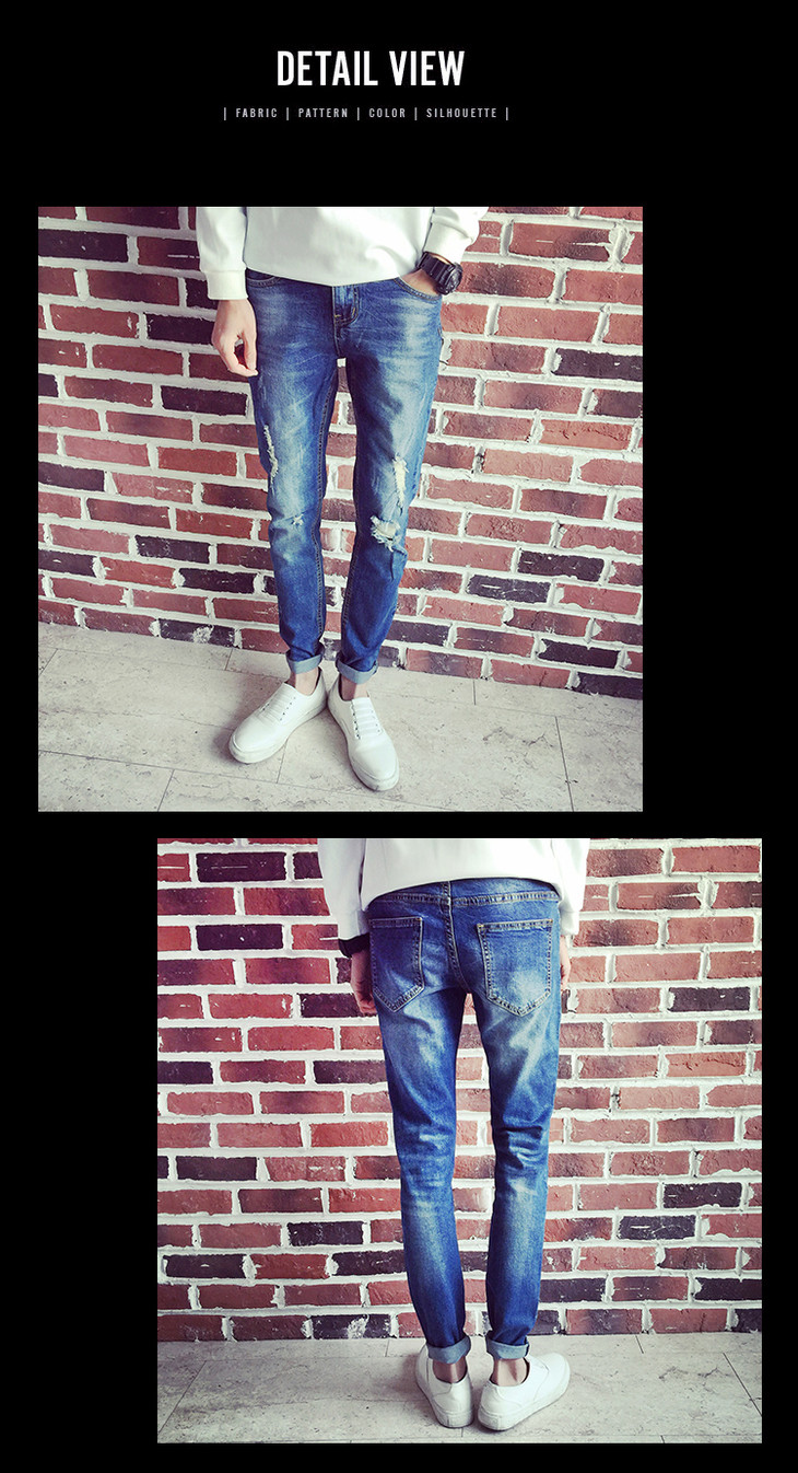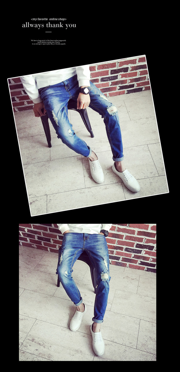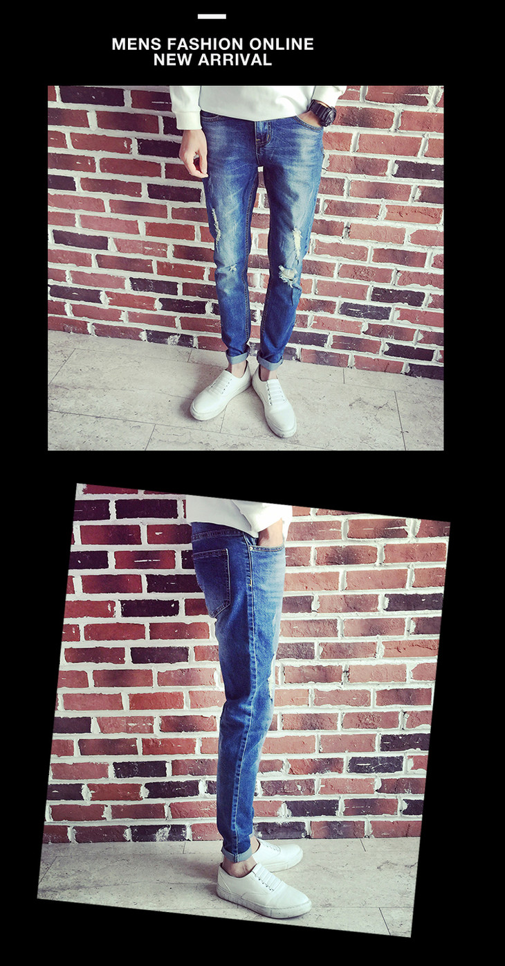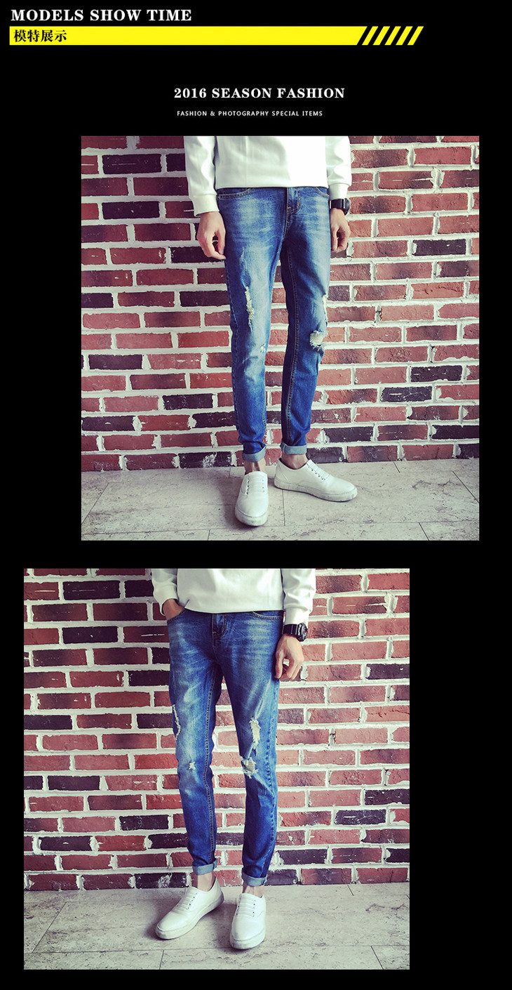 【服饰鞋包】春夏牛仔裤男长裤小脚裤 破洞牛仔裤 男士长裤 韩版修身弹力潮裤