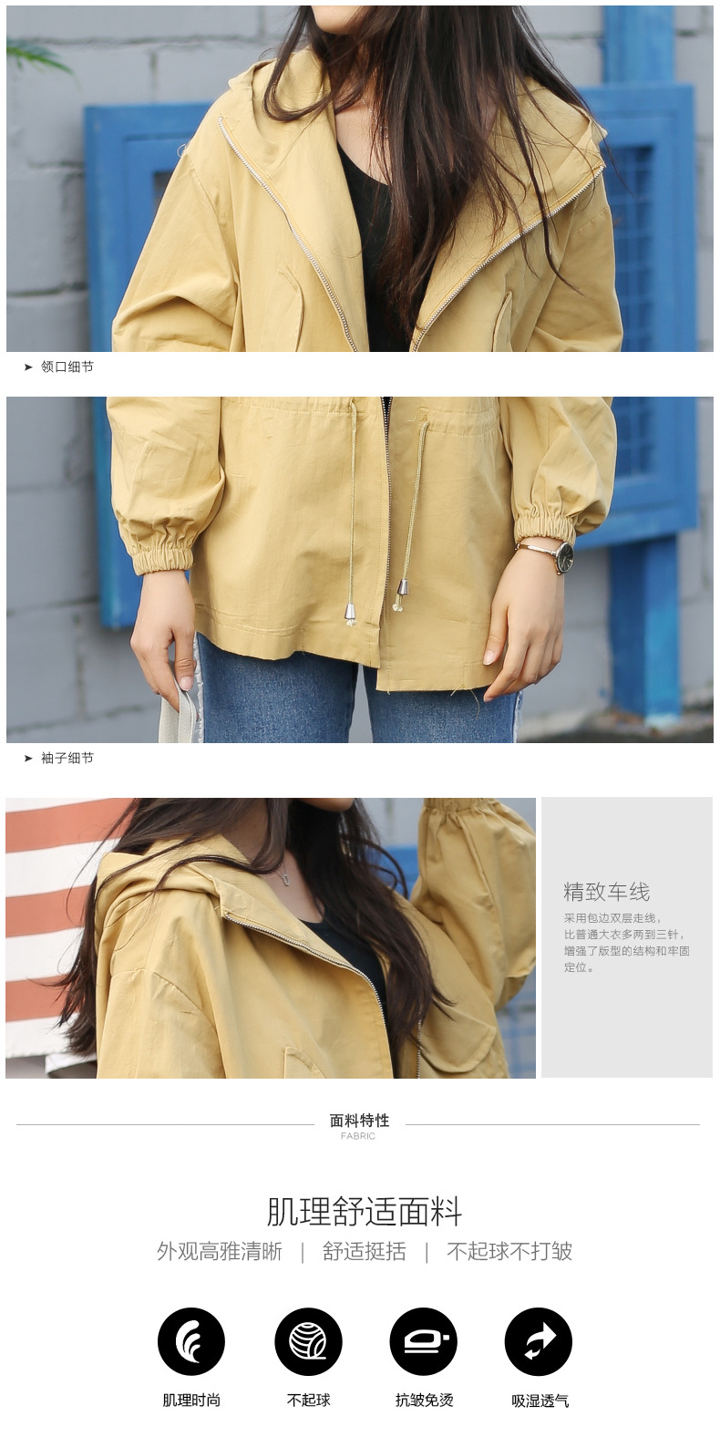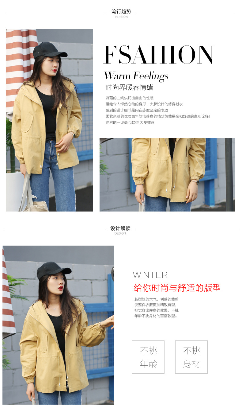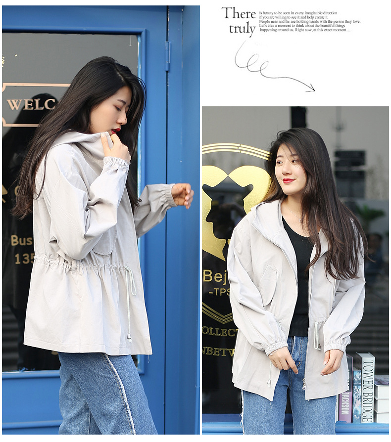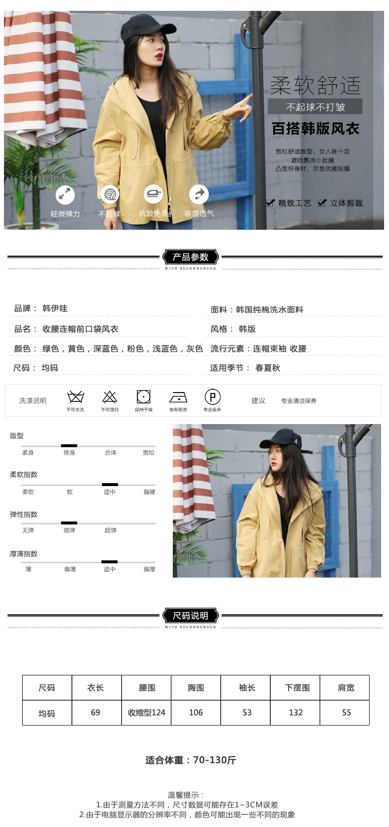 【服饰鞋包】春季新款韩版修身收腰连帽中长款外套女装纯色显瘦风衣