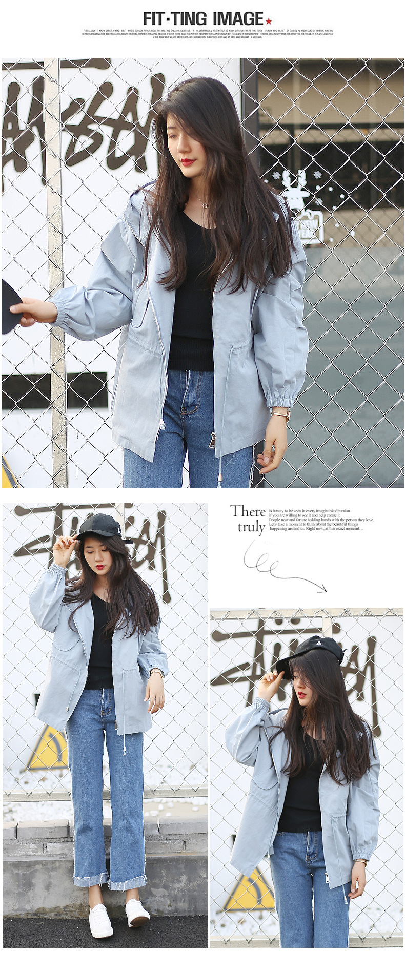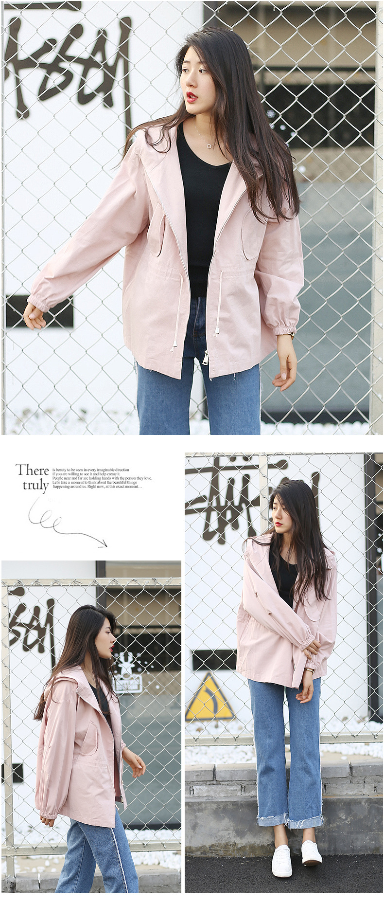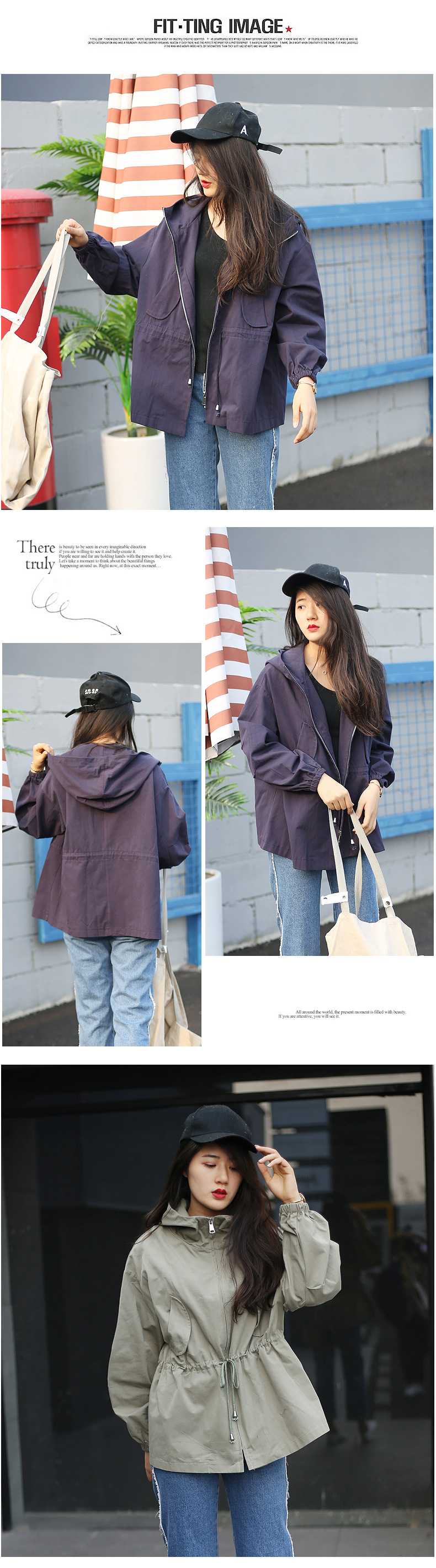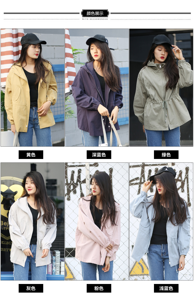 【服饰鞋包】春季新款韩版修身收腰连帽中长款外套女装纯色显瘦风衣