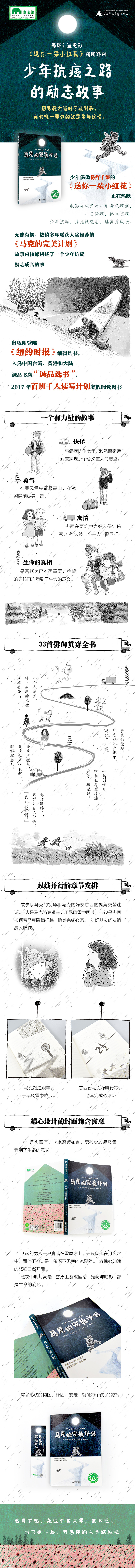 ê本书的章节编排别出心裁,故事以马克的视角和马克的好友杰西的视角交替述说。一边是马克的路途艰辛,于暴风雪中跋涉;一边是杰西如何替马克隐瞒行踪、助其完成心愿。一对好朋友的友谊感人肺腑。