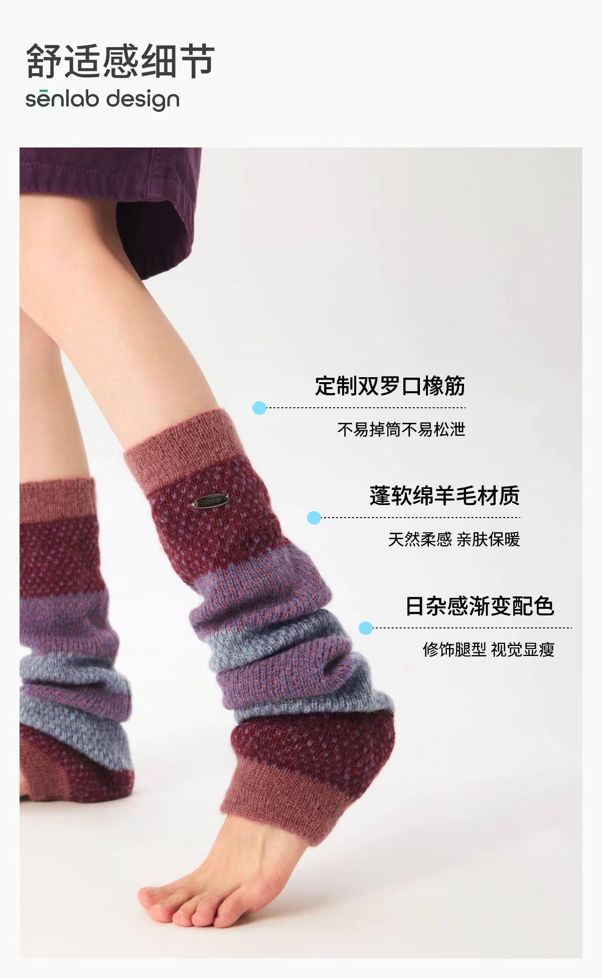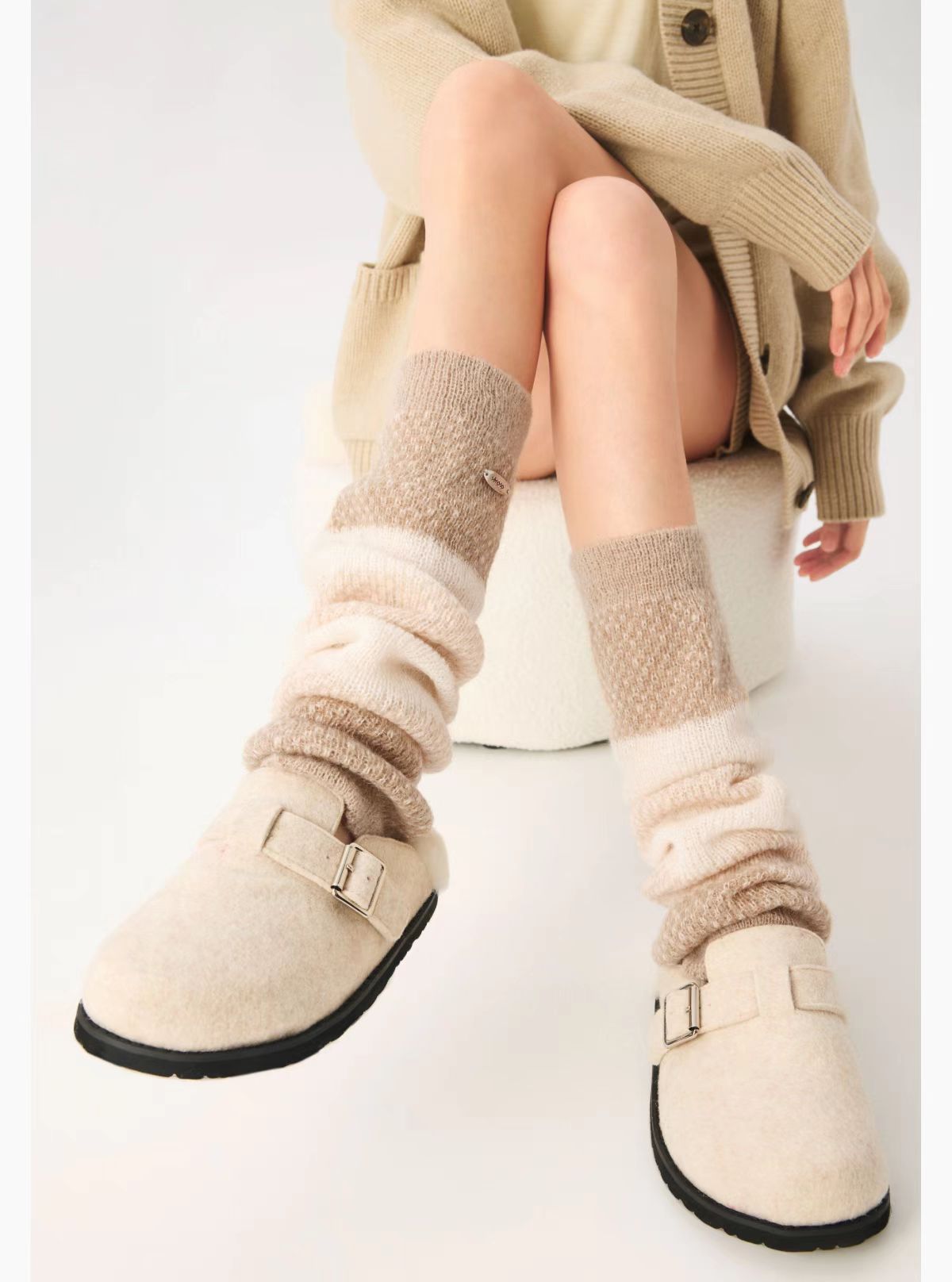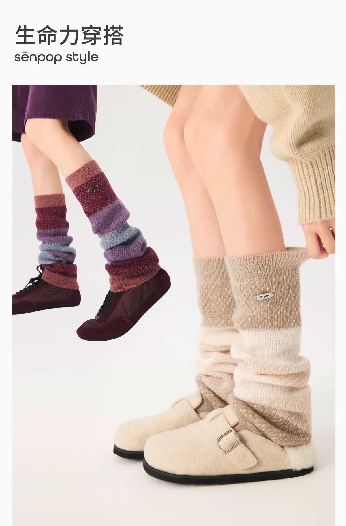 4楼Eubelle欧蓓 上森派系渐变羊毛袜套堆堆小腿袜套 秋冬款 美拉德风 活动价:139.9元